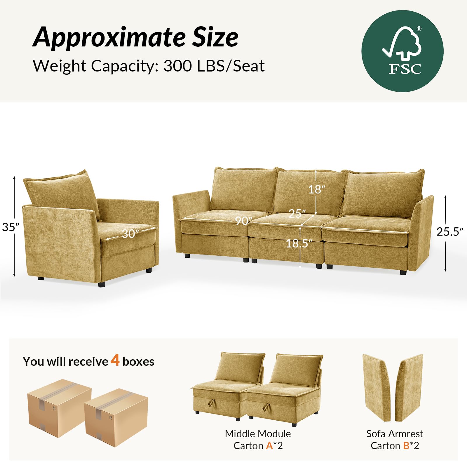 • Heavy-Duty Construction: Crafted with a solid wood frame and reinforced joints, this sofa supports up to 300 lbs per seat. Built to last, it delivers strong stability and noise-free comfort for the whole family.