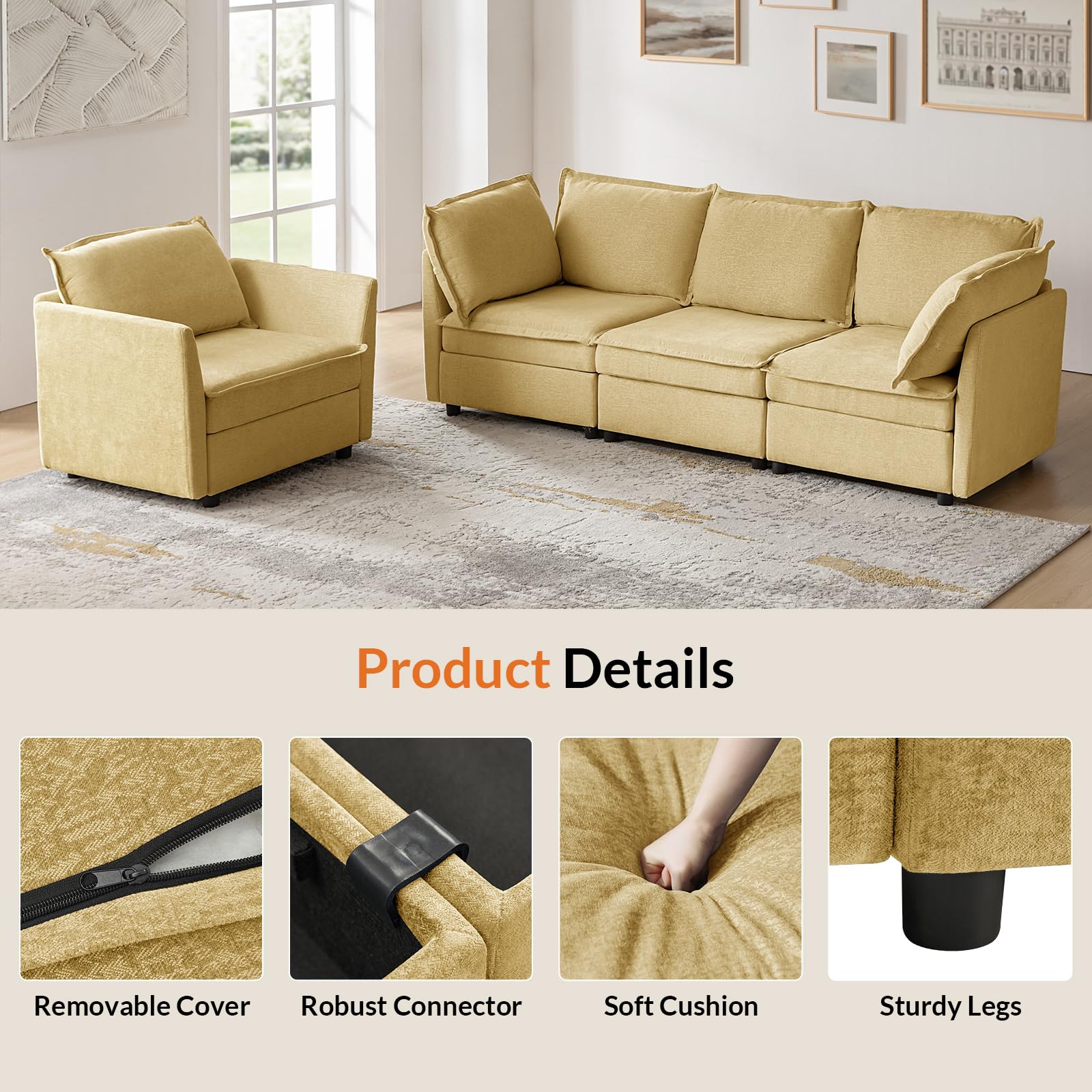 • Flexible Modular Design: This oversized sectional features wide seats and movable modules that can be arranged into L-shapes, U-shapes, or separate units. Perfect for living rooms, apartments, or guest spaces—customize layouts to fit any space and enjoy roomy, flexible comfort.