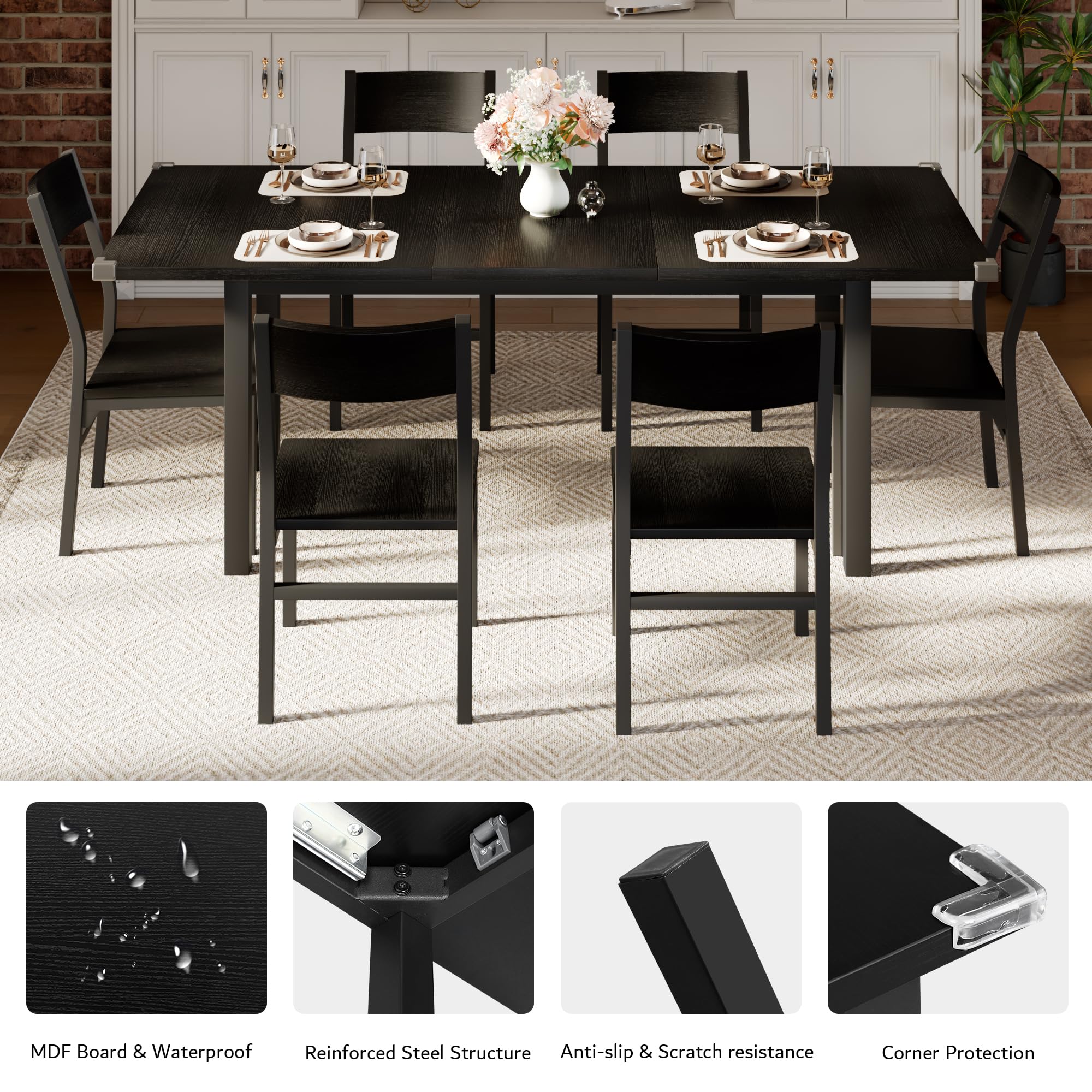 iPormis 7-Piece Dining Table Set with 6 Chairs, 63" Extendable Kitchen Table & Chairs Set for 4-6, Dining RoomTable with Solid Metal Frame & MDF Board, Perfect for Small Space, Easy Assembly, Walnut
