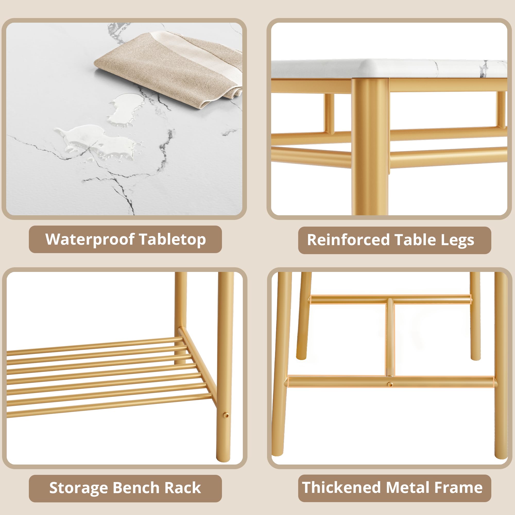 High-quality Construction: This kitchen table set is made of high quality engineered wood and metal frame, the materials are durable and easy to maintain, with excellent stability and strength to ensure long term use