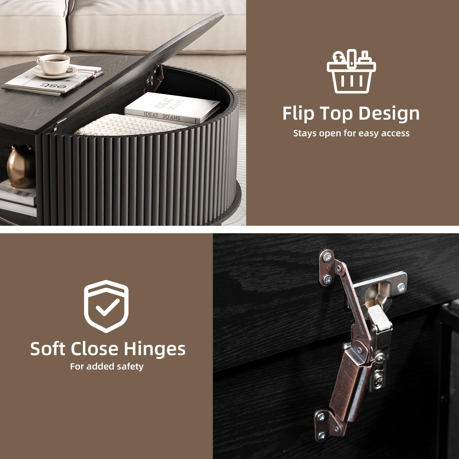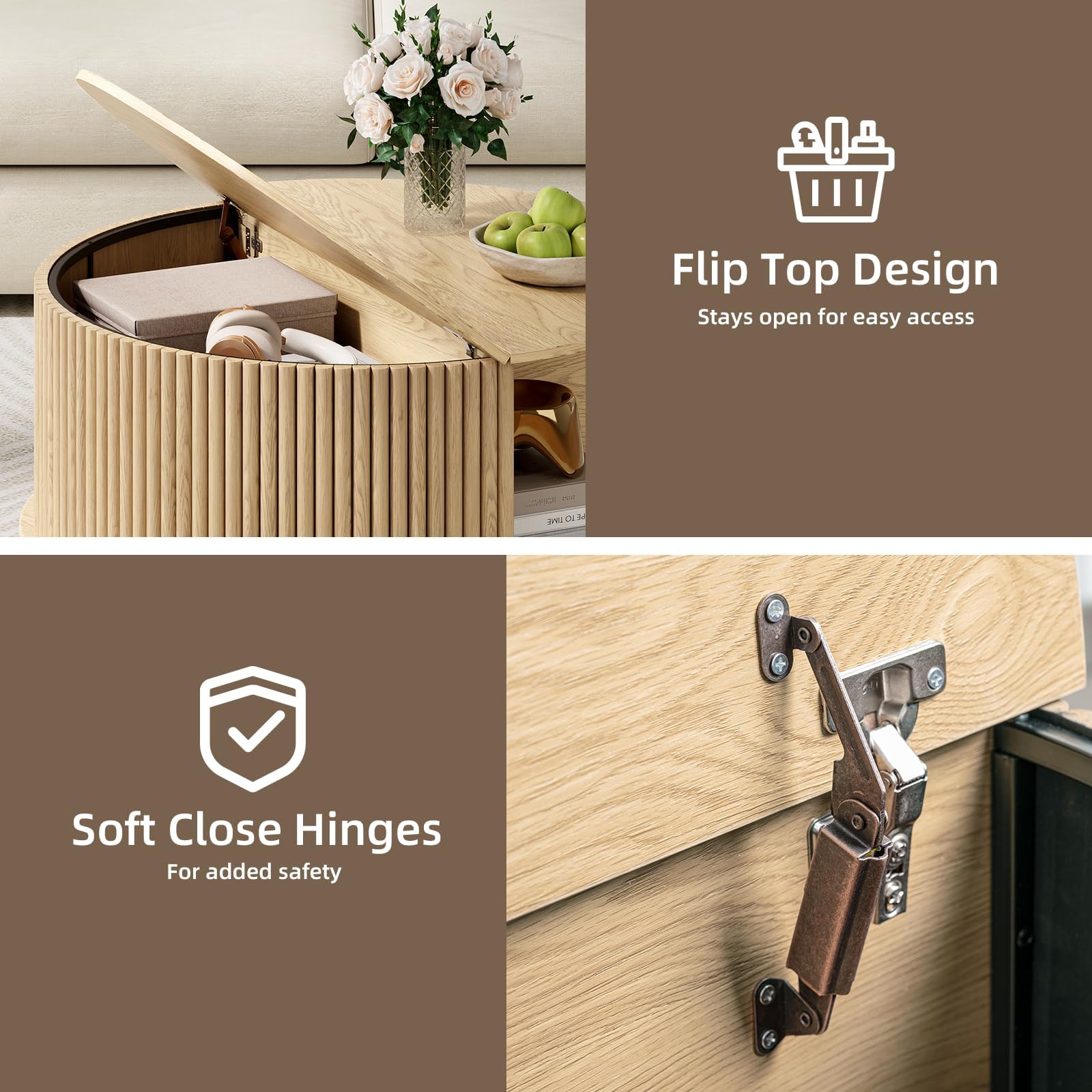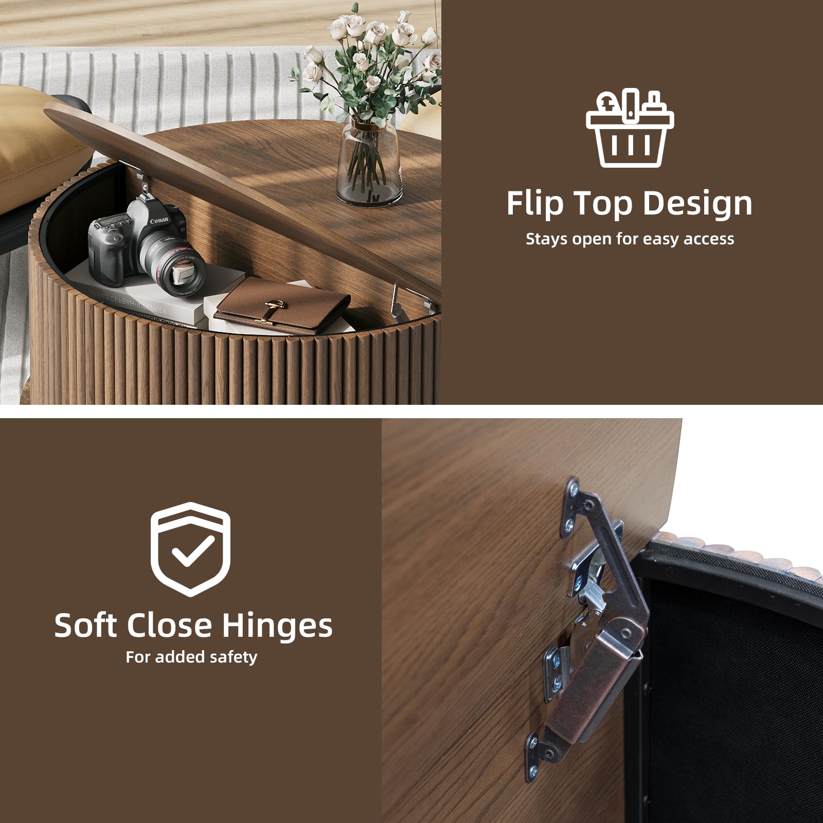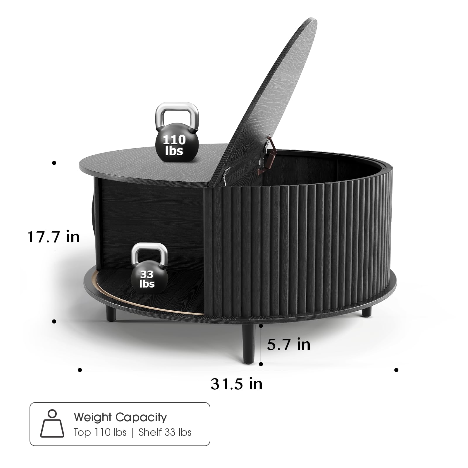 JOINICE, Round Coffee Table with Storage, Mid Century Modern Center Table with Sliding Cabinet Door, Fluted Dining Table for Living Room, Home Small Space, 31.5", Walnut