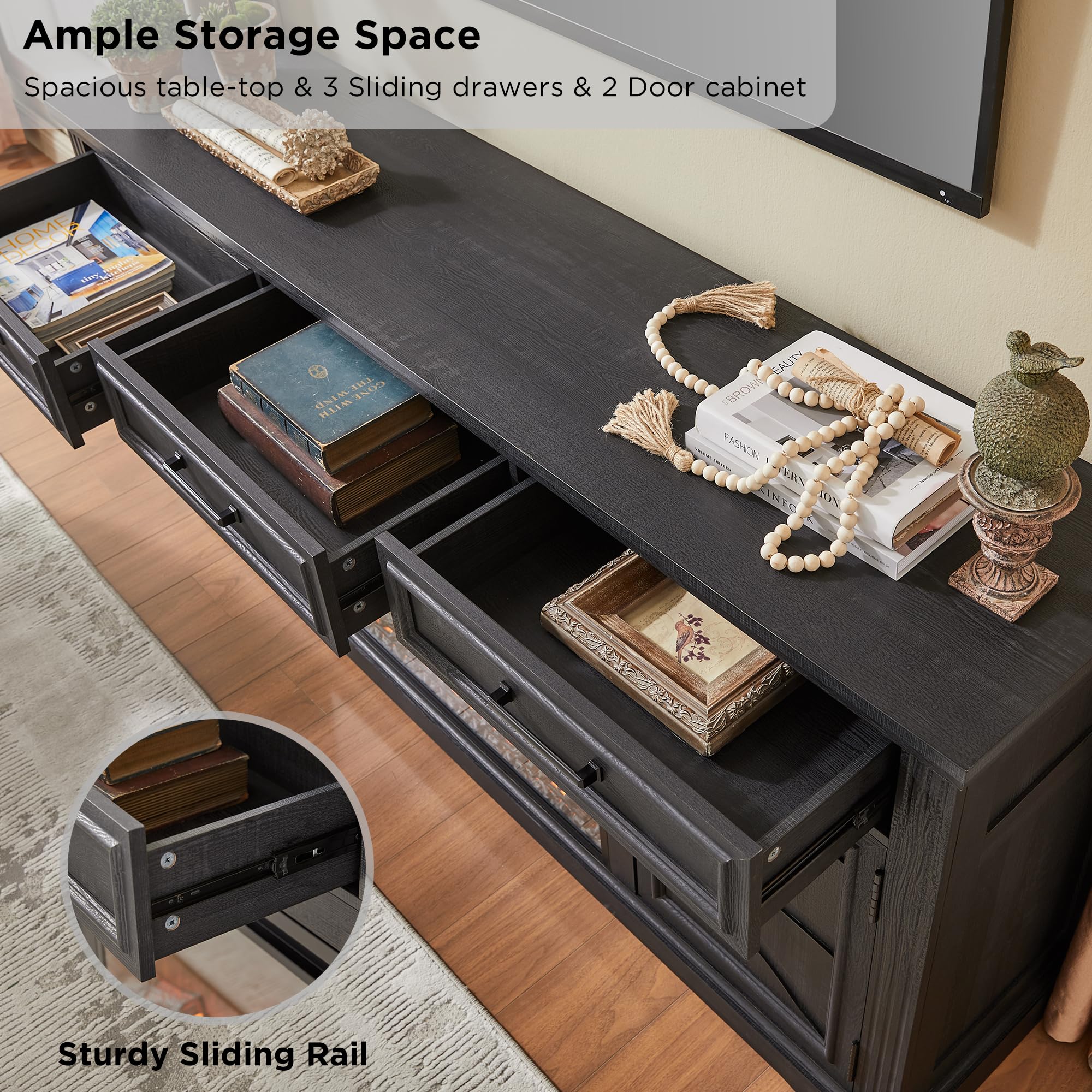 Ample Storage Space: This TV stand features a spacious stand top, 2 storage cabinets, and 3 big drawers, providing ample space to organize and store your media accessories, remote controls, DVDs, and other decor items. Keep your entertainment area clutter-free and organized.
