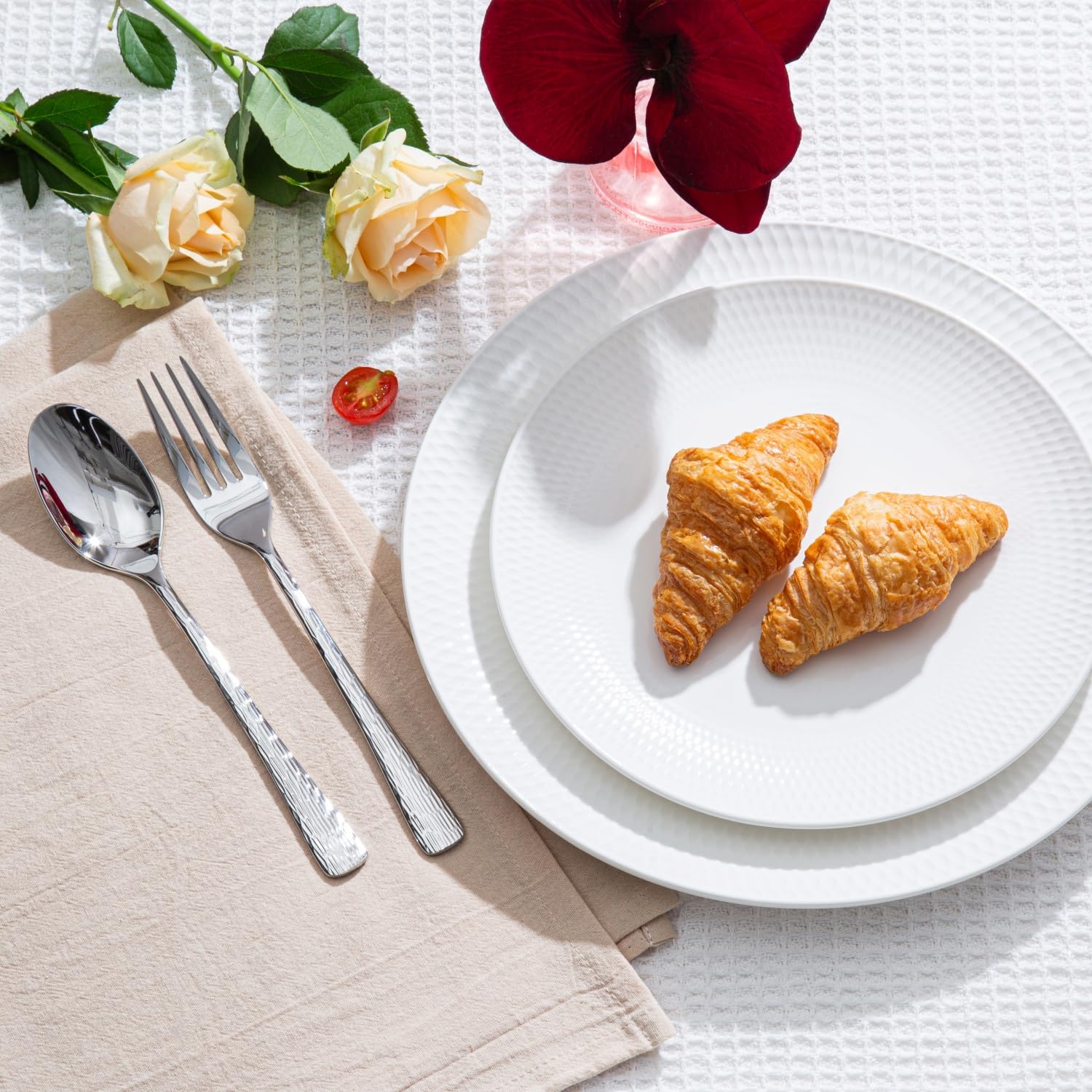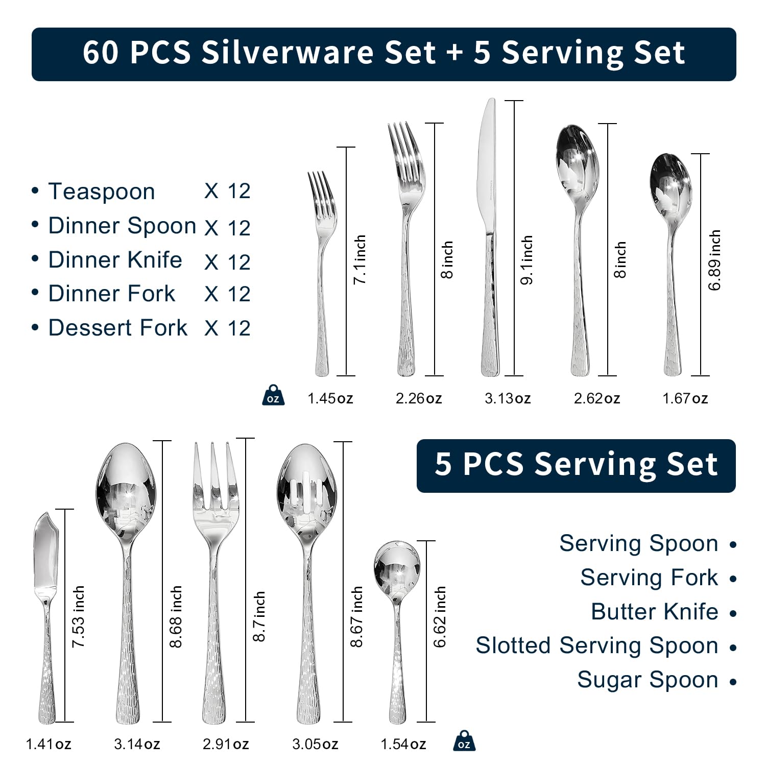 • MODERN STYLE: Each handle's unique hammered pattern complements most decorations. The curved edges, substantial thickness, and artisanal hammered finish add a touch of sophistication and elegance to your dining table, enhancing your fine dining experience.