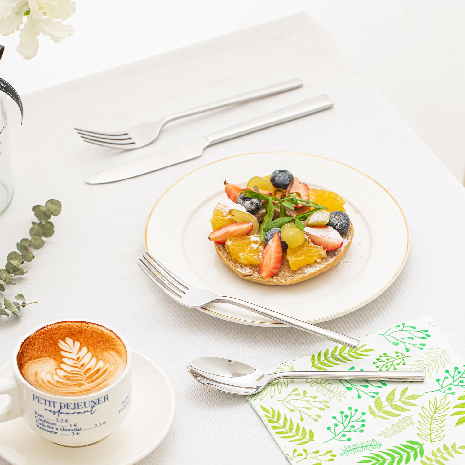 • DESIGN AND APPEARANCE: Mirror finish, natural and elegant design.Smooth and silk surface without grain, easy to clean and care in daily use. Crafted forged process,strong and durable,so that the flatware set has a thicker texture