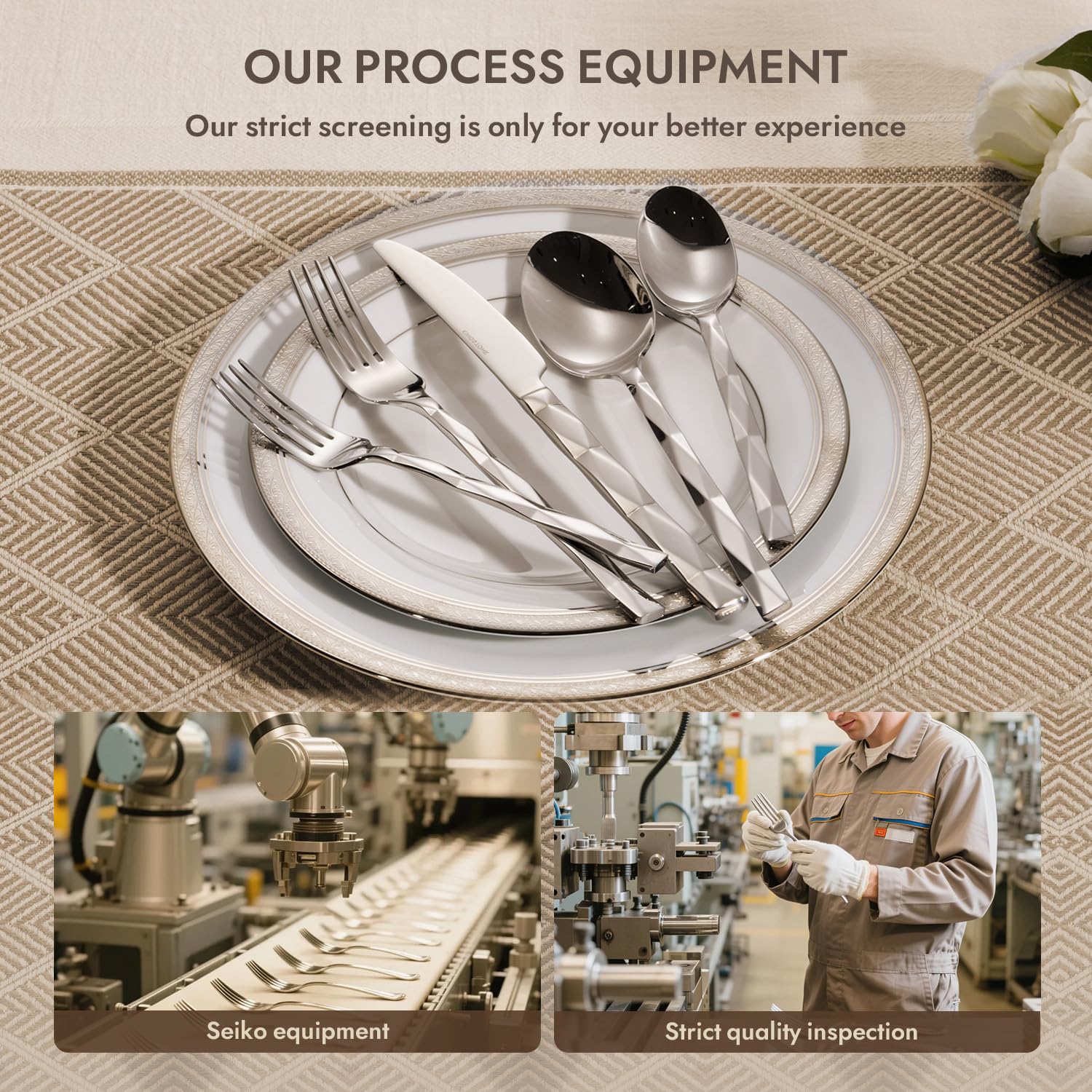 • LUXURY DSEIGN: The handle like a diamond cut design gives the flatware set a sense of luxury, and makes the tableware appear more shining. Luxury design would elevate everyday meals into a fine dining experience.