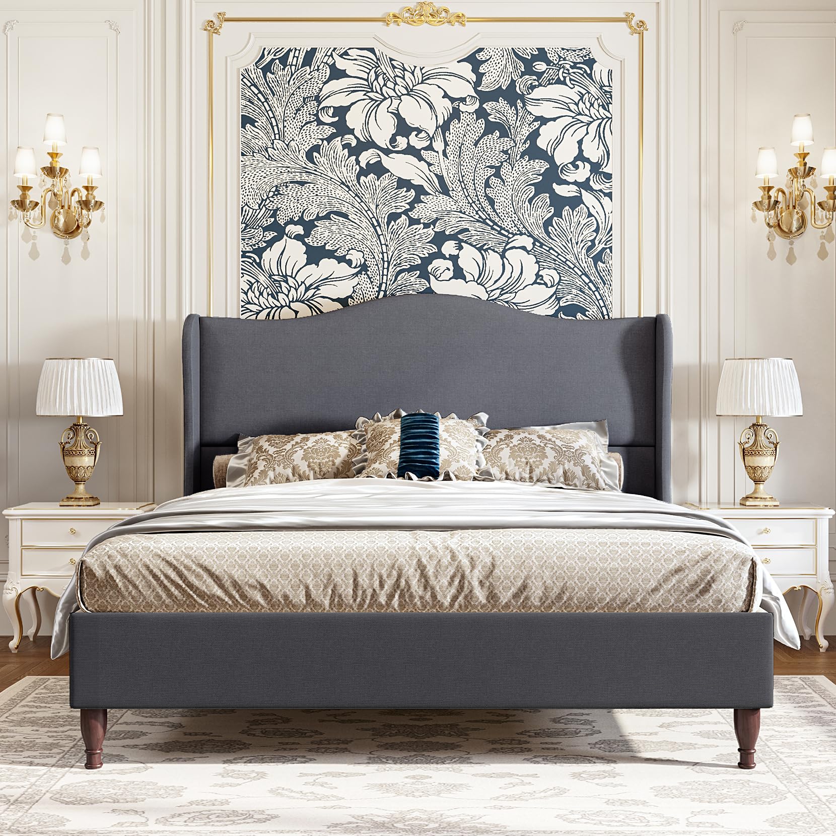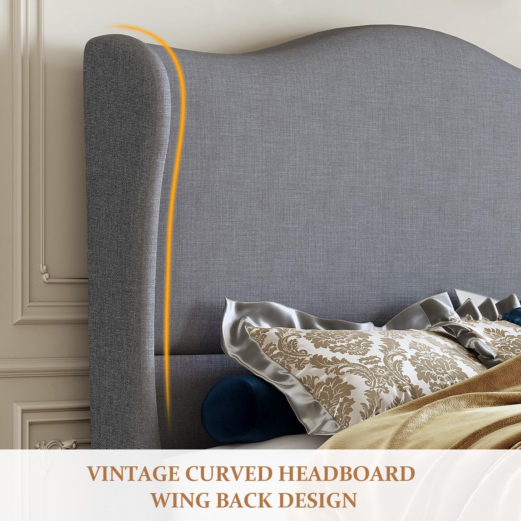 Retro Simple High Headboard Design: The fusion of advanced simple wing back headboard and retro bed leg design, with comfortable and soft fabric, with elegant aesthetics to enhance your bedroom, whether it is to enhance your master bedroom or stylish guest room is a good choice.