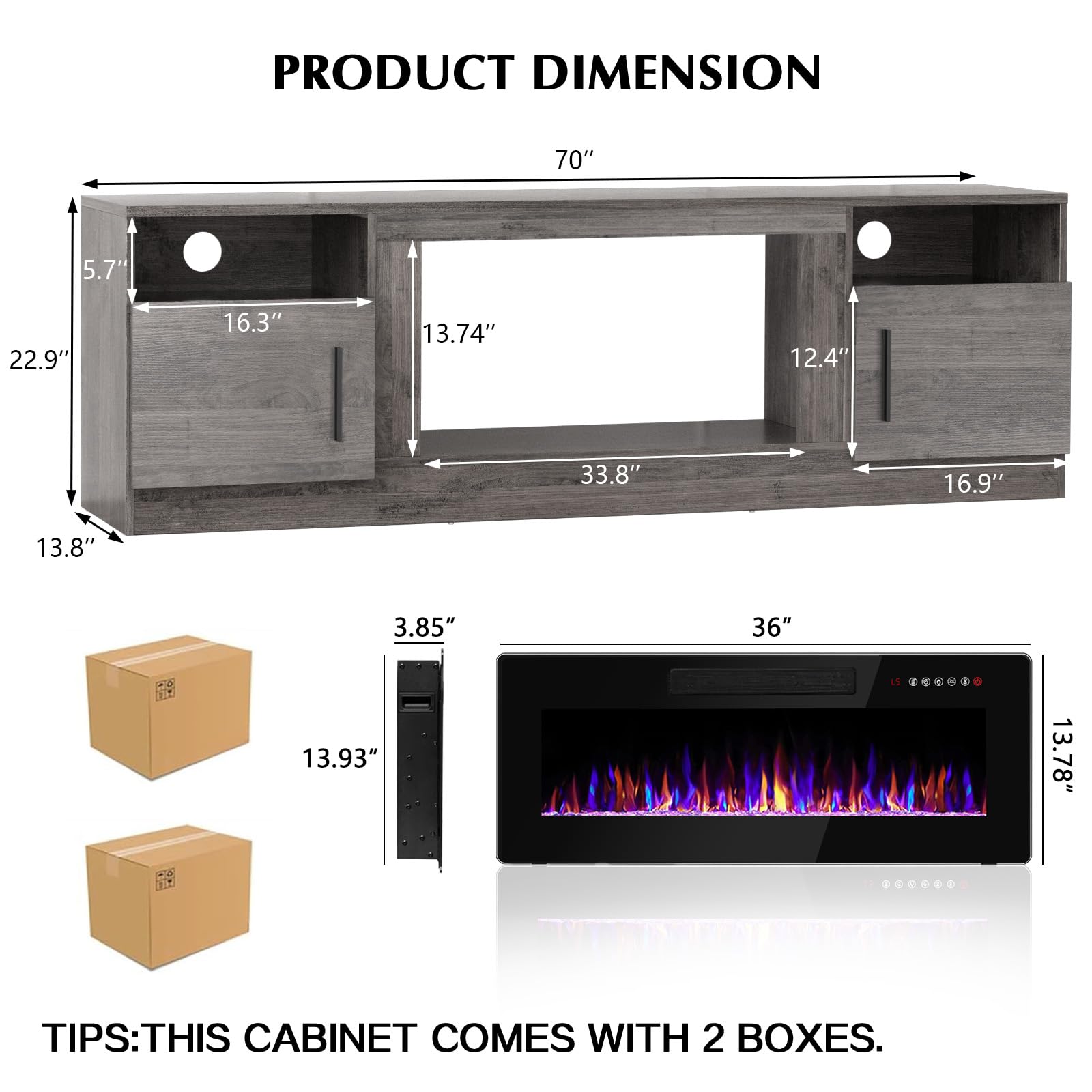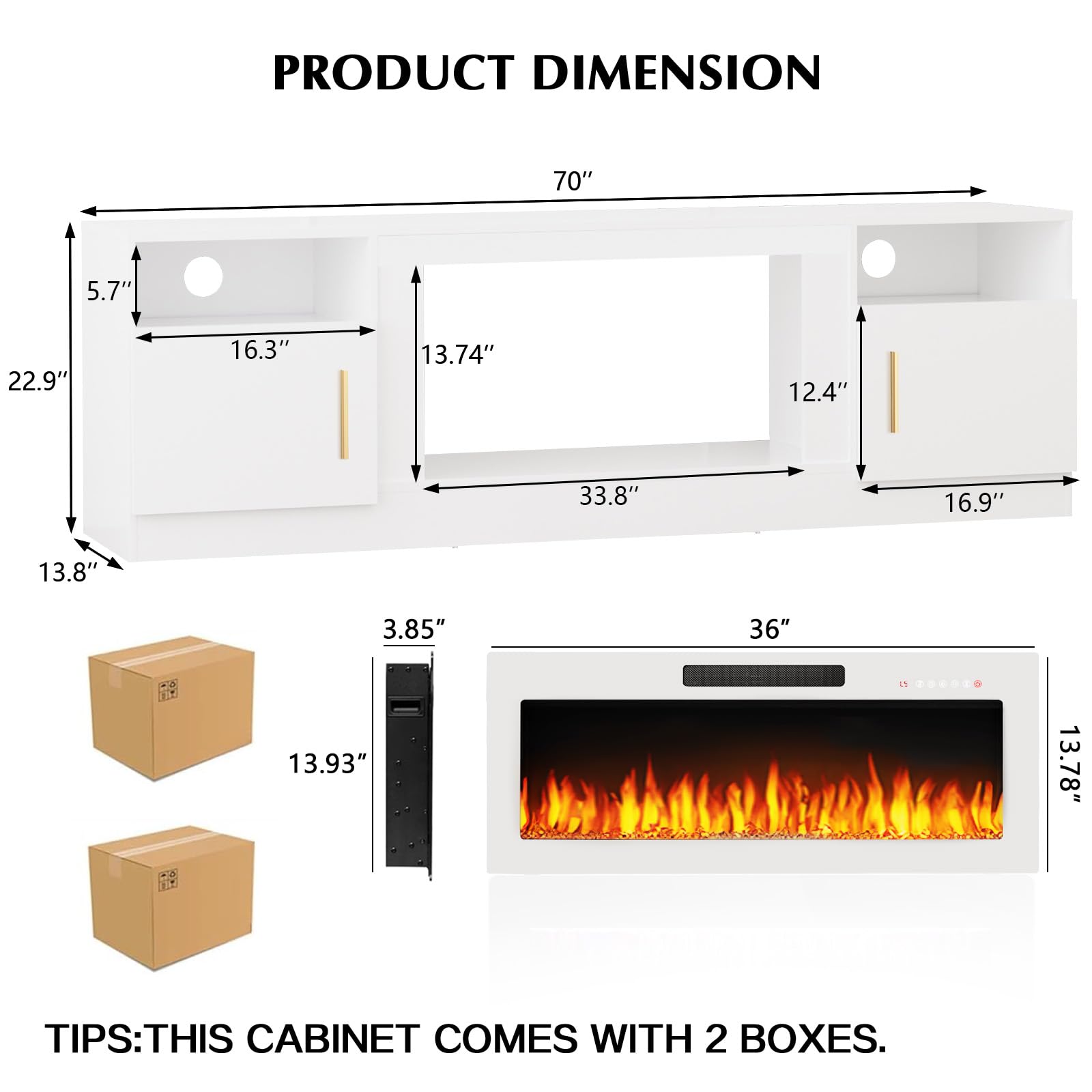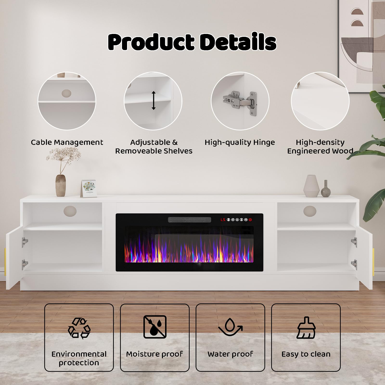 • High-quality Material: Our TV stands with fireplace are made of high grade quality waterproof MDF and tactile metal handles, no strong odor, scratch-resistant, and easy to clean. Double-thickened tabletop board add stability and load-bearing capacity up to 200 lbs,while each shelf can hold up to 33lbs.