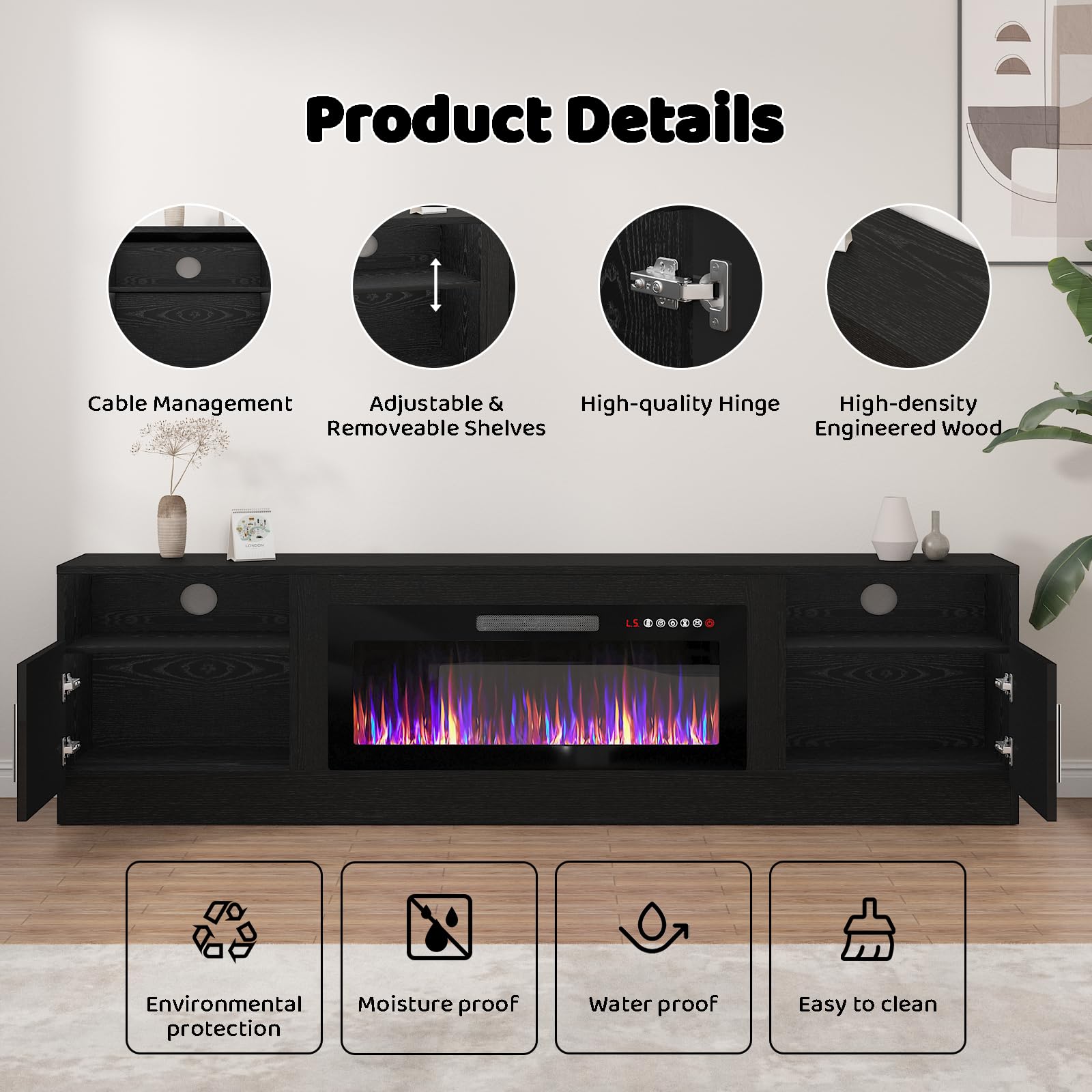 • Ample Storage Space & Cable Holes: 2 open storage shelf, 2 cabinets, spacious tabletop, our fireplace entertainment center providing plenty of storage space. The shelf of the TV console can be individually detachable, greatly improves the practicality and flexibility of storage. The back of the fireplace TV stand is designed with cable holes to help you organize and hide cables, creating a more organized space.