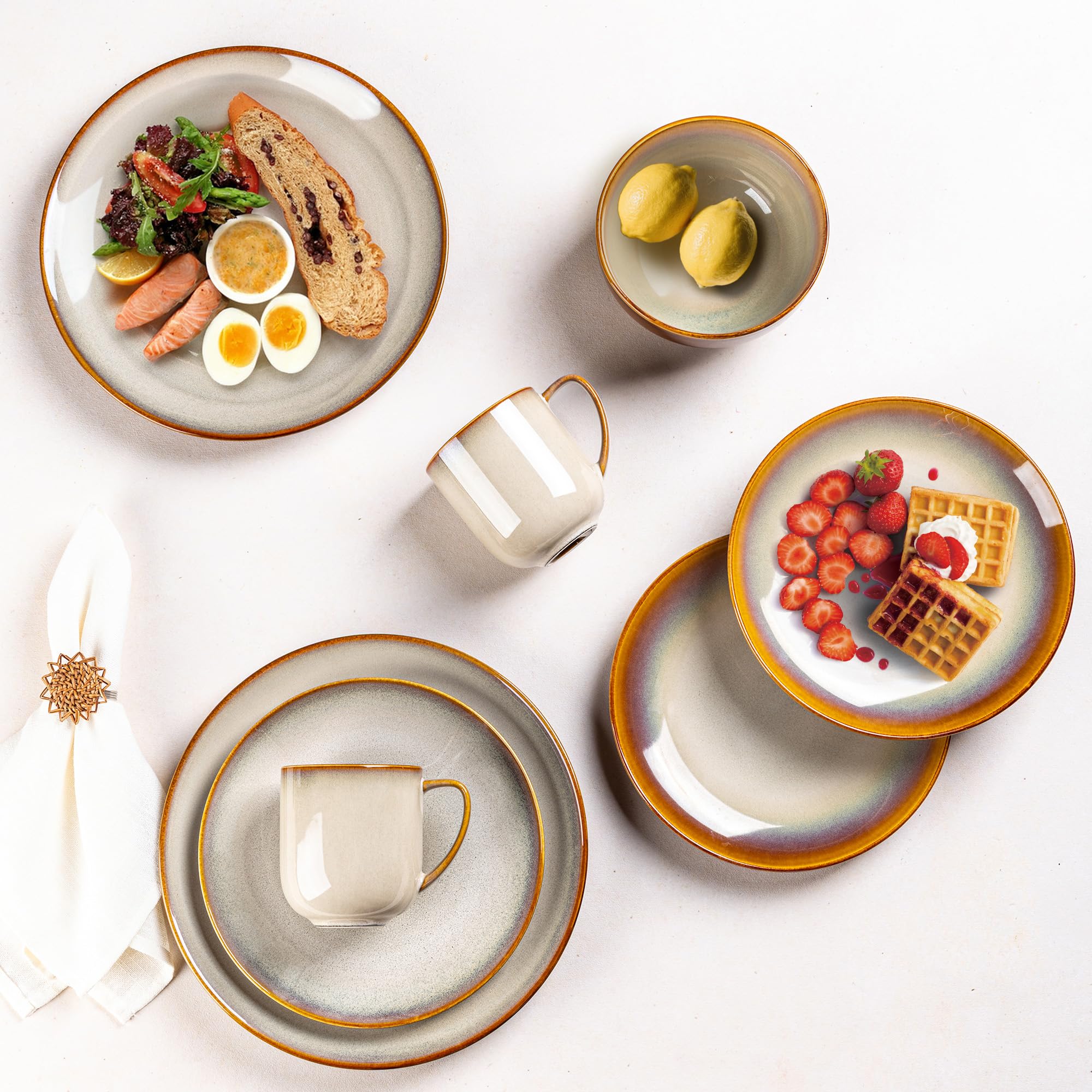 • 【SERVICE FOR 6 】6 pcs of 10.5" dinner plates, 6 pcs of 8.5" salad/appetizer/dessert plates, and 6 pcs of 26 oz soup/cereal/ceramic bowls. It makes a great housewarming gift for newlyweds who appreciate quality and style, or for anyone who has recently moved into a new home or apartment. With this set, you can enjoy your meals in style and create beautiful memories with your loved ones.