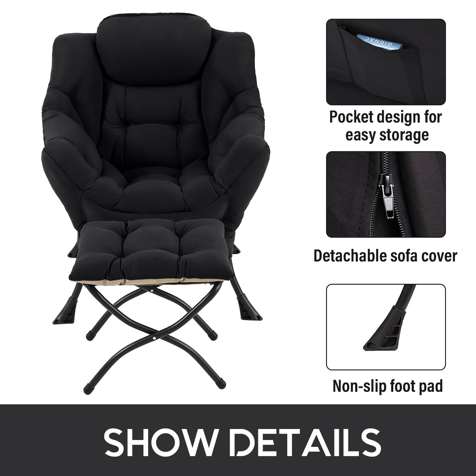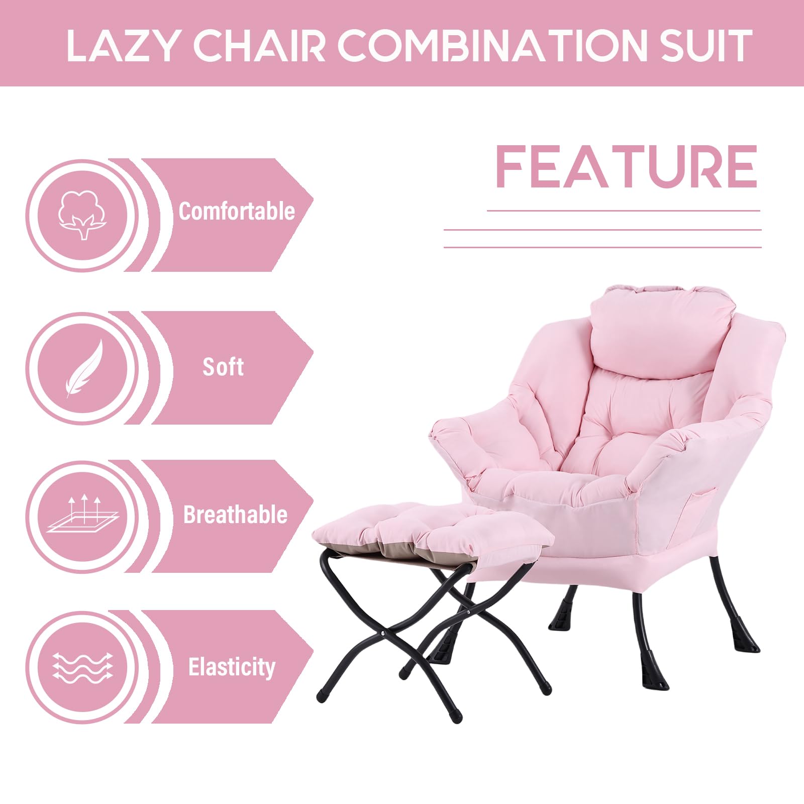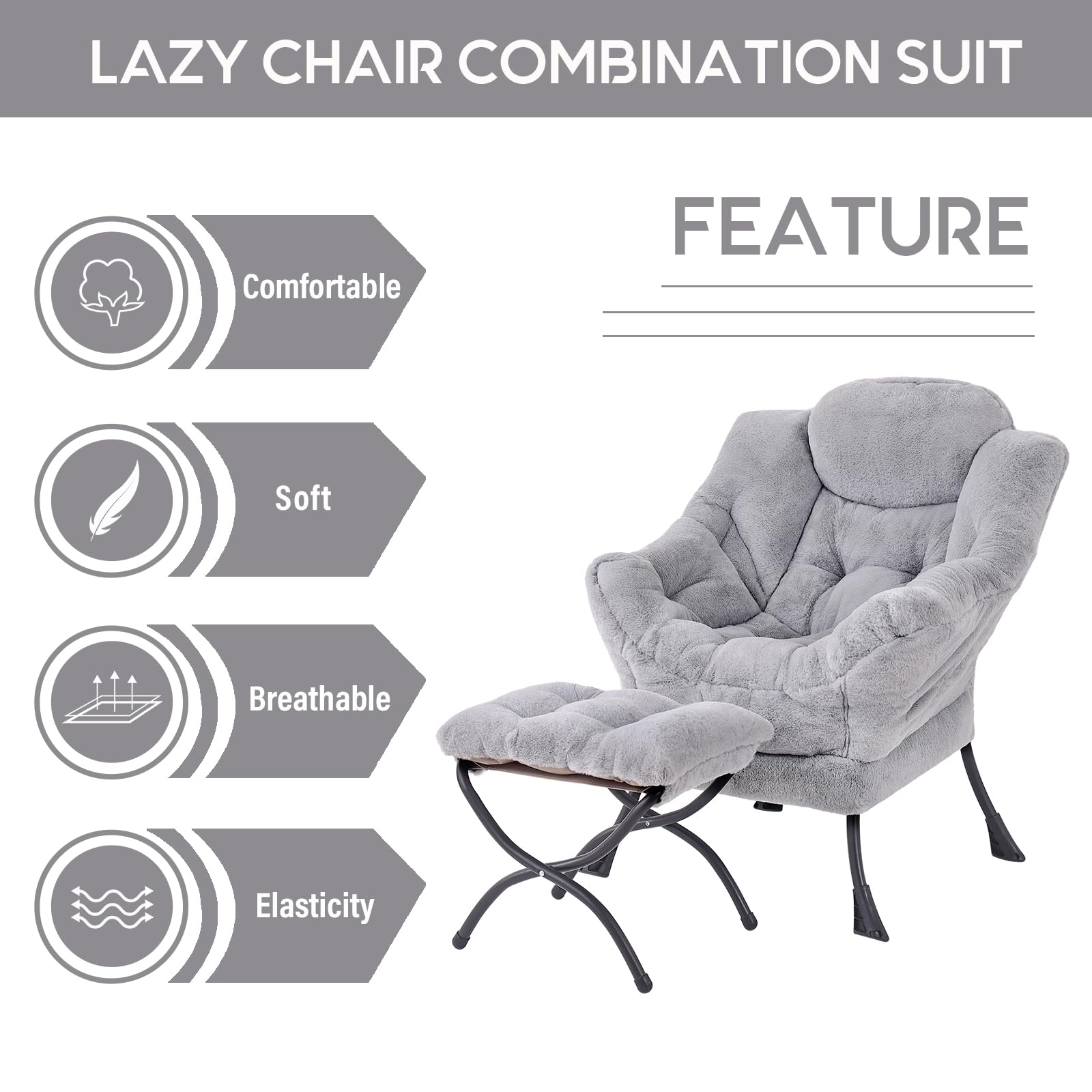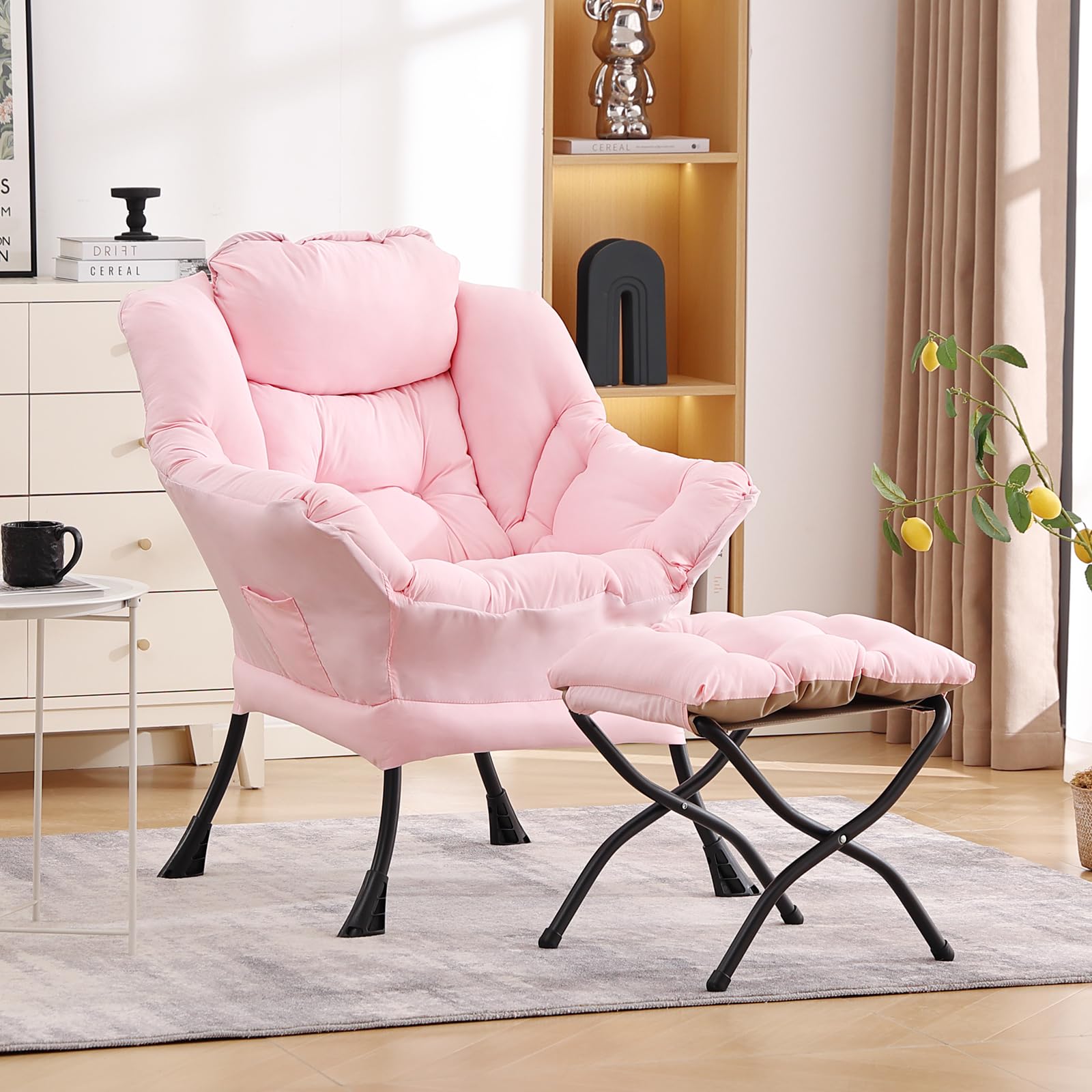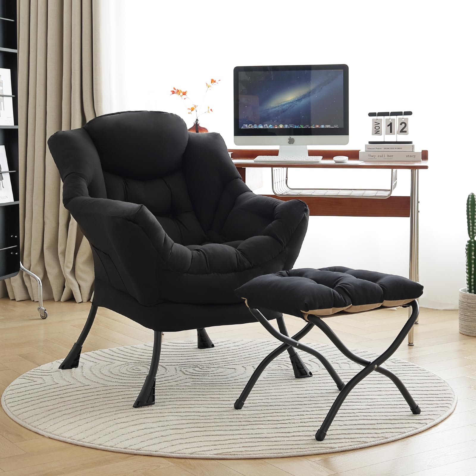 • LAZY CHAIR WITH OTTOMAN: The leisure chair comes with a footstool that can be quickly folded when not in use for easy storage. You can rest on a footstool, place the stool next to the sofa and end table in the living room as a footboard to relax your feet, or even place it in the hallway or doorway and sit on a small stool while changing your shoes.