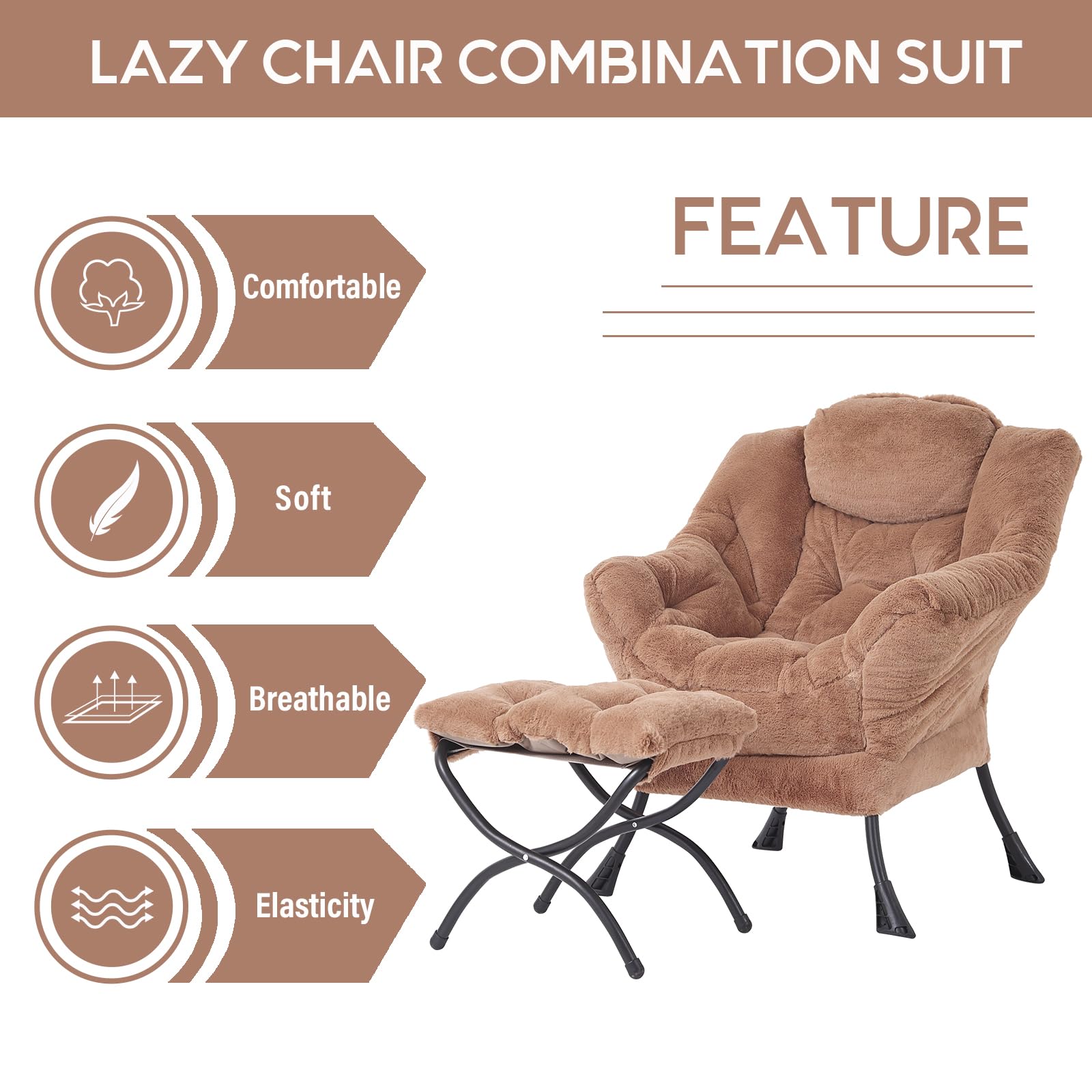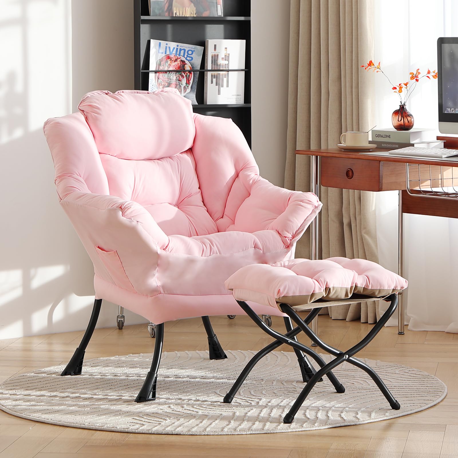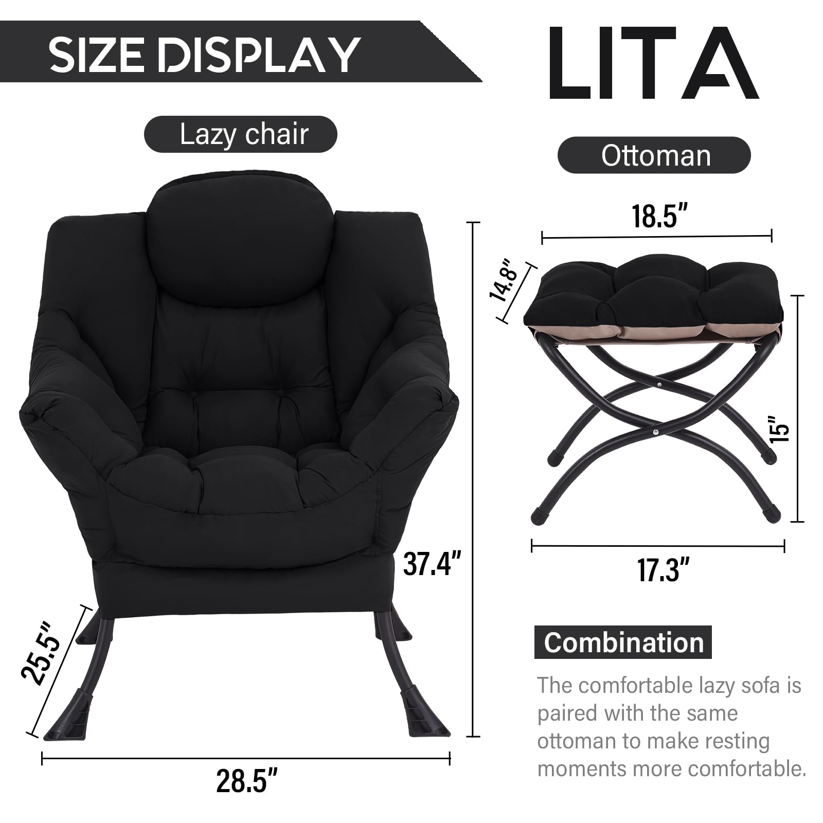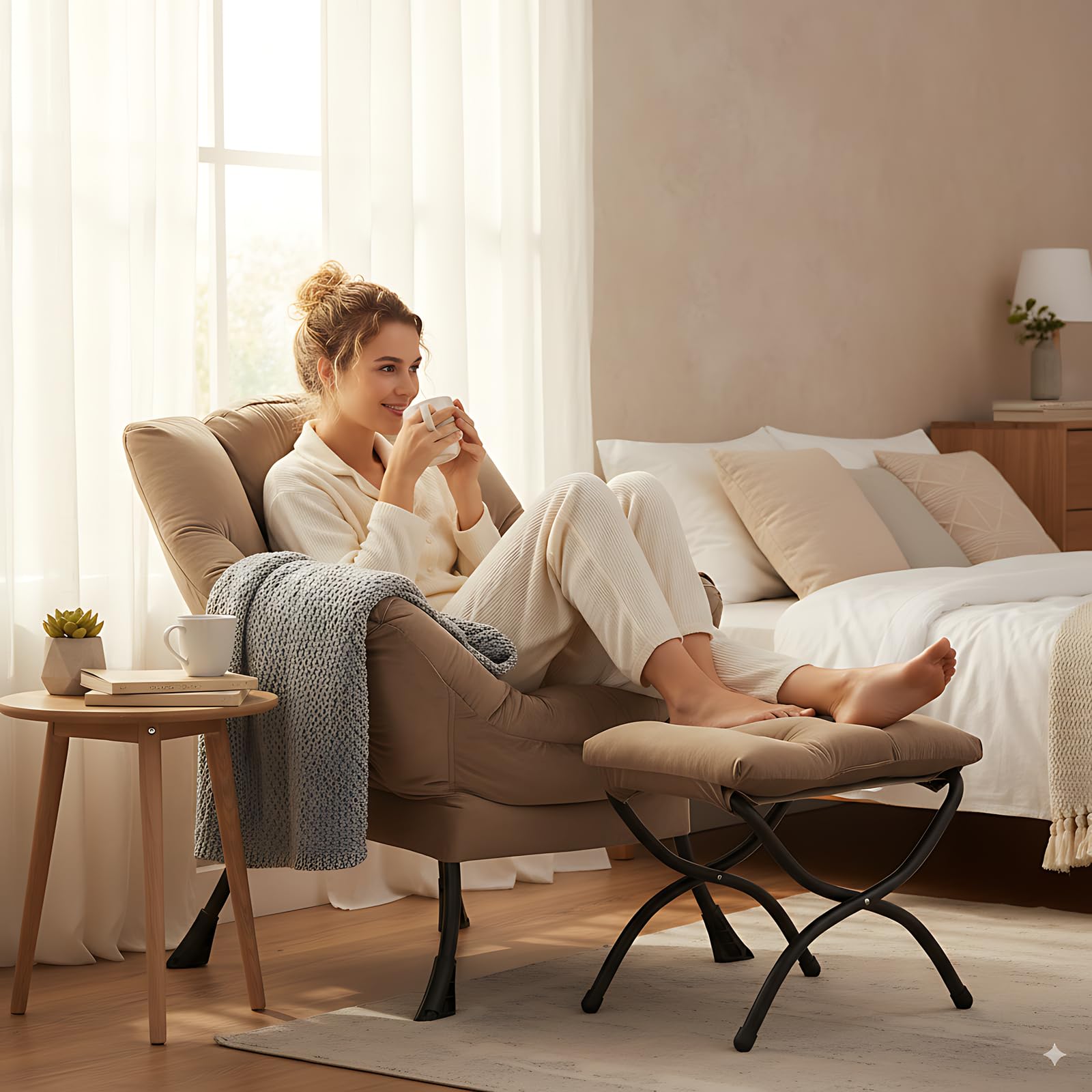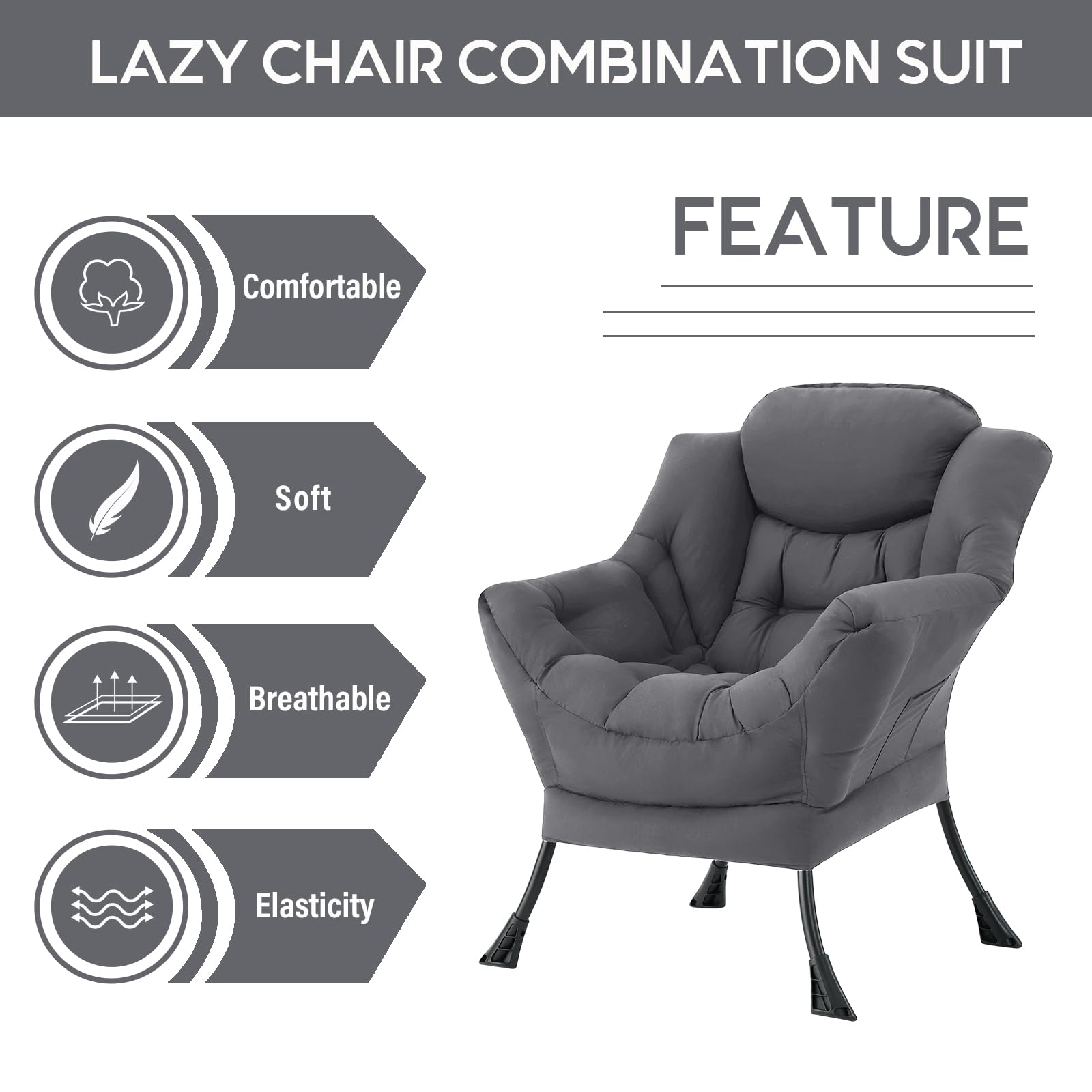 • LAZY CHAIR WITH OTTOMAN: The leisure chair comes with a footstool that can be quickly folded when not in use for easy storage. You can rest on a footstool, place the stool next to the sofa and end table in the living room as a footboard to relax your feet, or even place it in the hallway or doorway and sit on a small stool while changing your shoes.