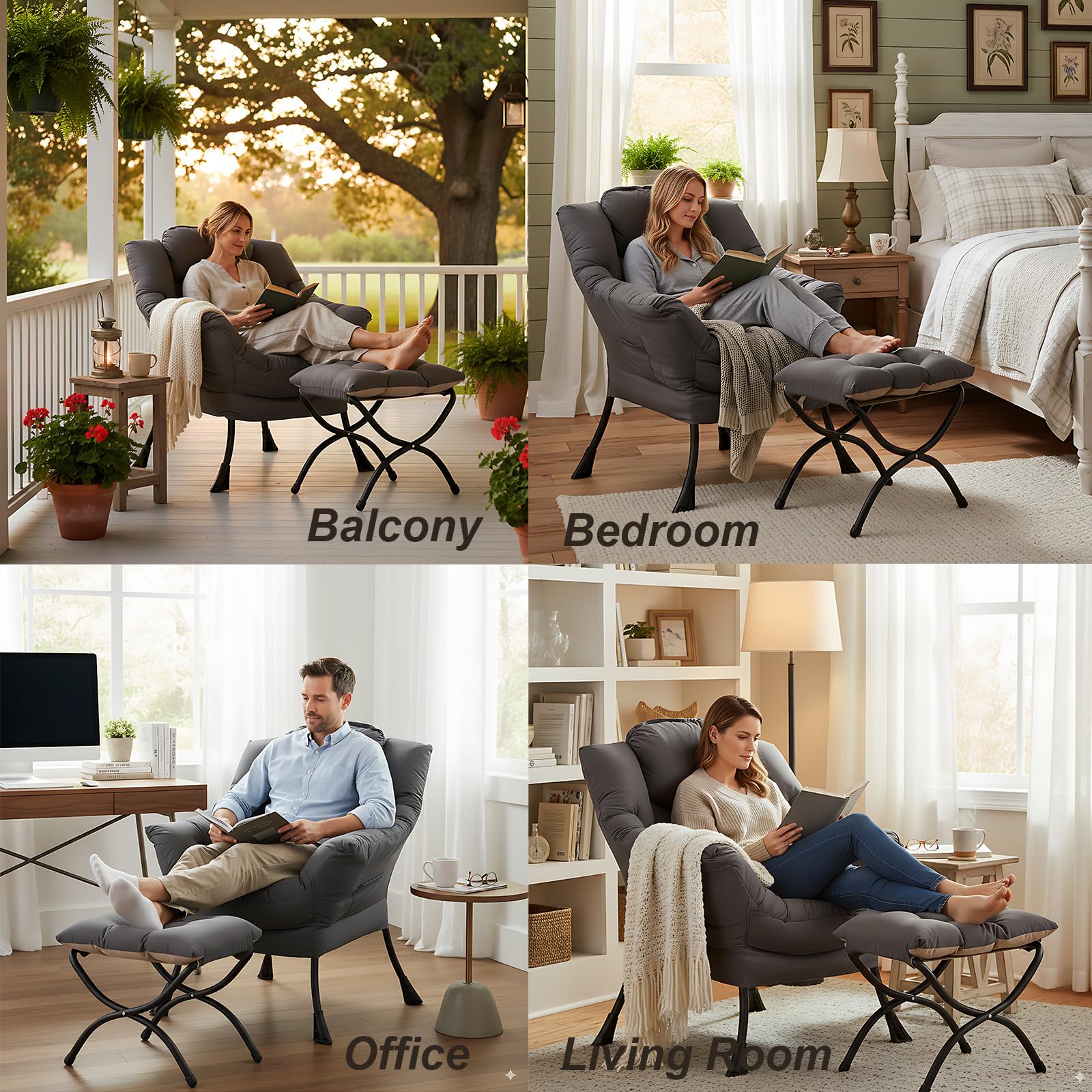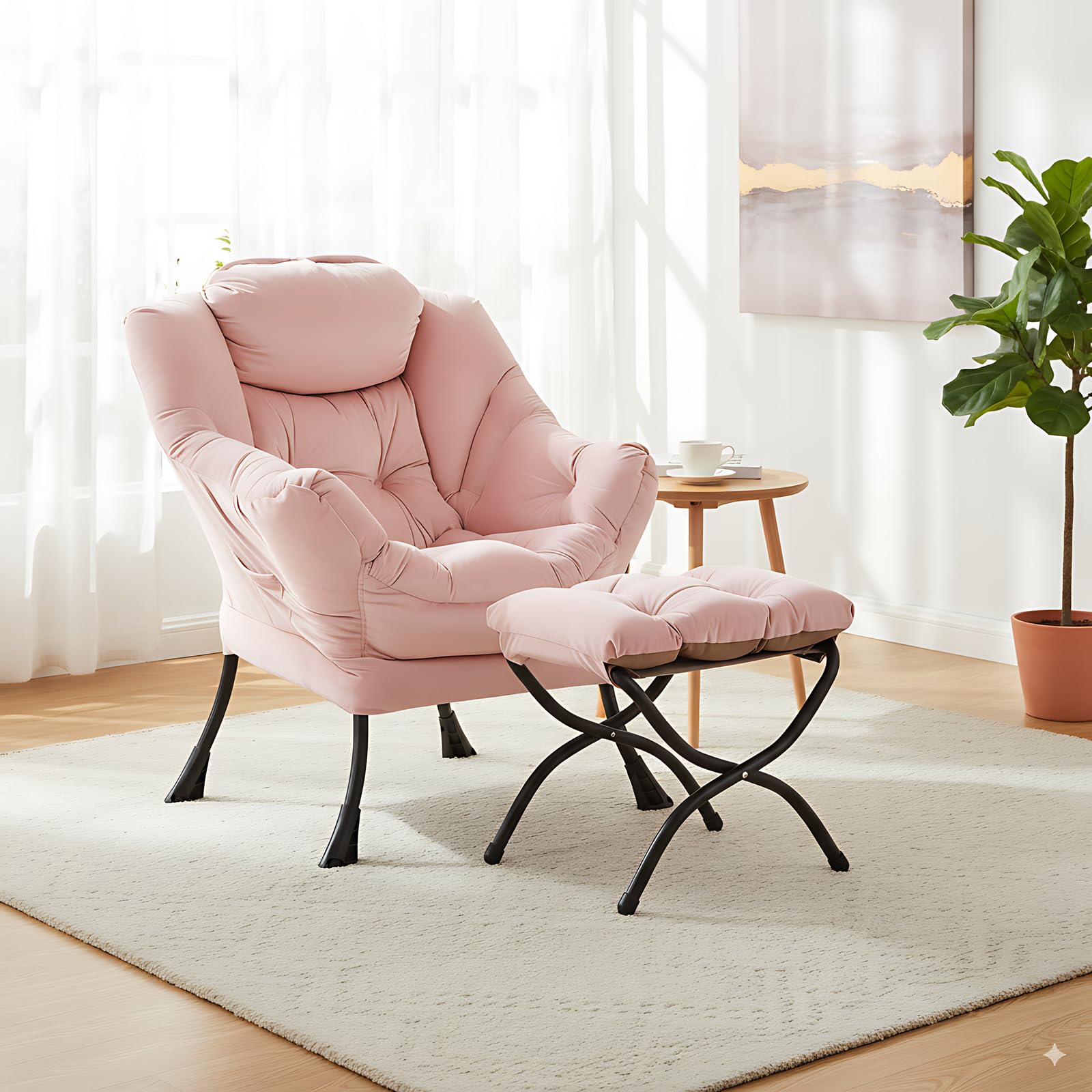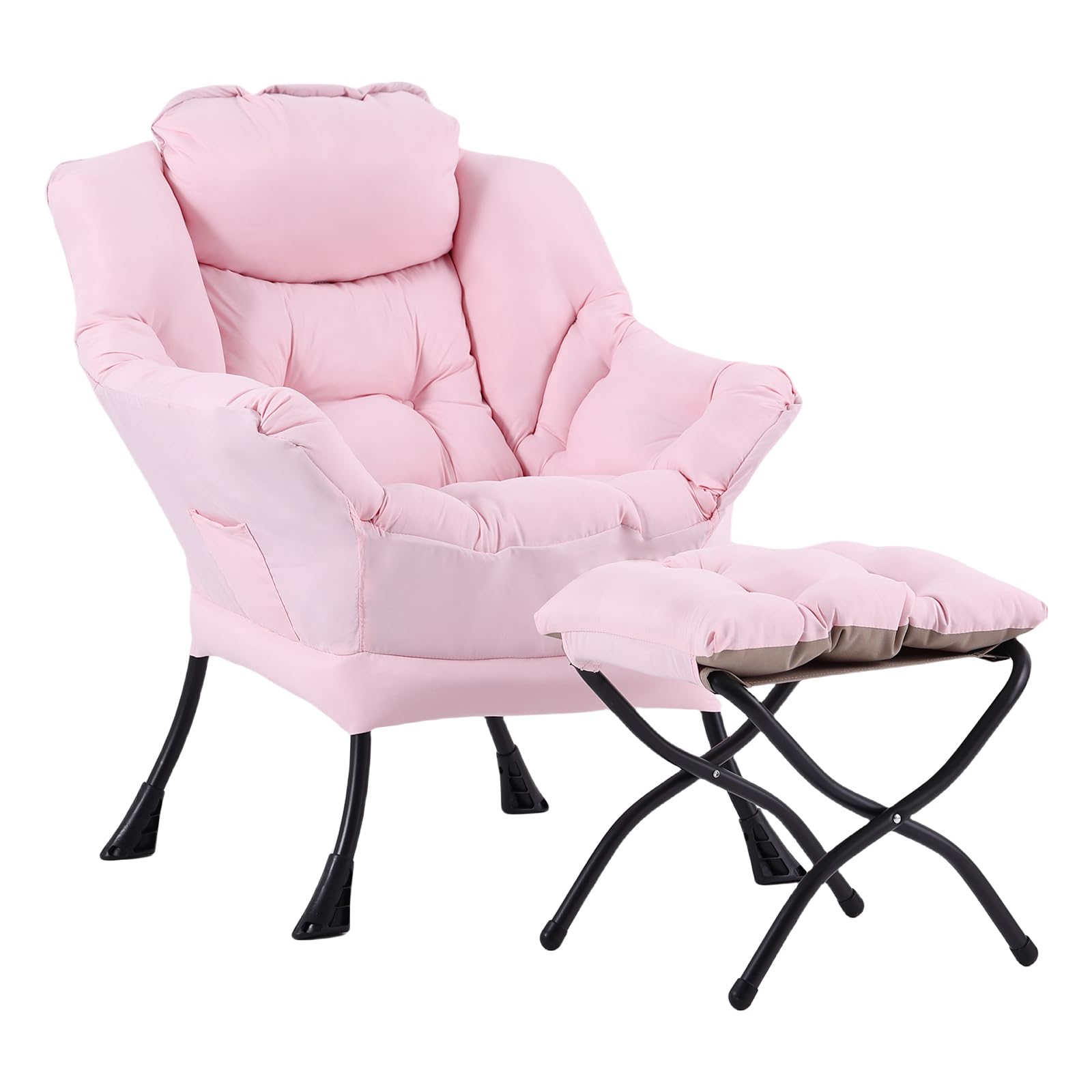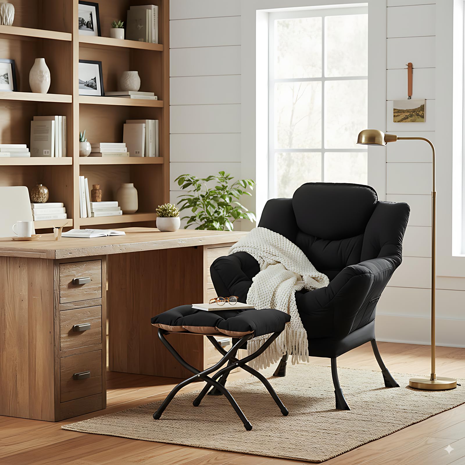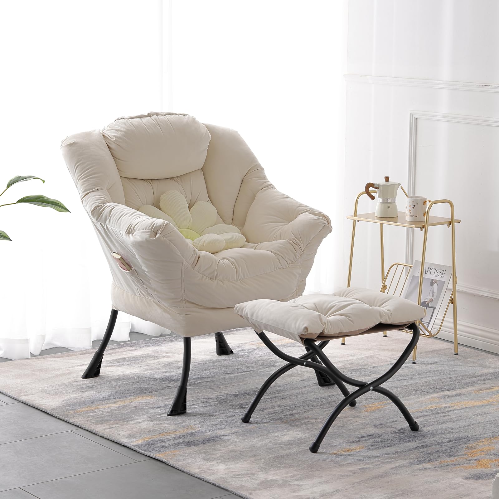 • LAZY CHAIR WITH OTTOMAN: The leisure chair comes with a footstool that can be quickly folded when not in use for easy storage. You can rest on a footstool, place the stool next to the sofa and end table in the living room as a footboard to relax your feet, or even place it in the hallway or doorway and sit on a small stool while changing your shoes.