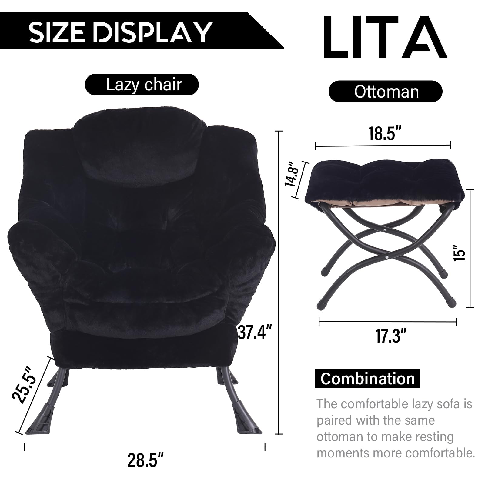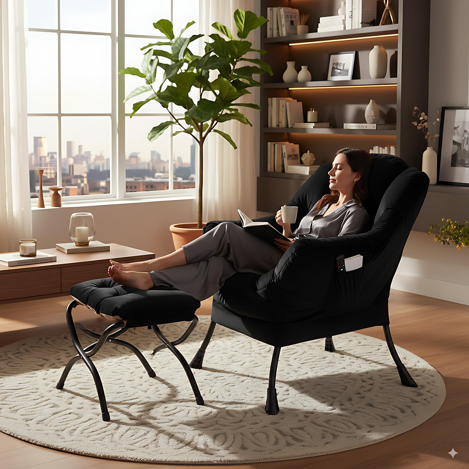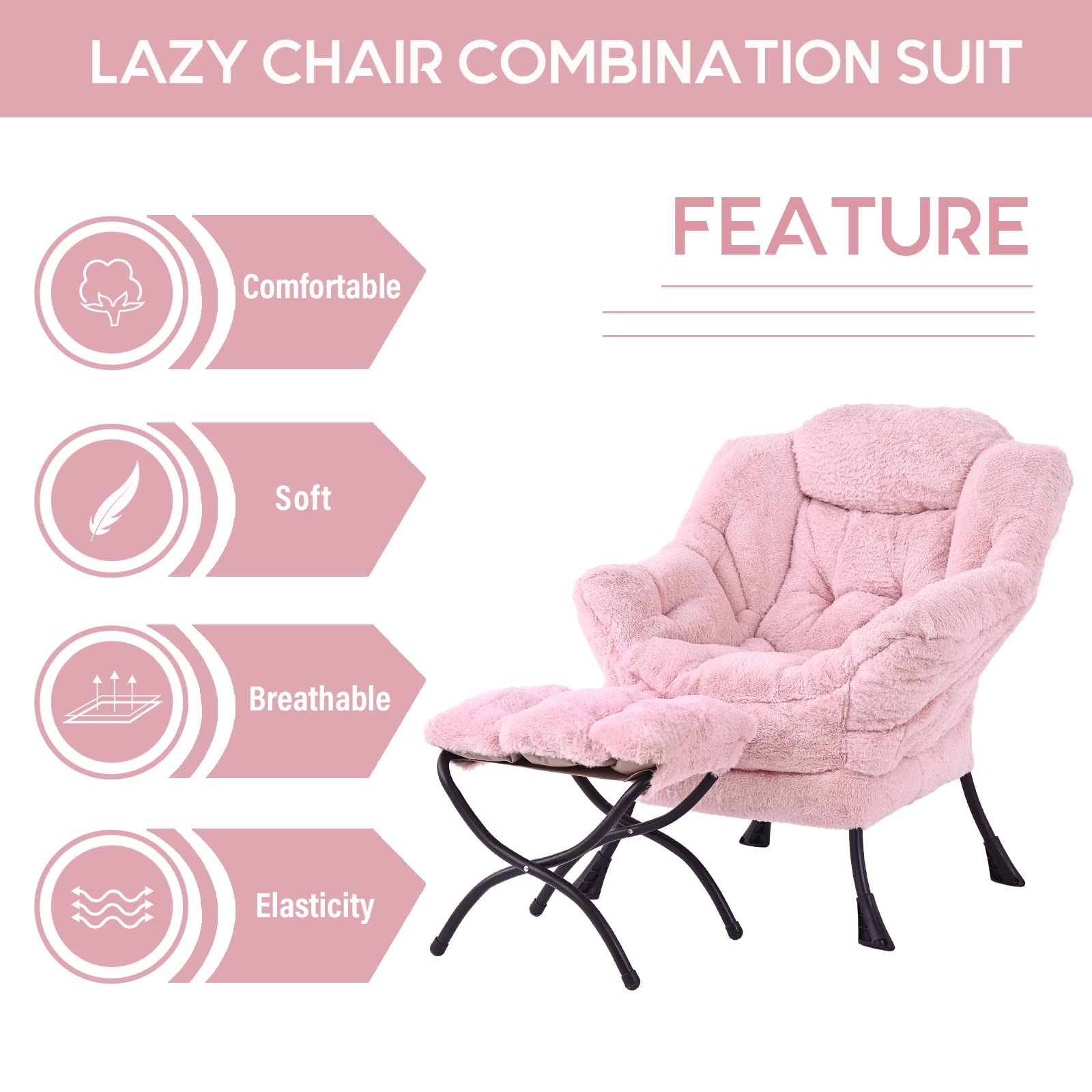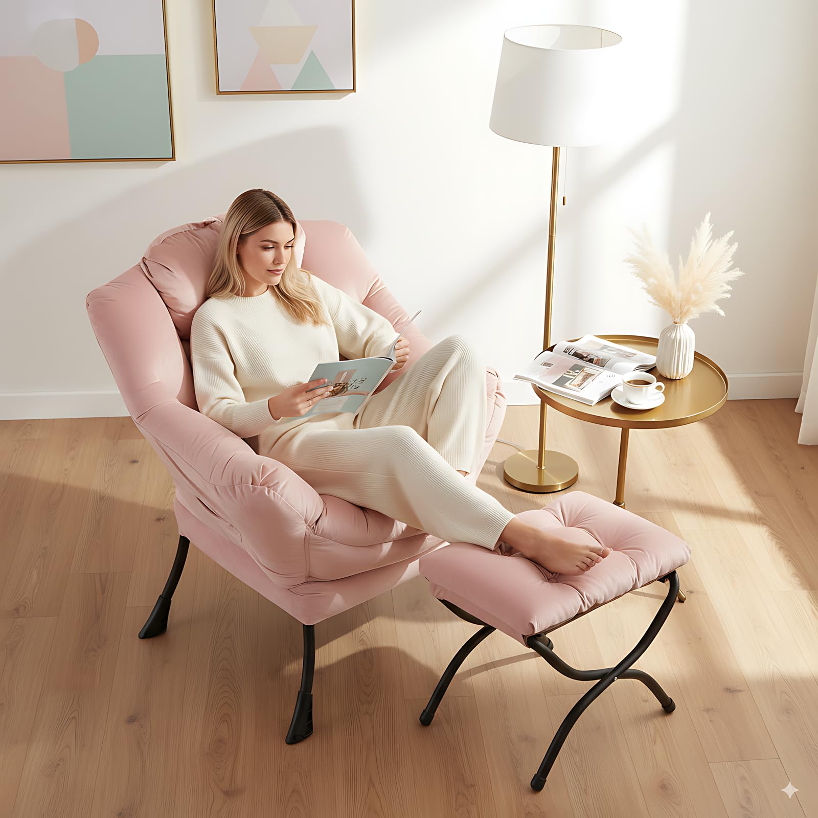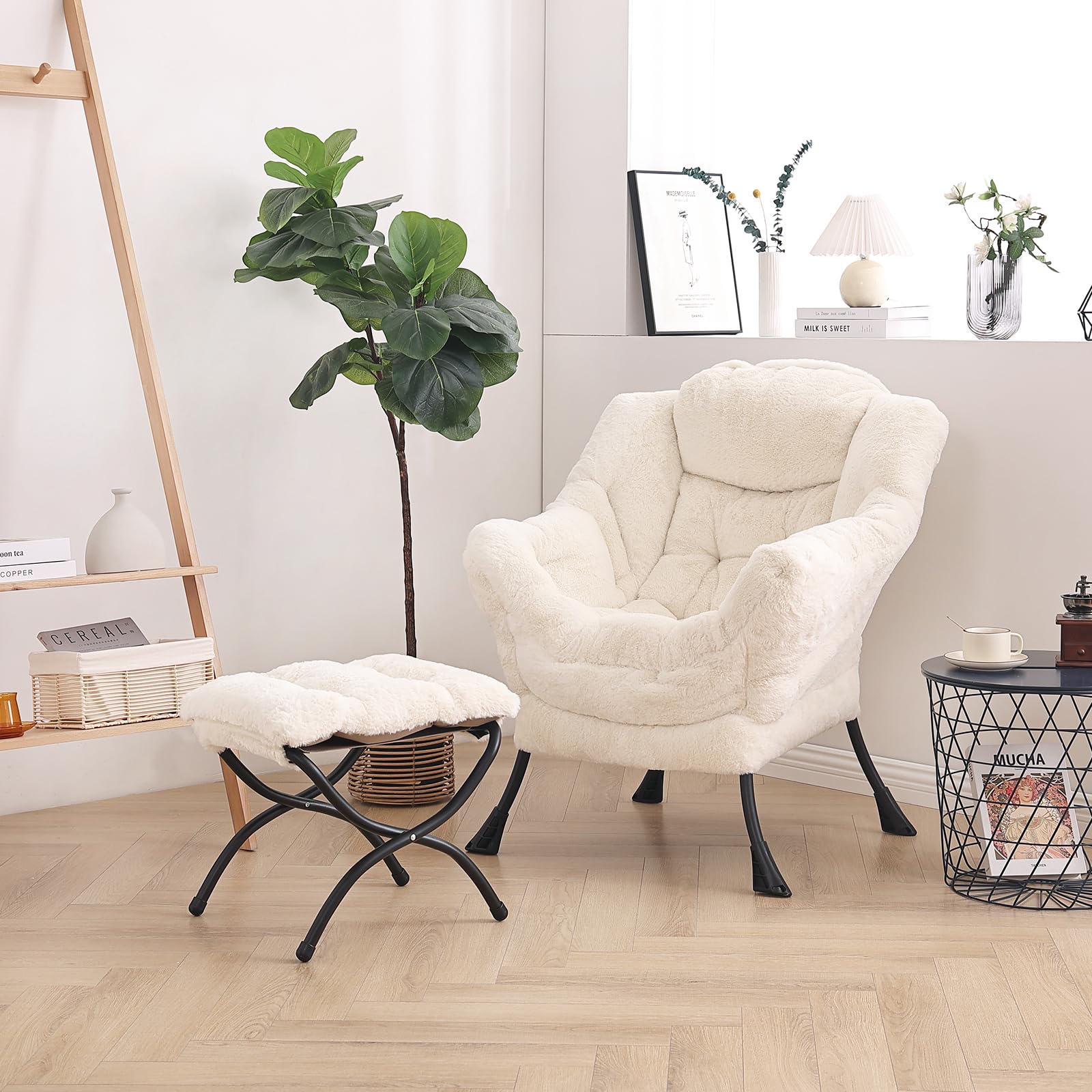 • LAZY CHAIR WITH OTTOMAN: The leisure chair comes with a footstool that can be quickly folded when not in use for easy storage. You can rest on a footstool, place the stool next to the sofa and end table in the living room as a footboard to relax your feet, or even place it in the hallway or doorway and sit on a small stool while changing your shoes.