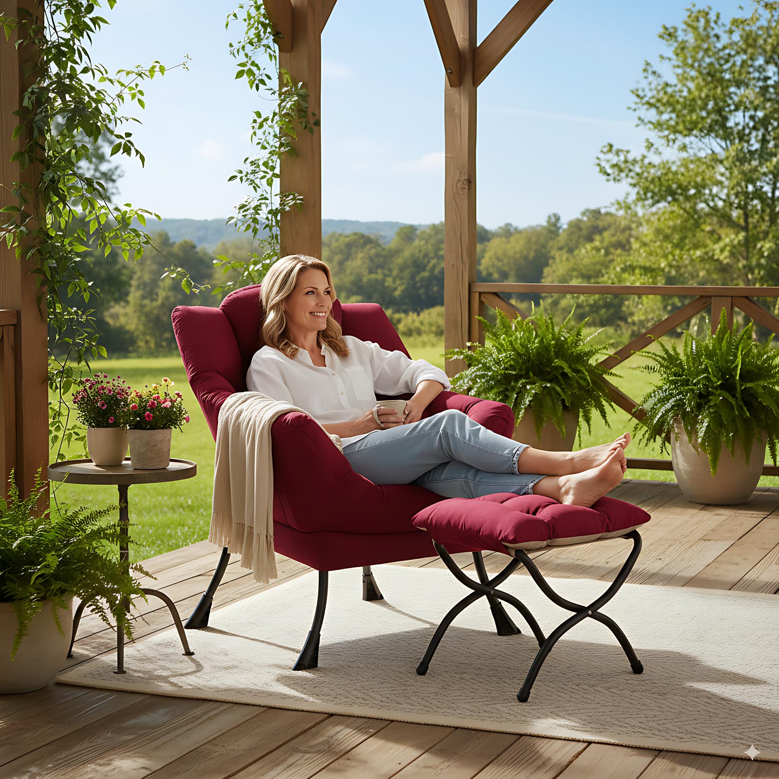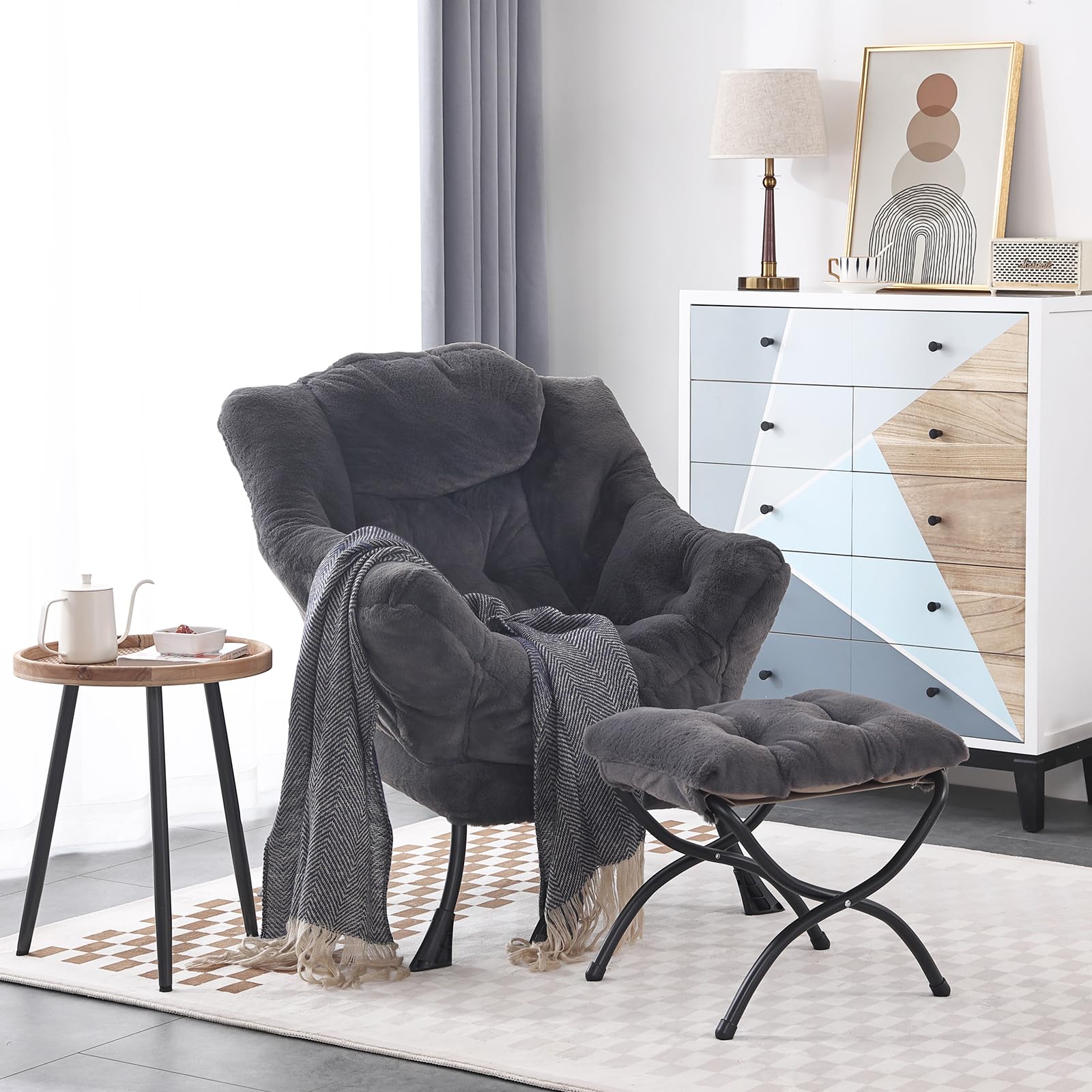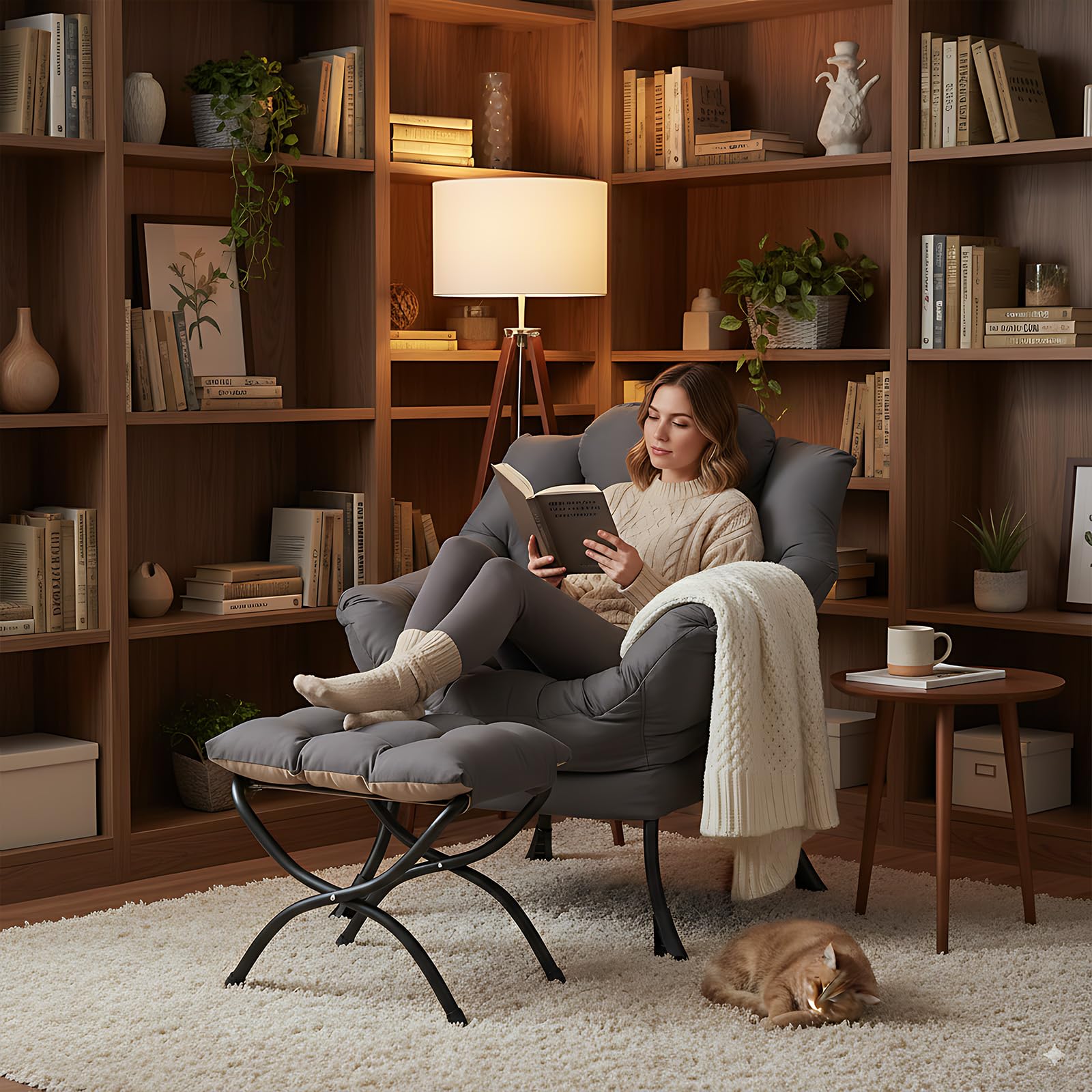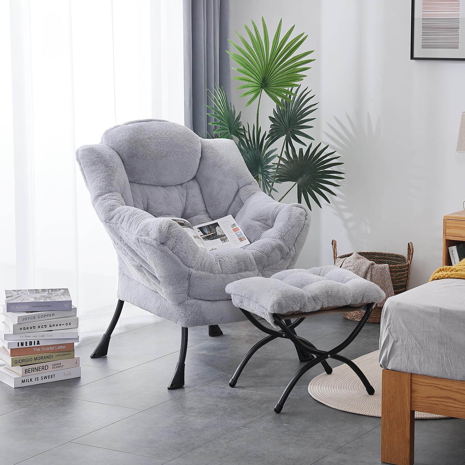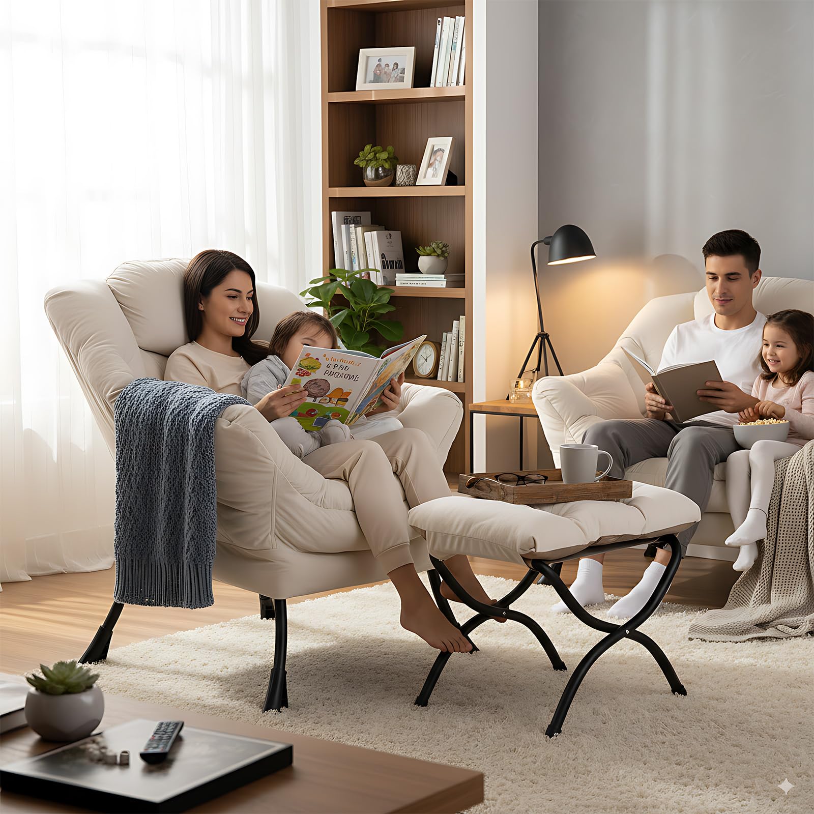 • LAZY CHAIR WITH OTTOMAN: The leisure chair comes with a footstool that can be quickly folded when not in use for easy storage. You can rest on a footstool, place the stool next to the sofa and end table in the living room as a footboard to relax your feet, or even place it in the hallway or doorway and sit on a small stool while changing your shoes.