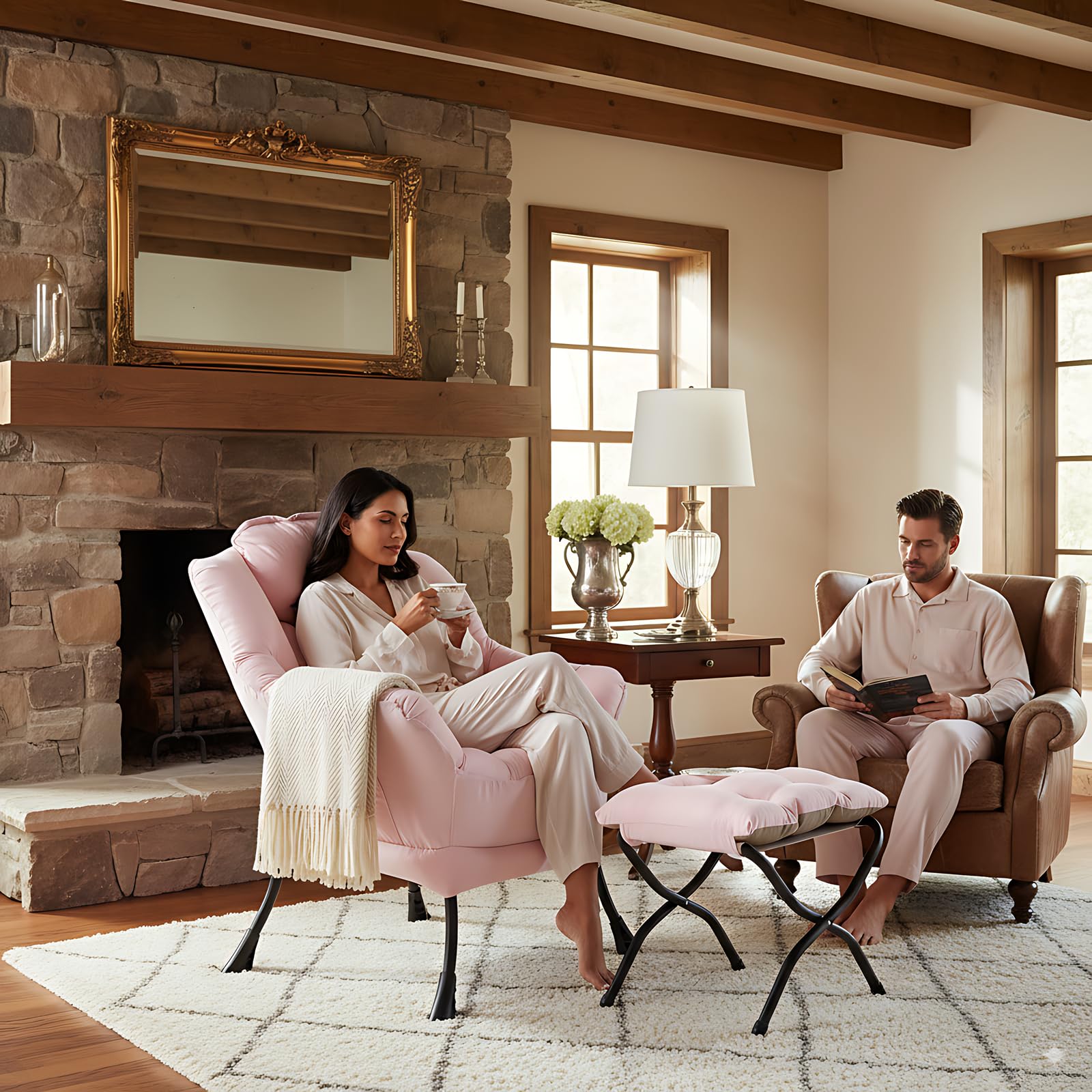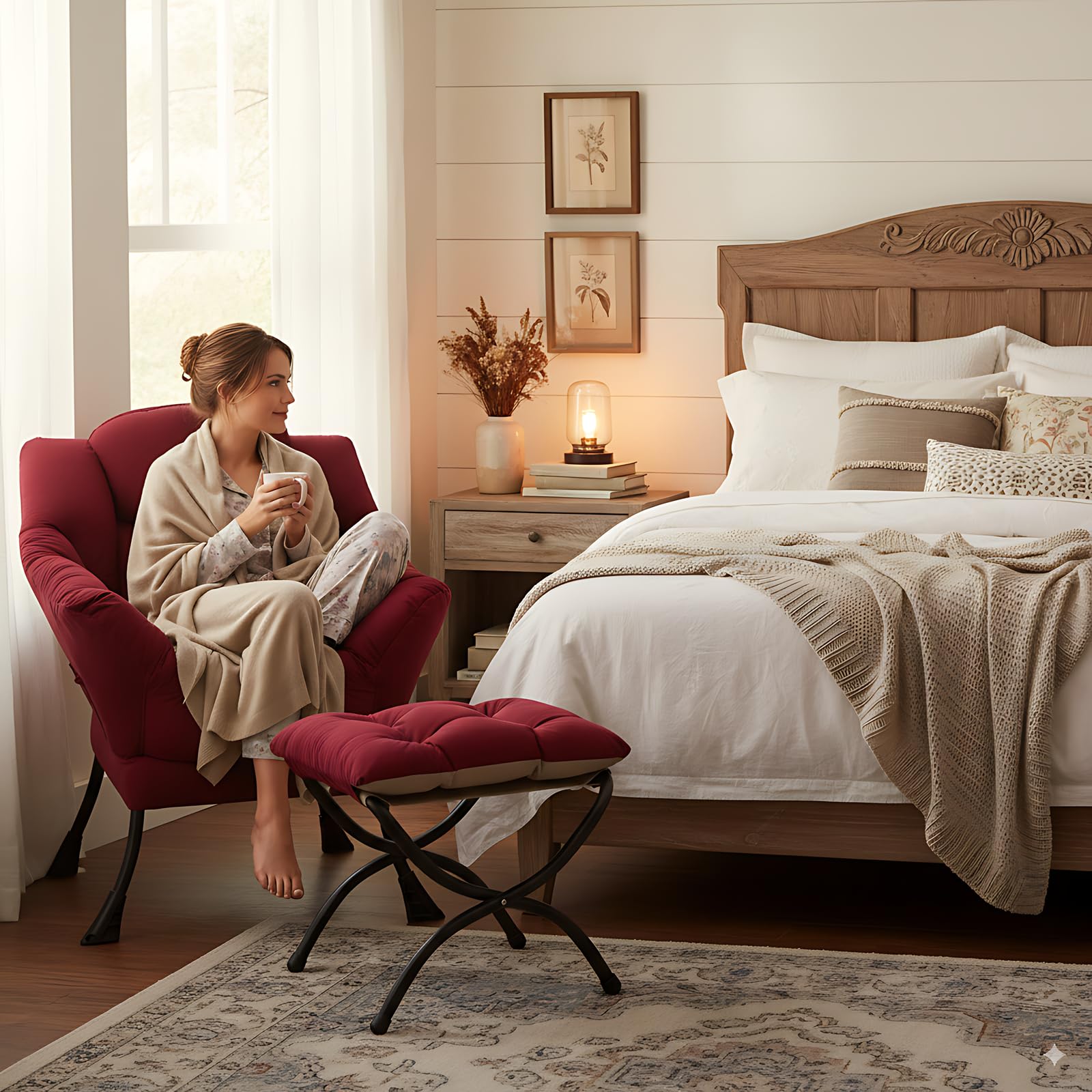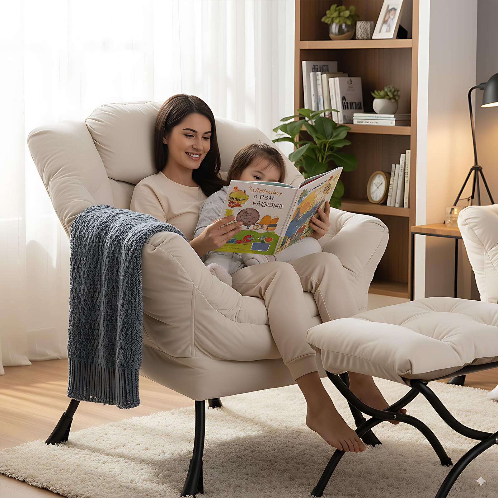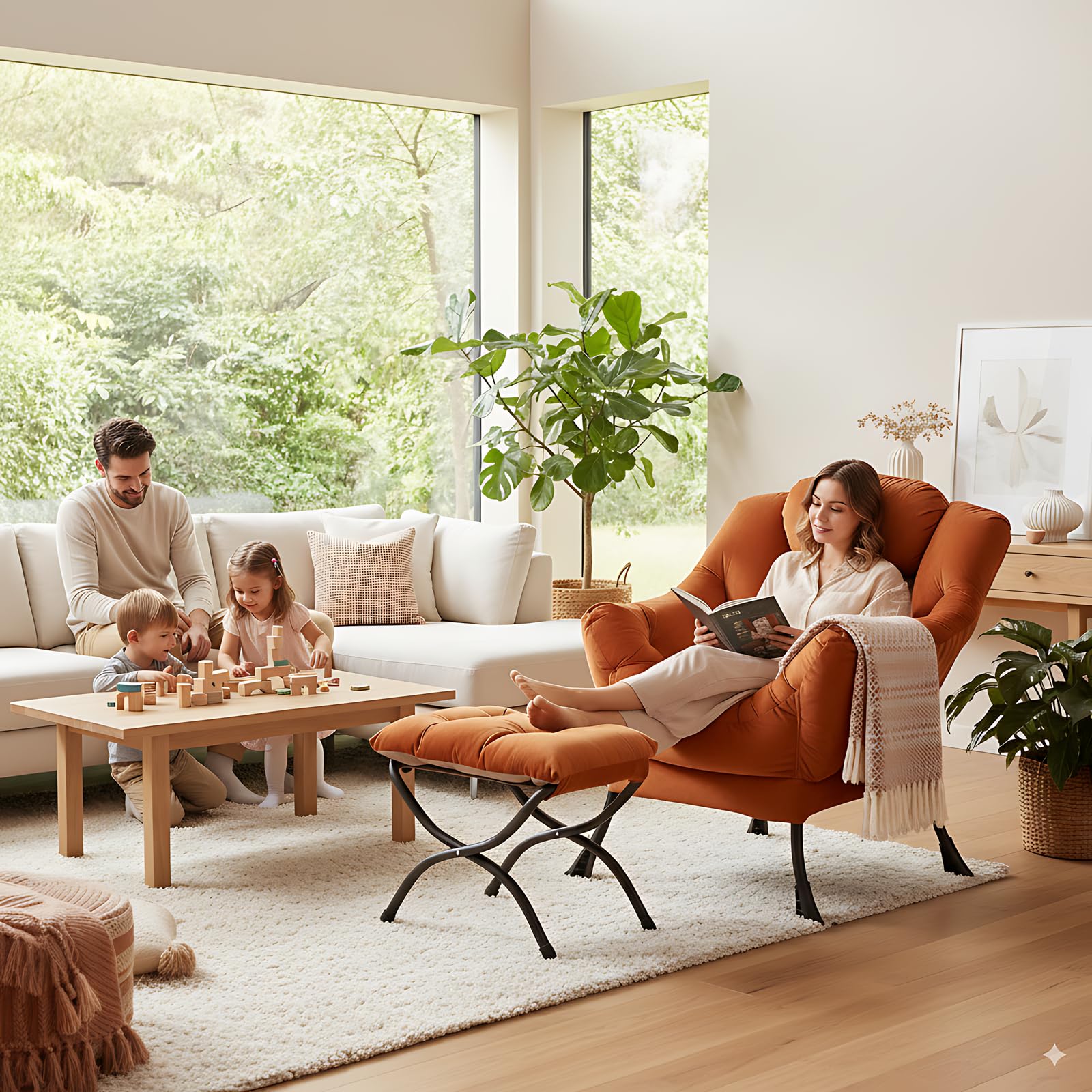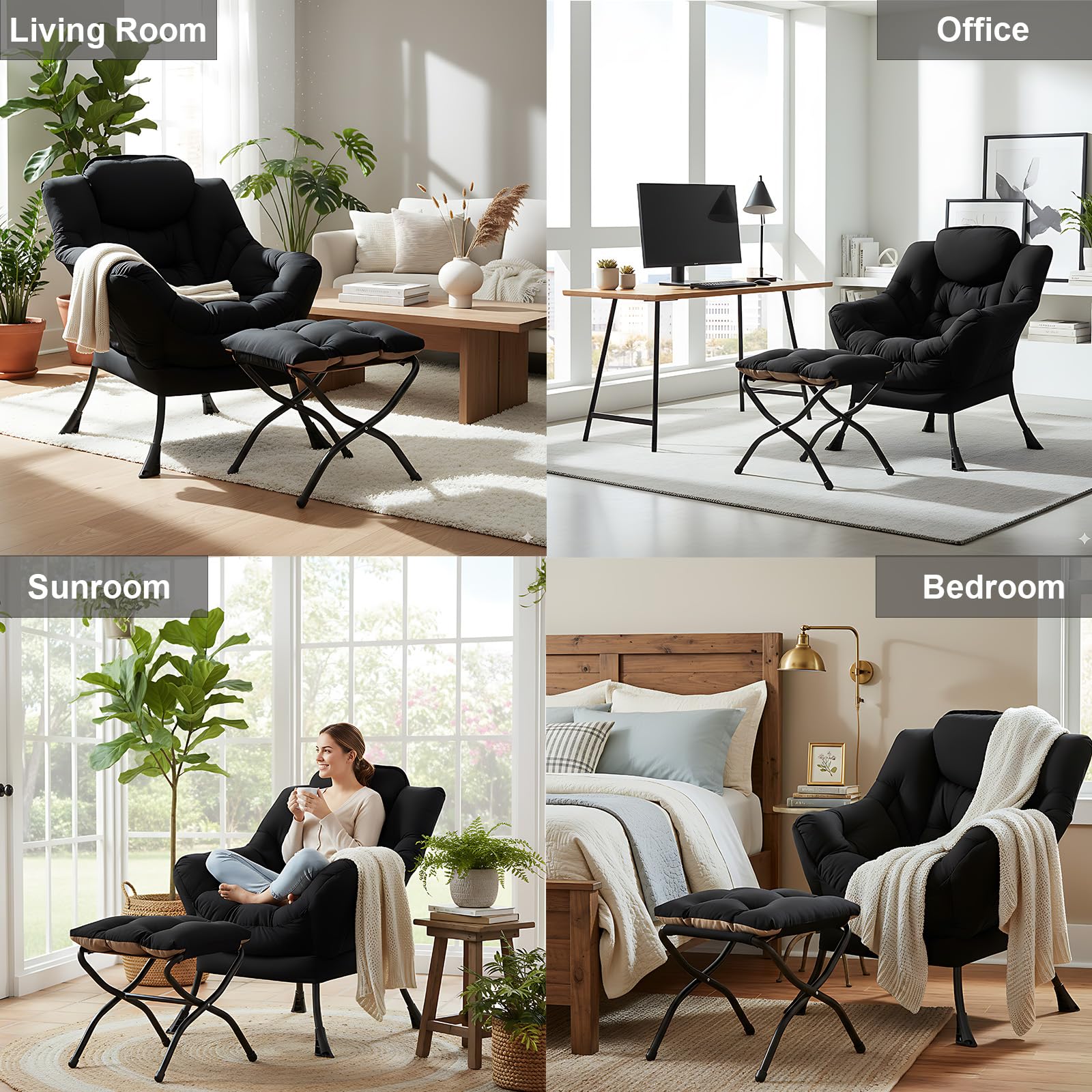 • LAZY CHAIR WITH OTTOMAN: The leisure chair comes with a footstool that can be quickly folded when not in use for easy storage. You can rest on a footstool, place the stool next to the sofa and end table in the living room as a footboard to relax your feet, or even place it in the hallway or doorway and sit on a small stool while changing your shoes.