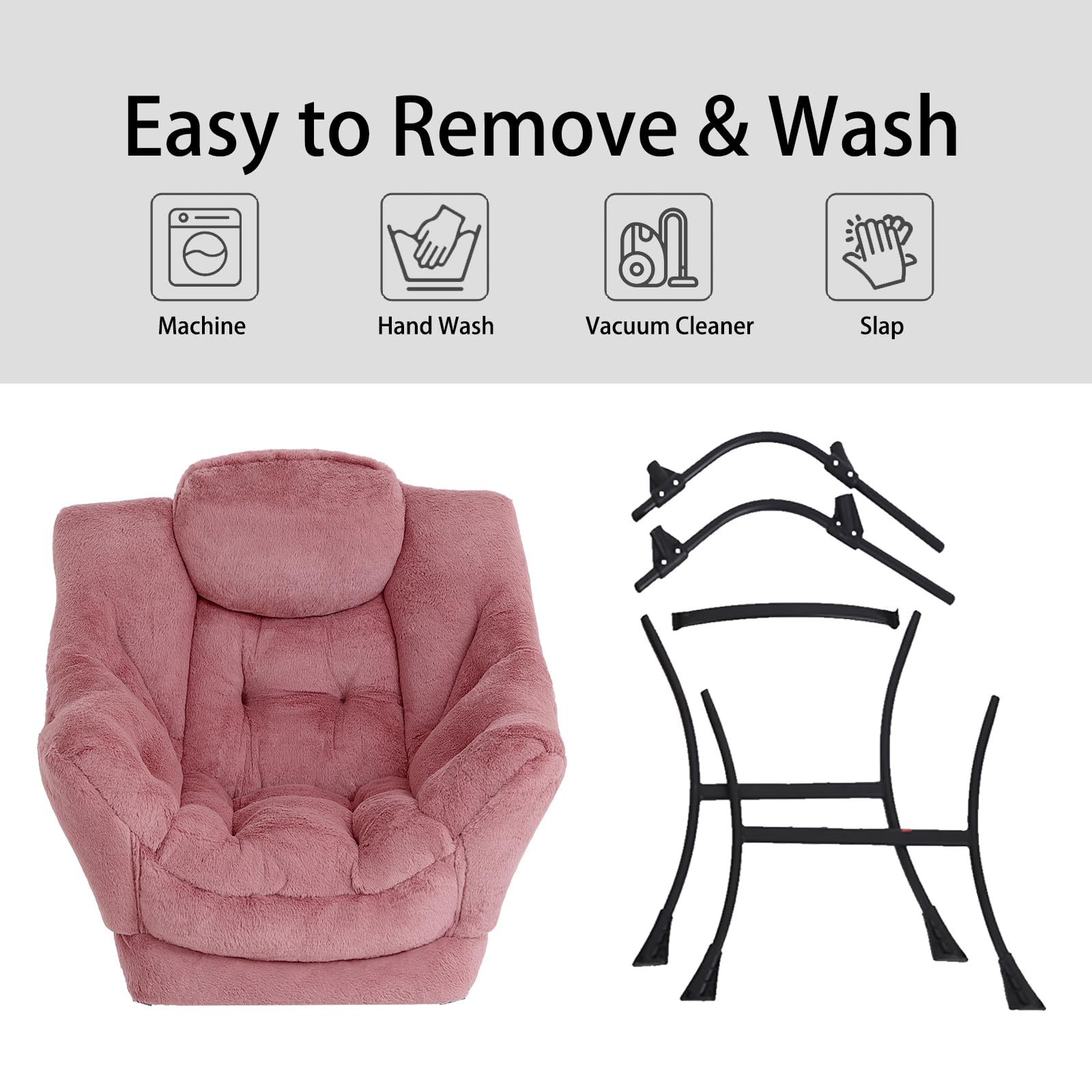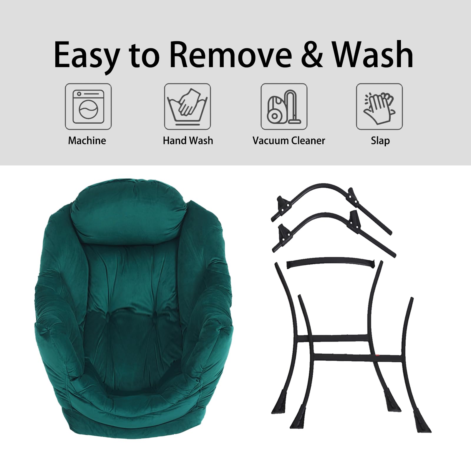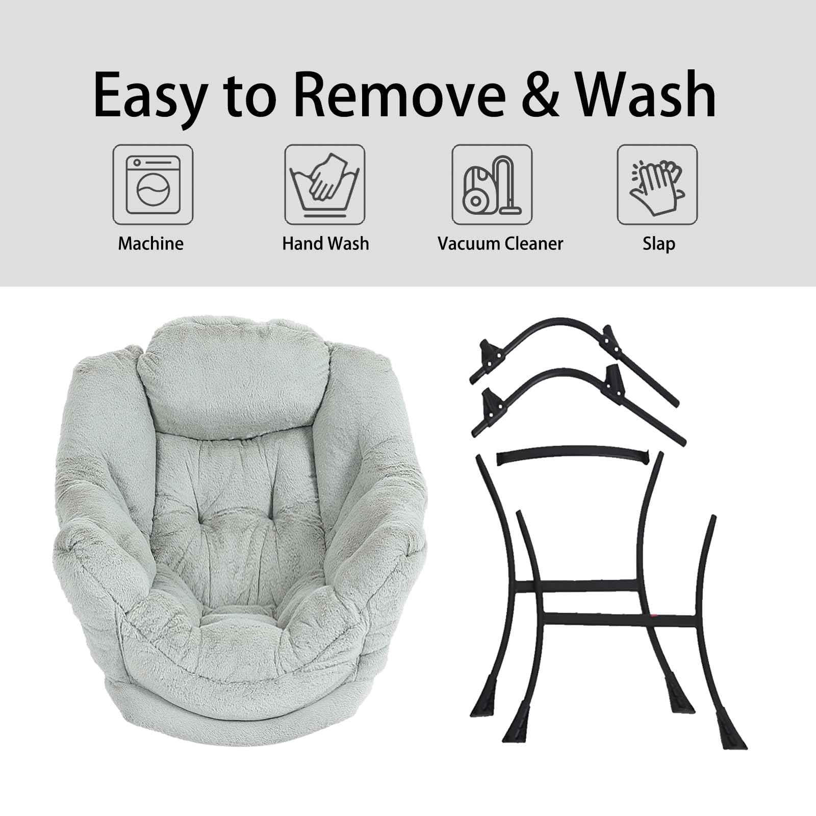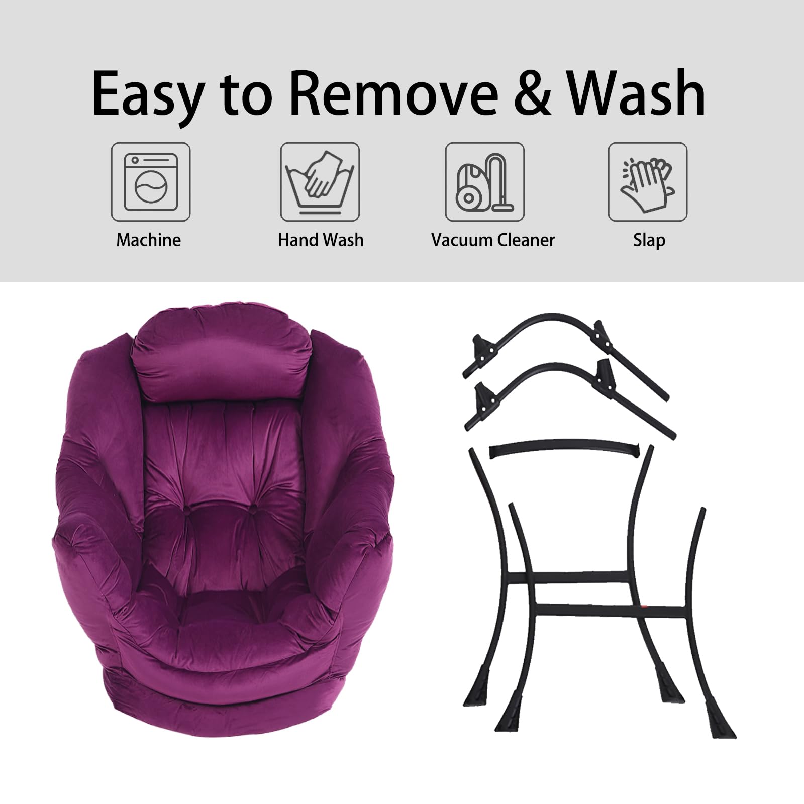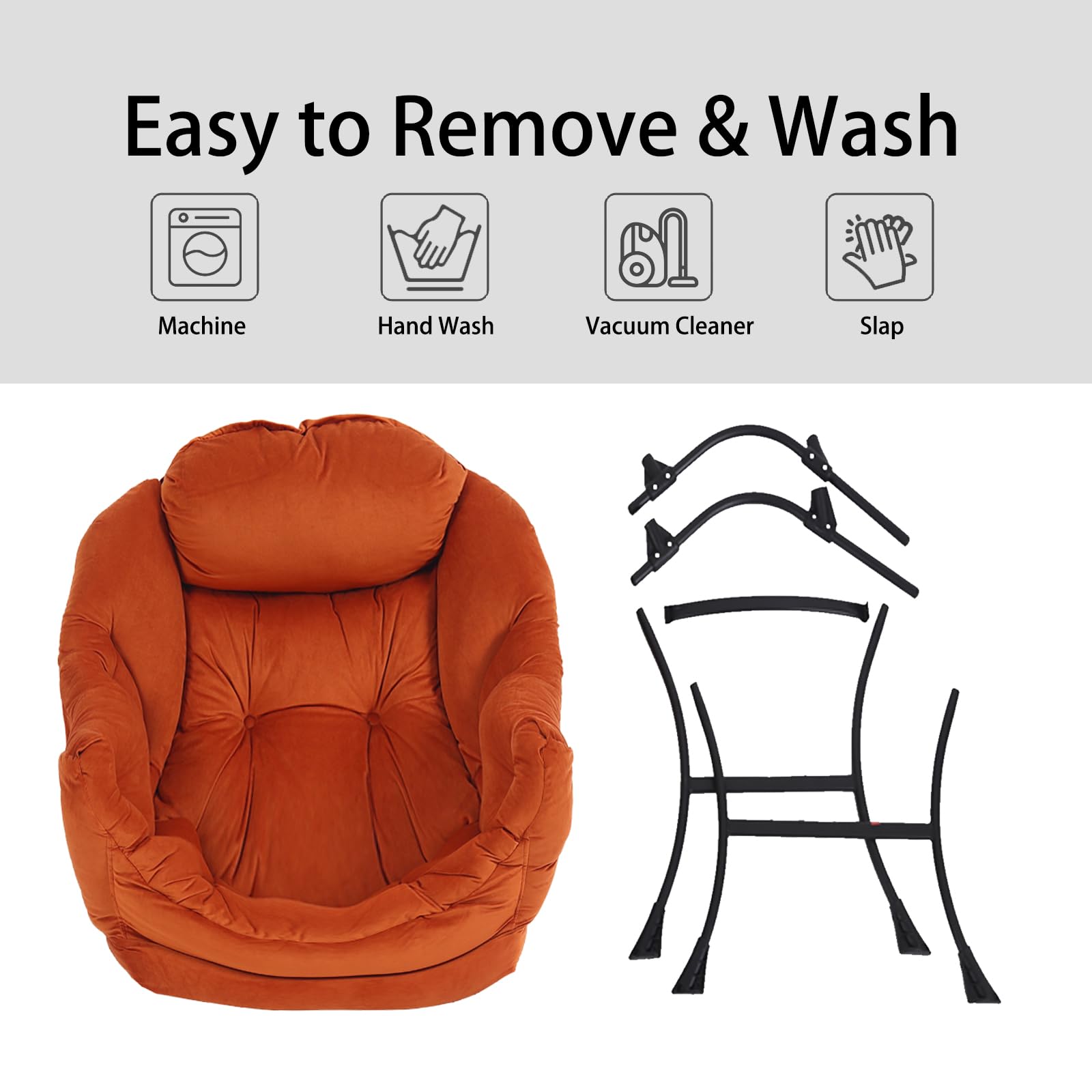 • EASY TO ASSEMBLE: Can be quickly assembled.Follow the detailed instructions for simple assembly, just attach the legs to the frame of the chair, NO additional tools or hardware needed, assembles in less than five minutes! And the straps on the inside of the cover can be tied around the legs of the lazy chair for a better hold