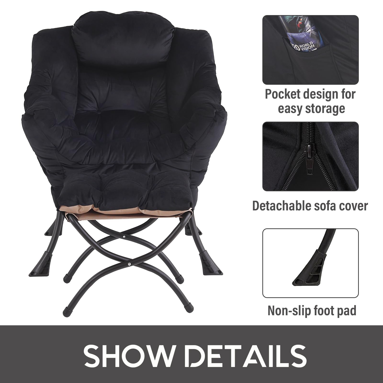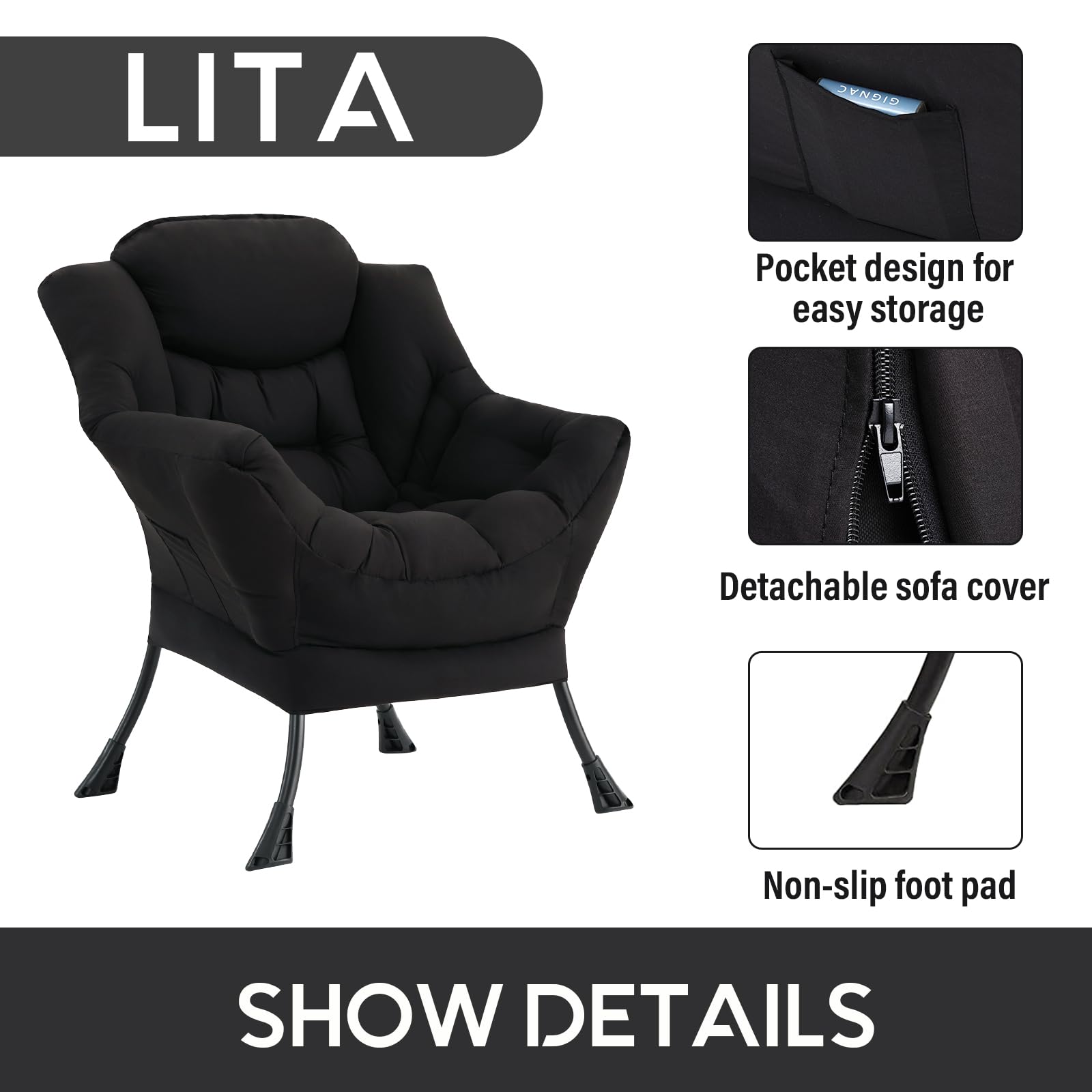 • ERGONOMICALLY DESIGN: This accent sofa chair offers enough support to your neck, back, waist and hip. While a small pocket on the right side of the lazy chair, let you hold mobile phone, books, newspapers at arm's reach, reasonable storage and convenient