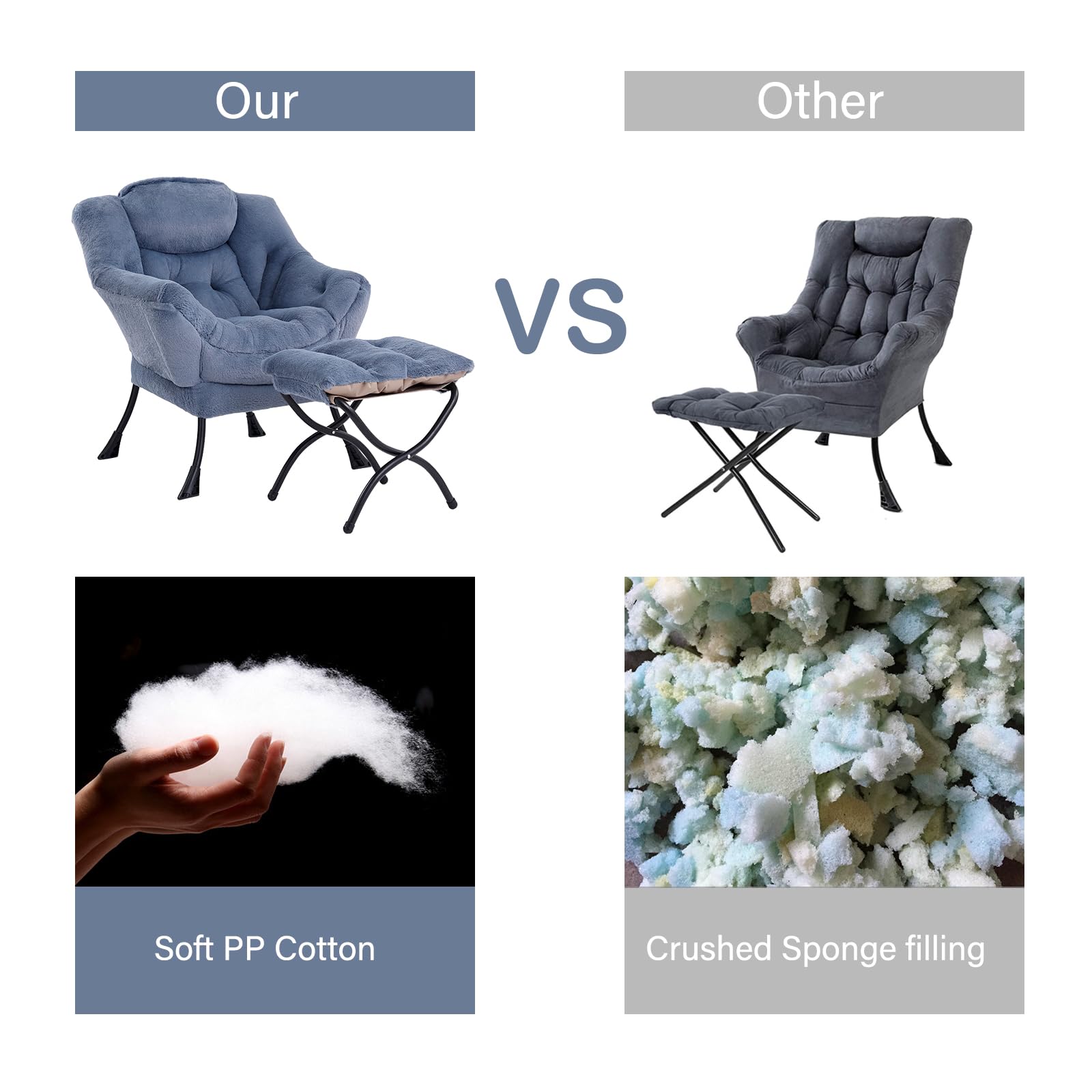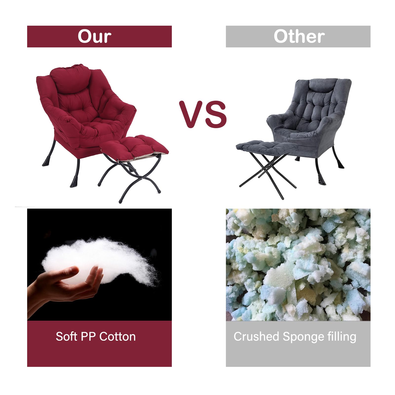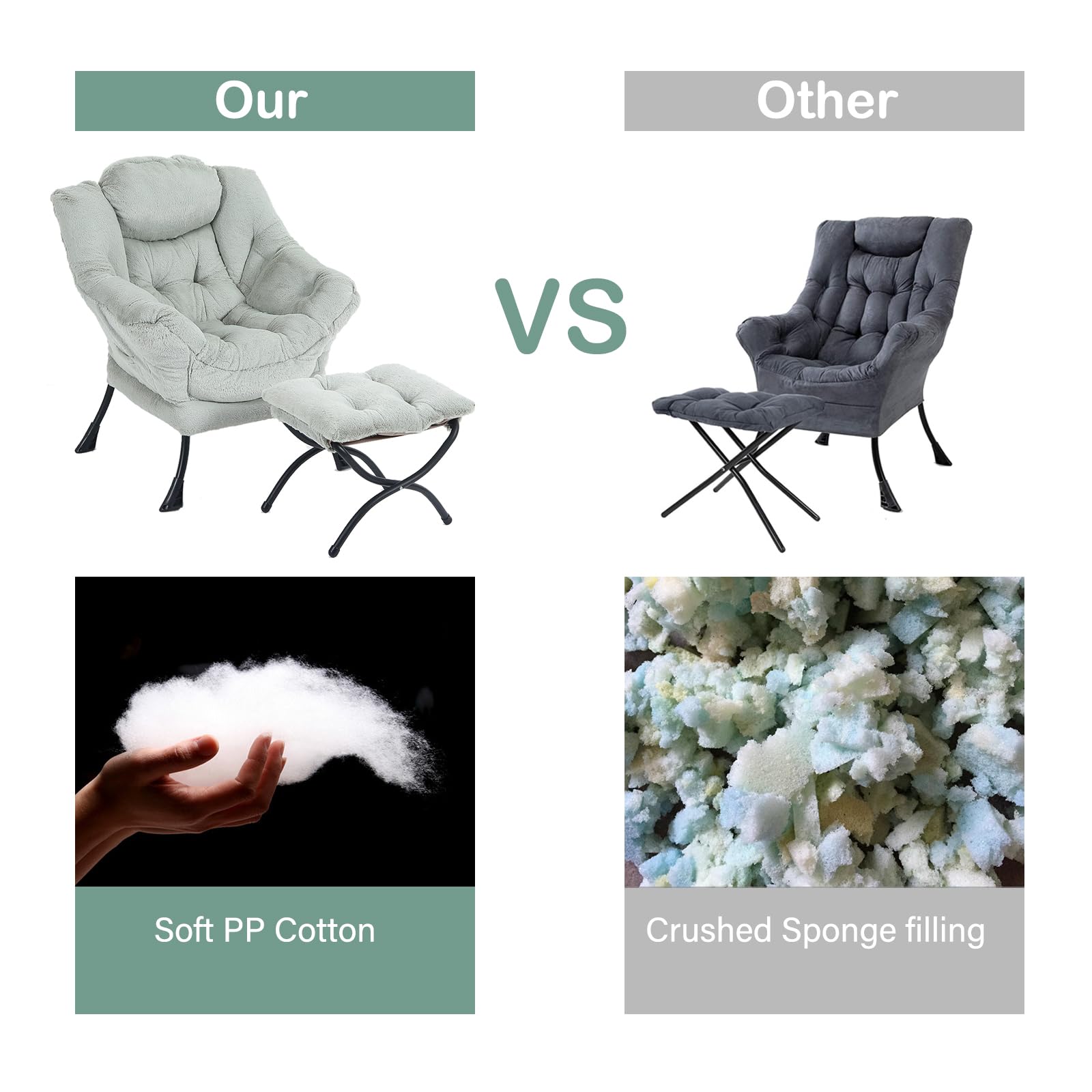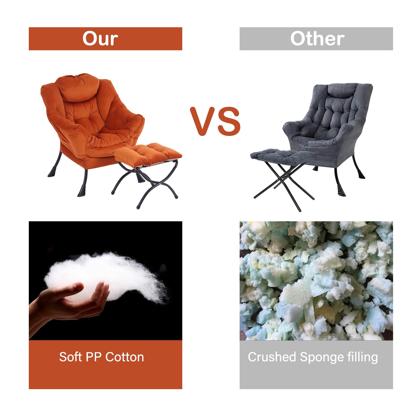 • CARE INSTRUCTION & AFTER-SALE: The lazy chair supports the removal and cleaning of the entire cover, and the cushion on the ottoman can also be removed and cleaned. In addition, we provide 3 years of quality assurance service, if you have any questions about our products, please contact us, we will reply within 24 hours and follow up until the problem is resolved.