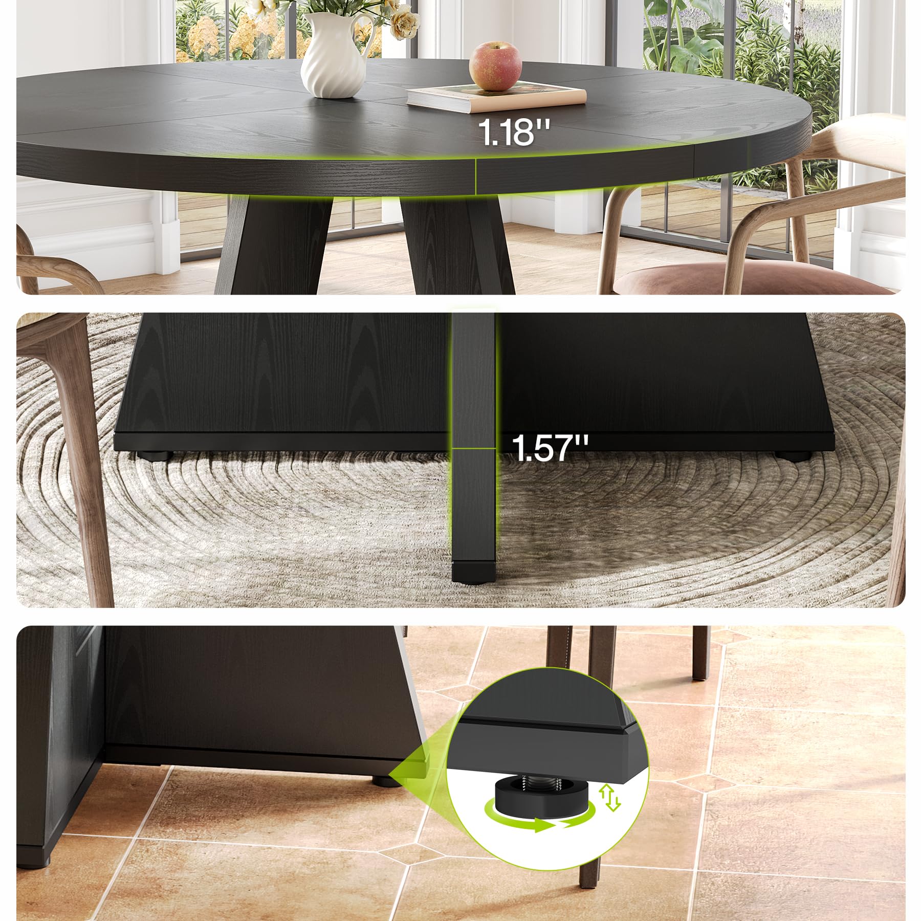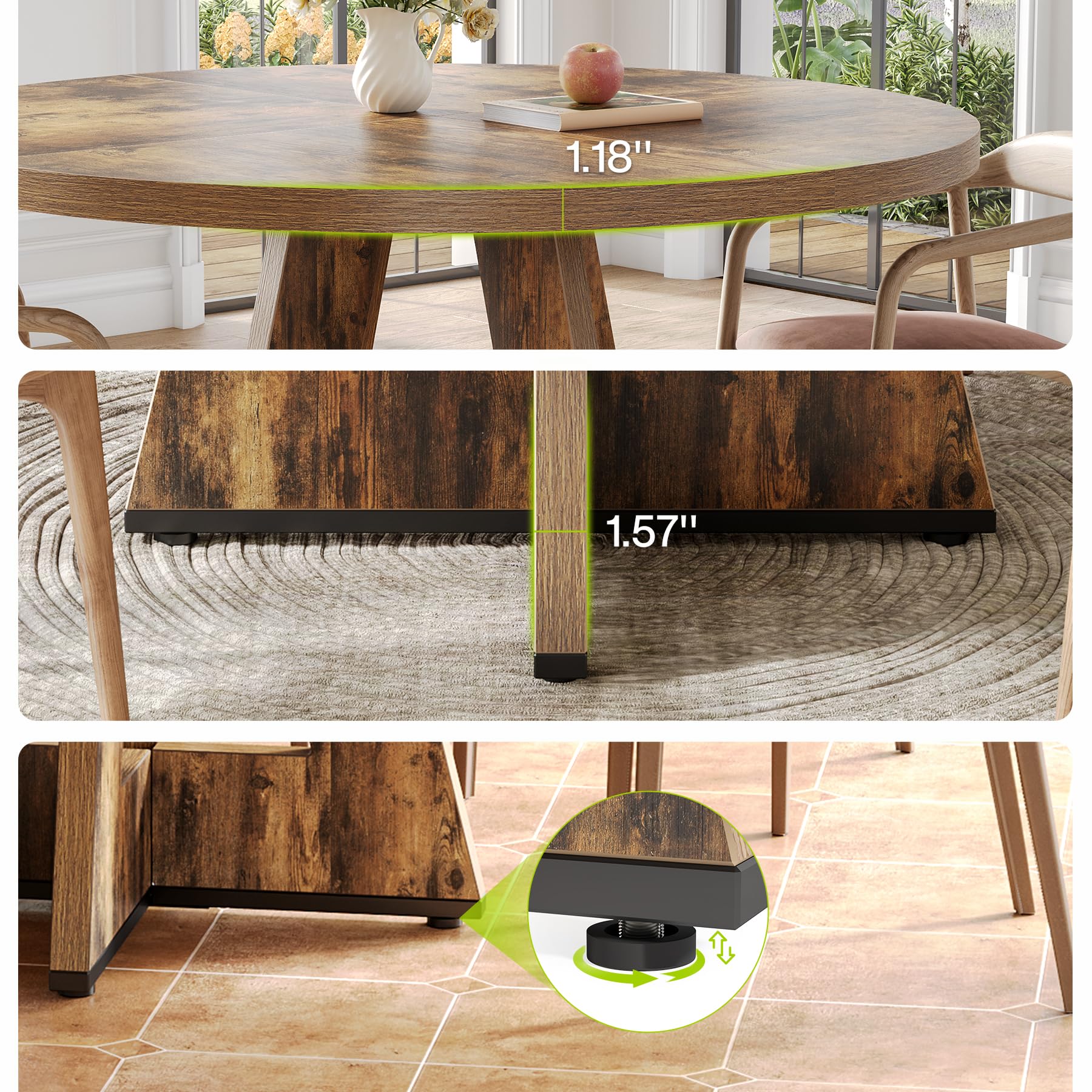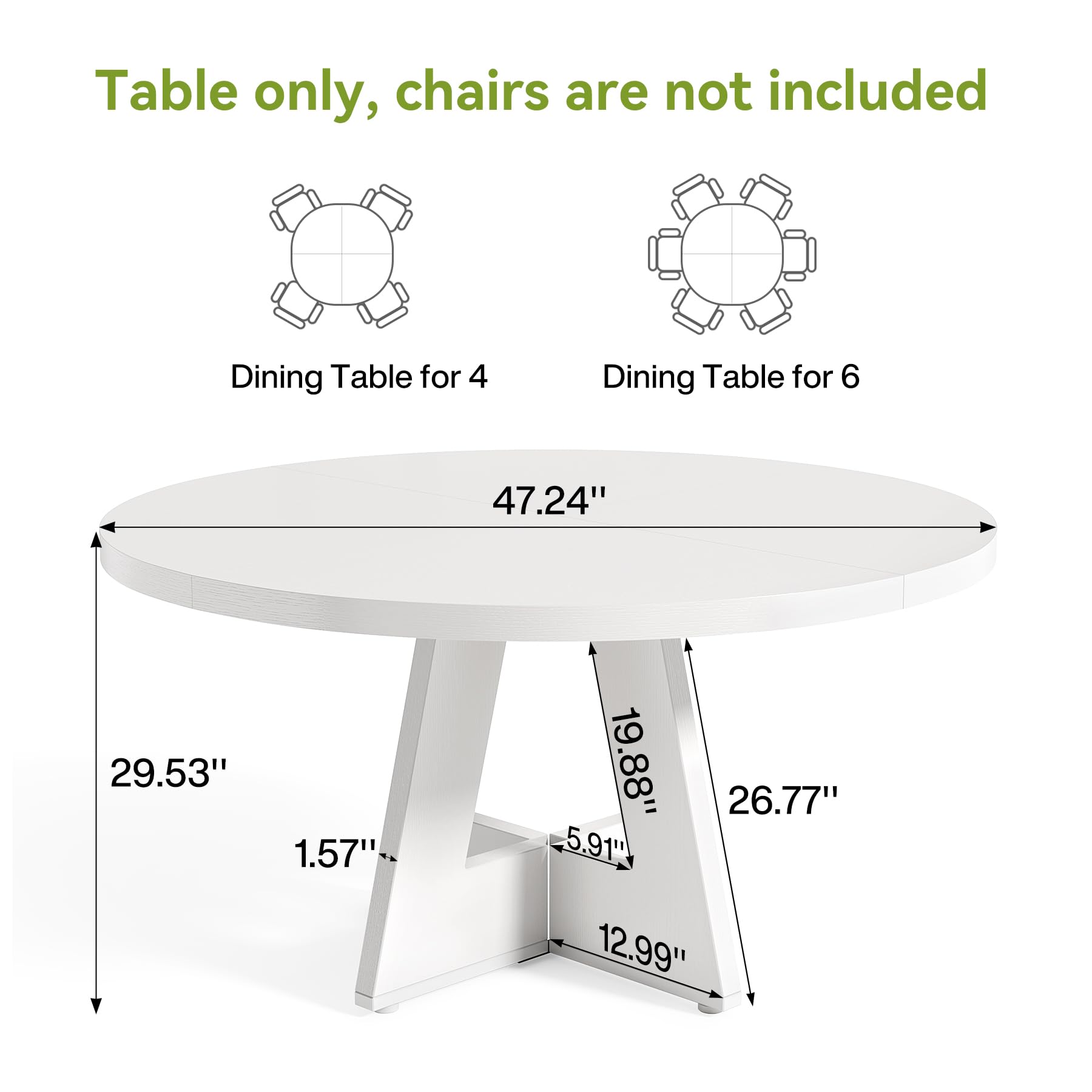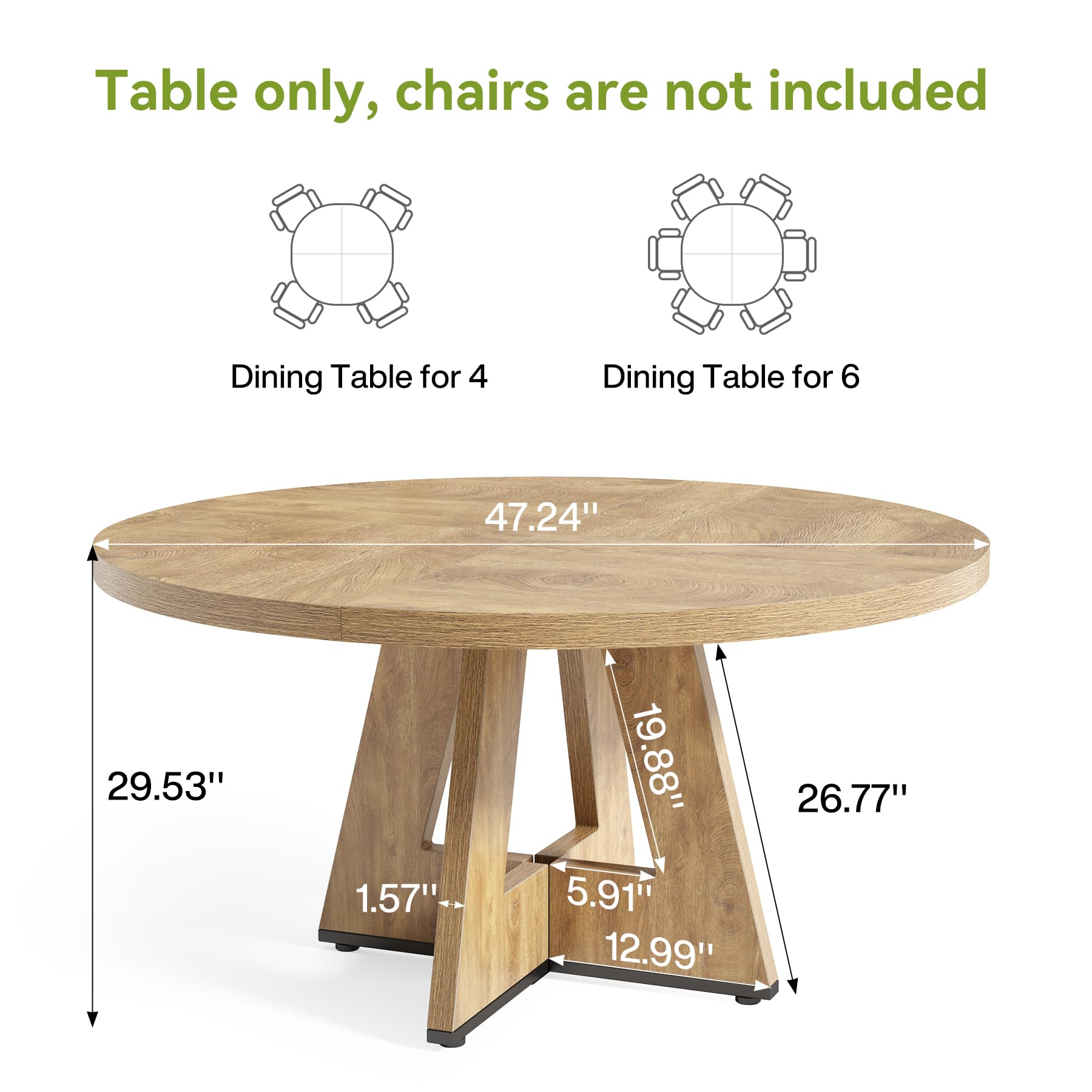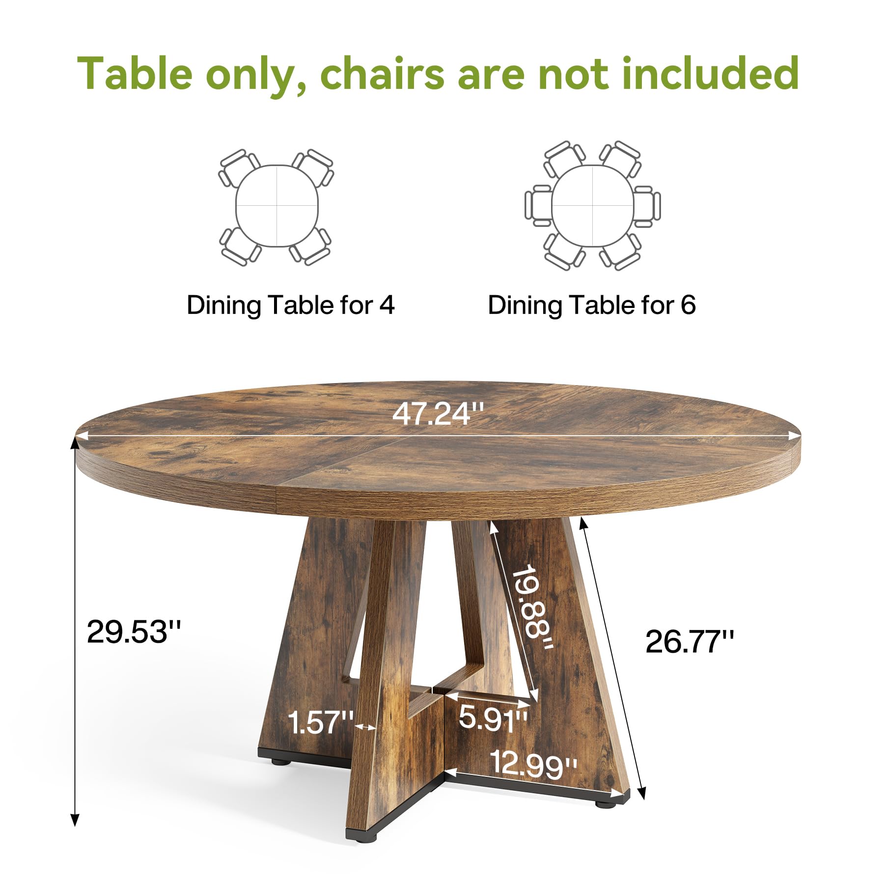 Versatile Design: This 47-inch round dining table effortlessly accommodates 4-6 diners, making it suitable for both family dinners and entertaining guests. Its circular shape promotes conversation and interaction, making every meal a social event.