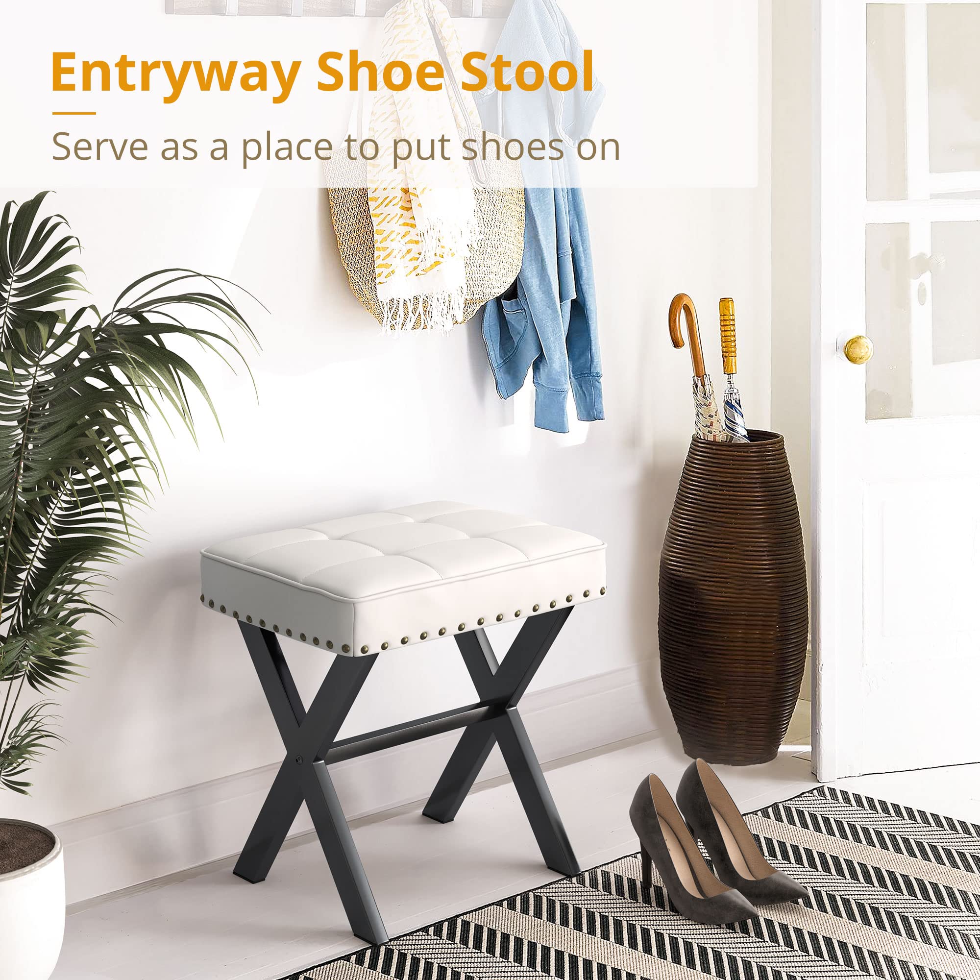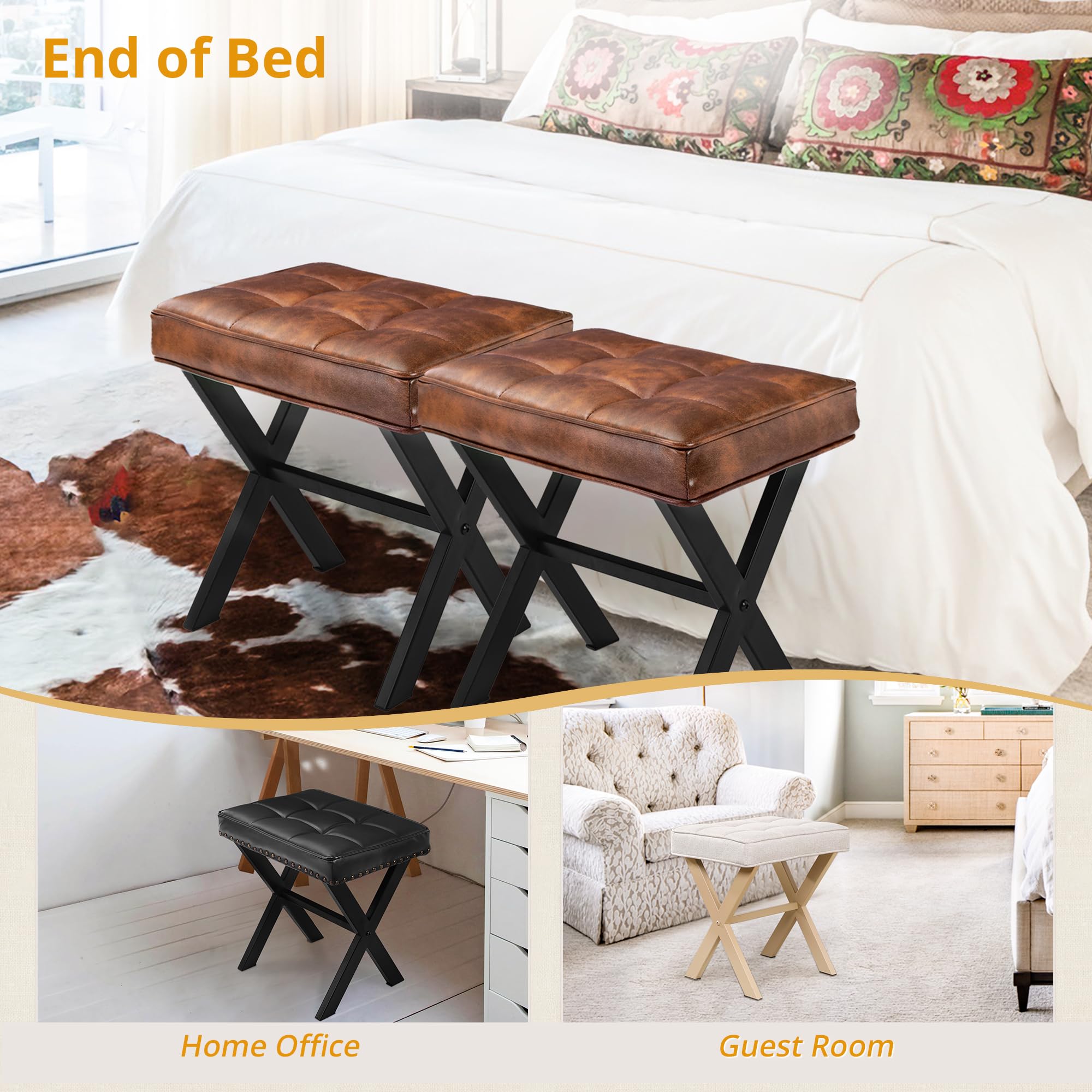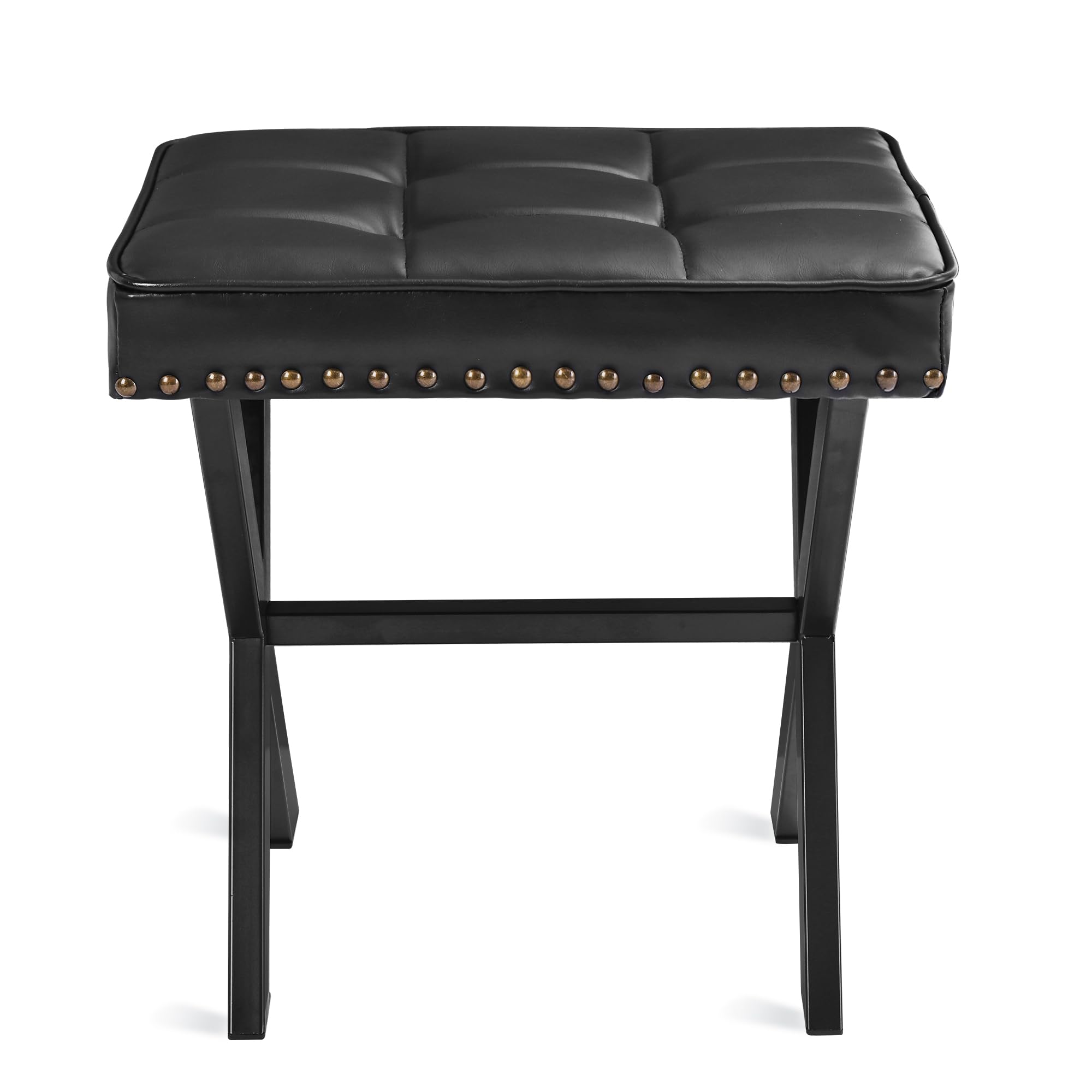 • Details Talk: Tufted design looks more exquisite, padded seating cushion is soft and comfortable, The faux leather covering, rivet trims and metal X leg; Equipped with plastic foot pads, not only non-slip, but also prevent the floor from being scratched