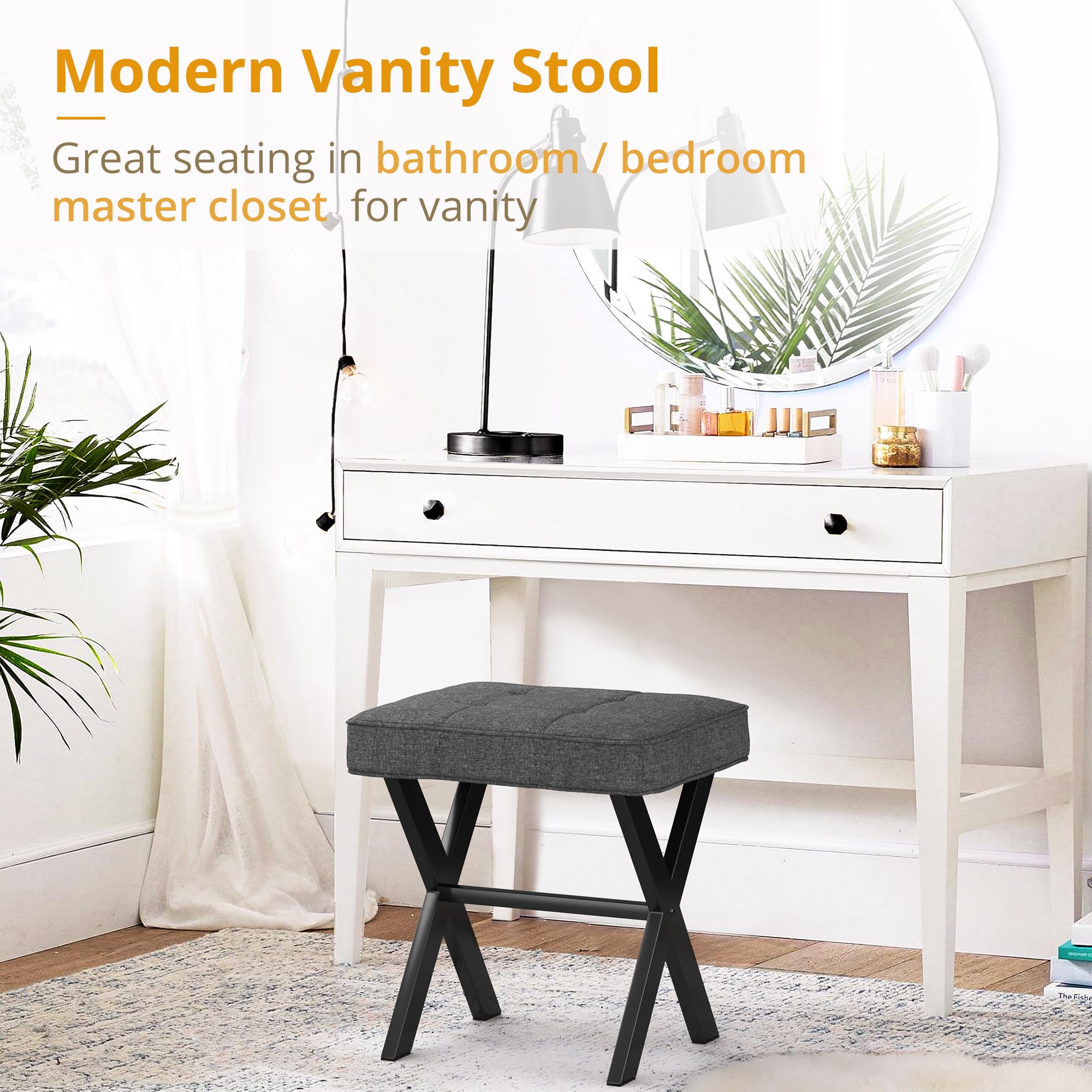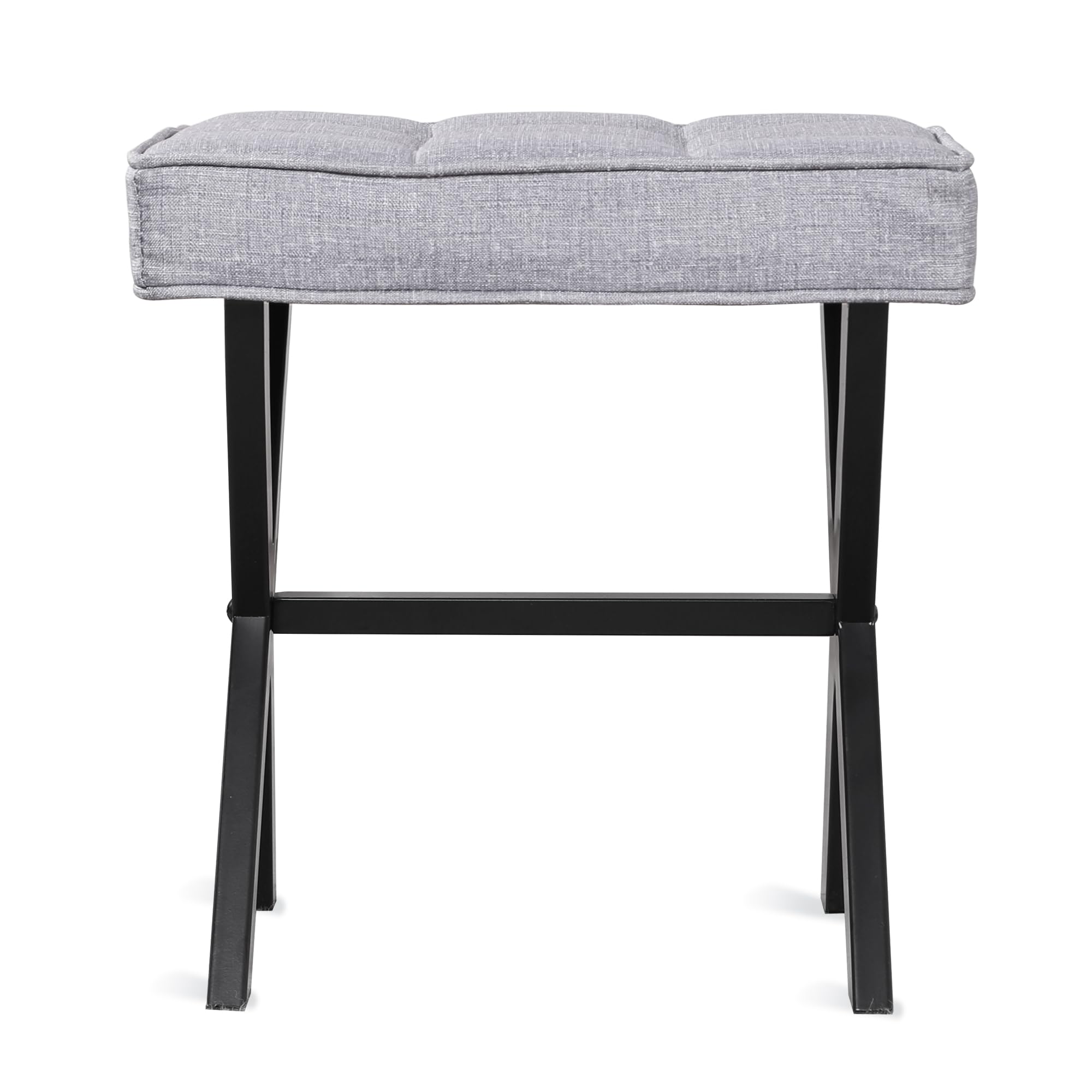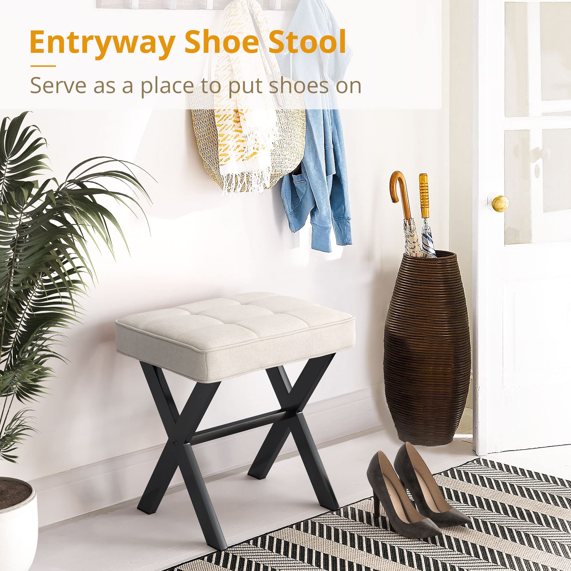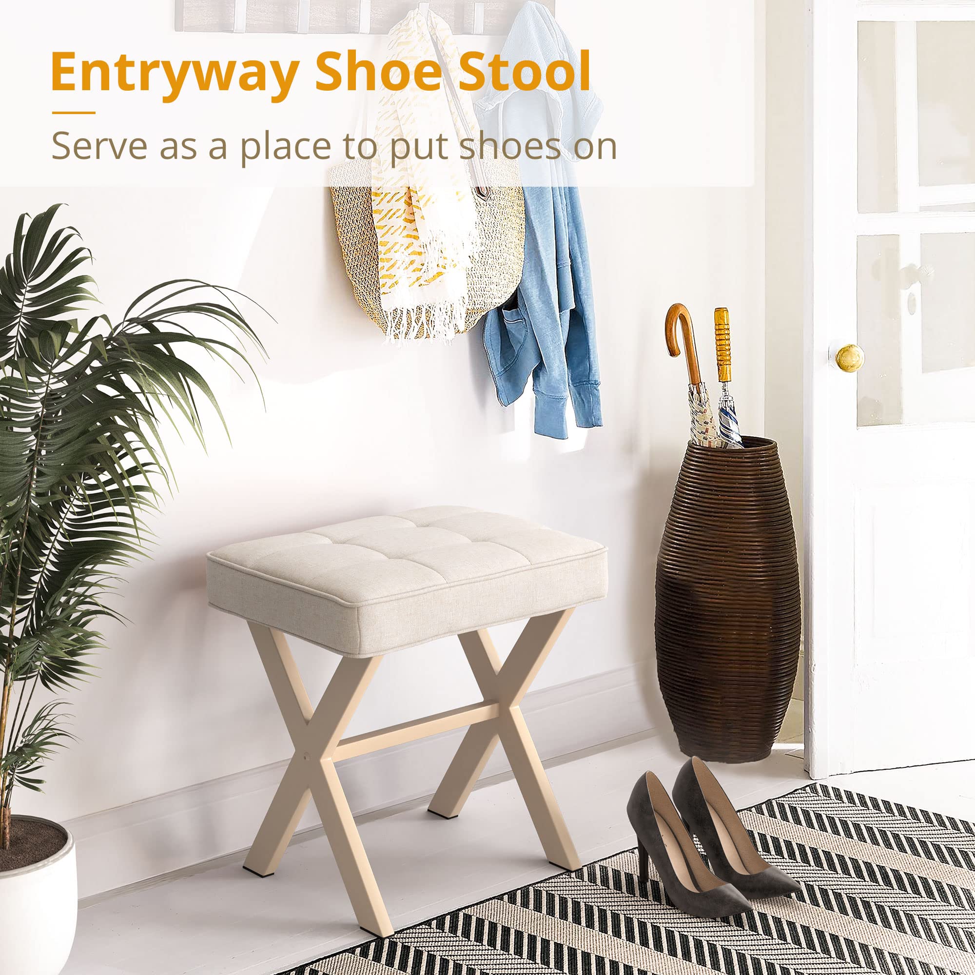 LUE BONA Square Linen Makeup Stool, Metal X Legs, Small Ottoman Stool Chair for Vanity, Modern Padded Seat Foot Rest for Makeup Room, Bathroom