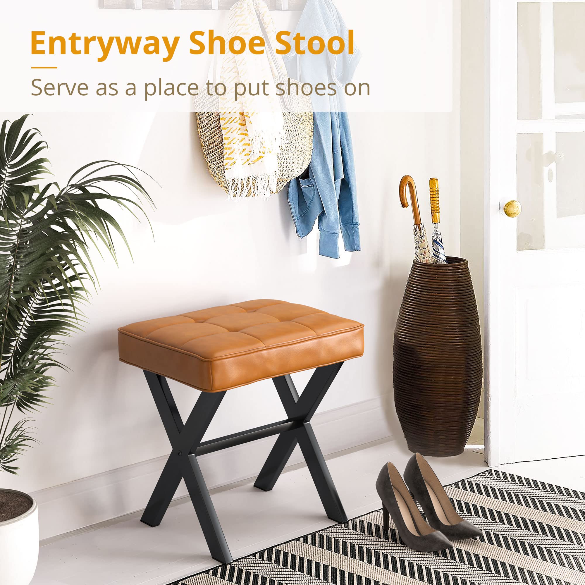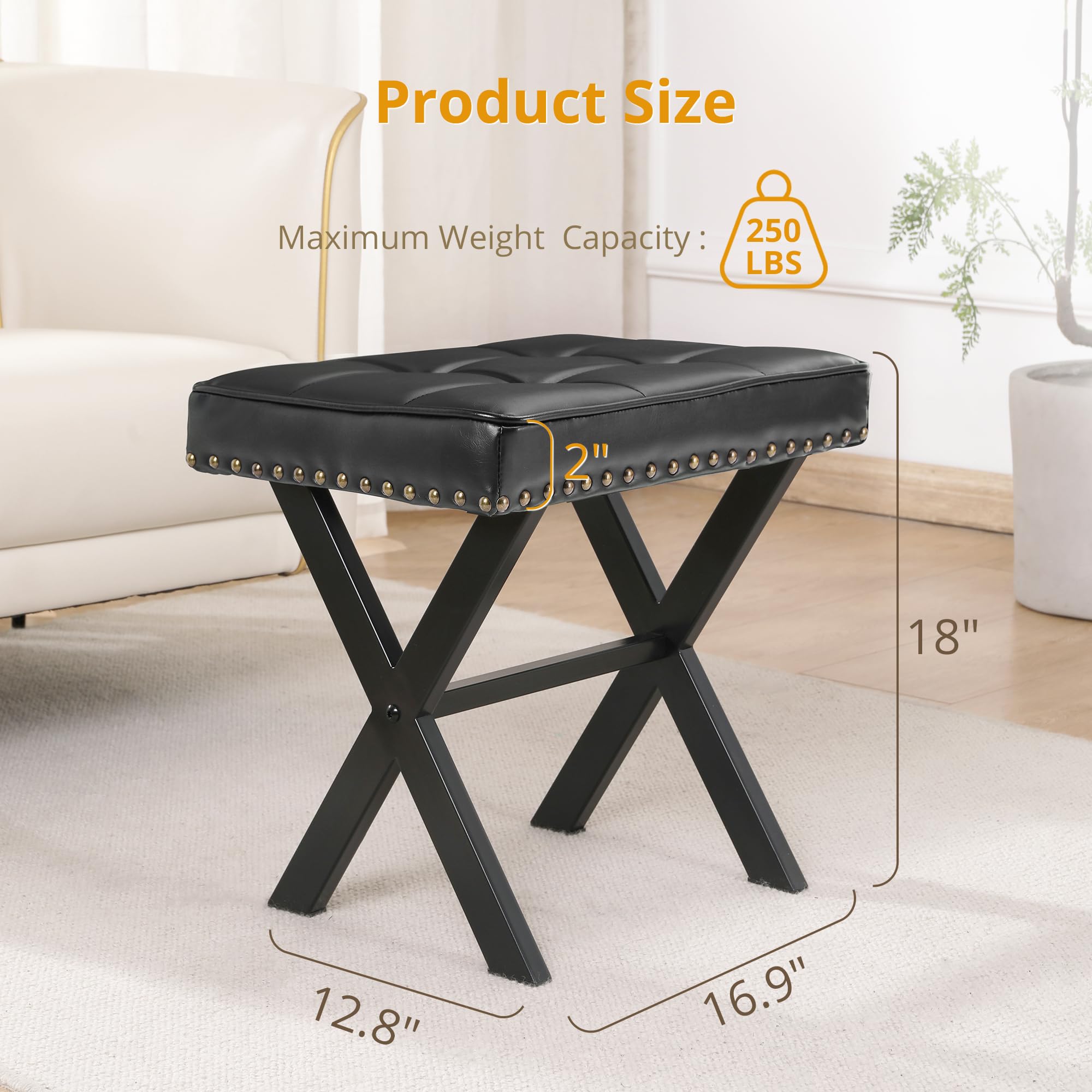 • Sturdy: This foot stool is made of faux leather, sturdy fabric; Wooden frame and metal X base design increases robustness and stability; No matter what you call it a tuffet, pouf, ottoman, or a good modern vanity stool these pieces are small but mighty
