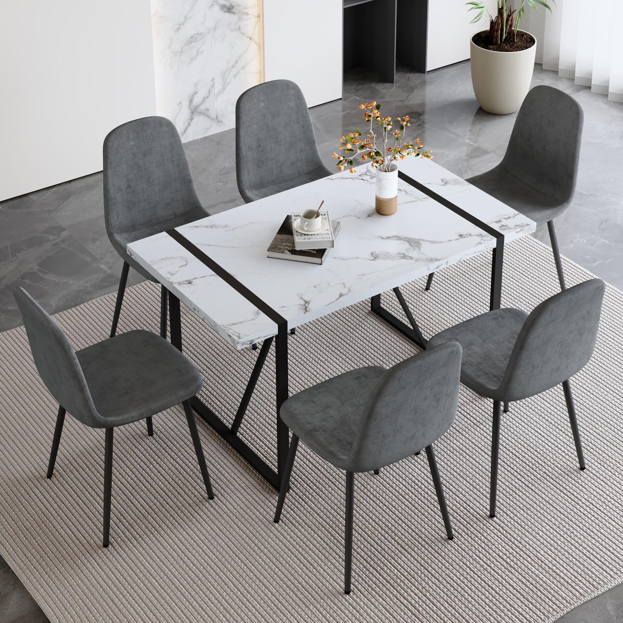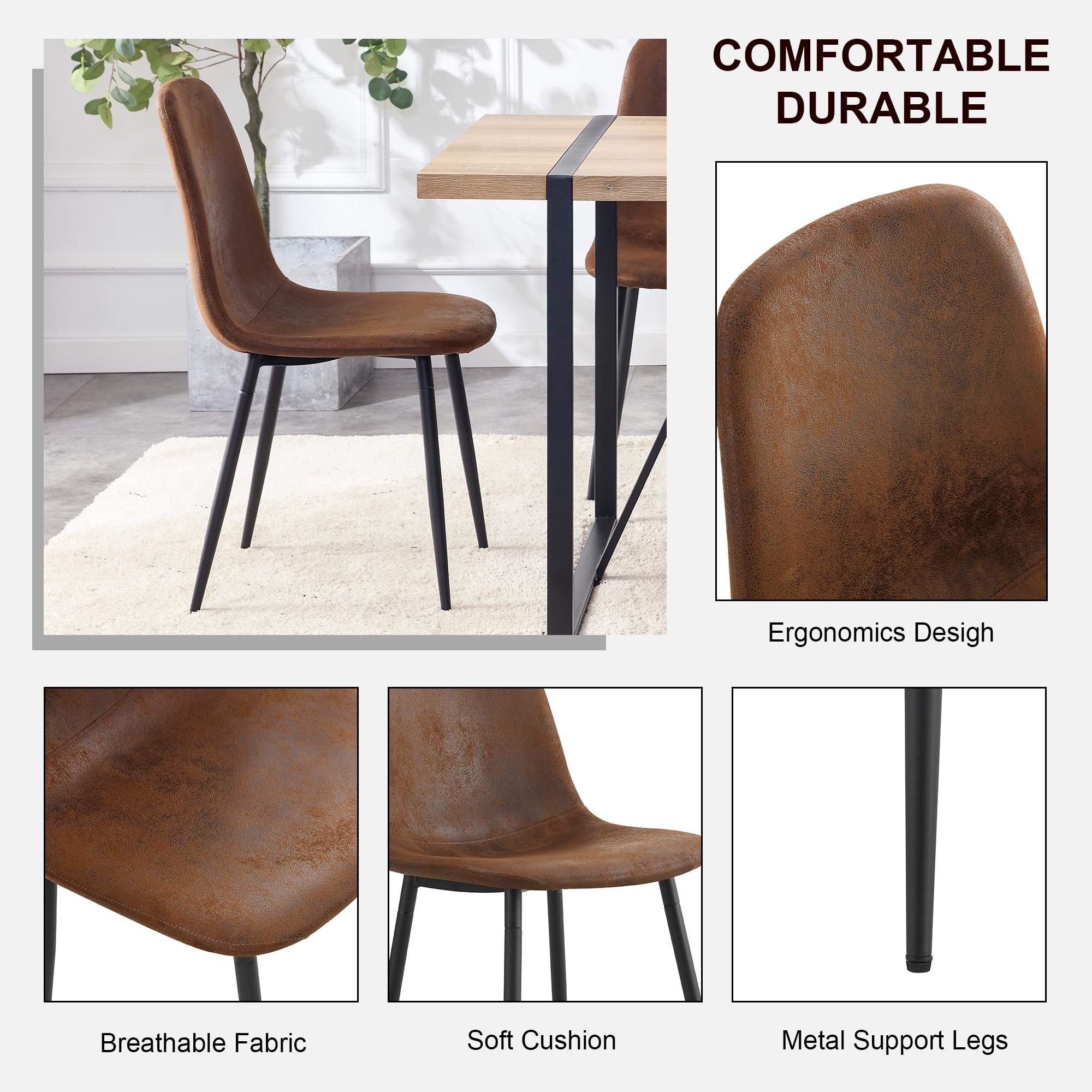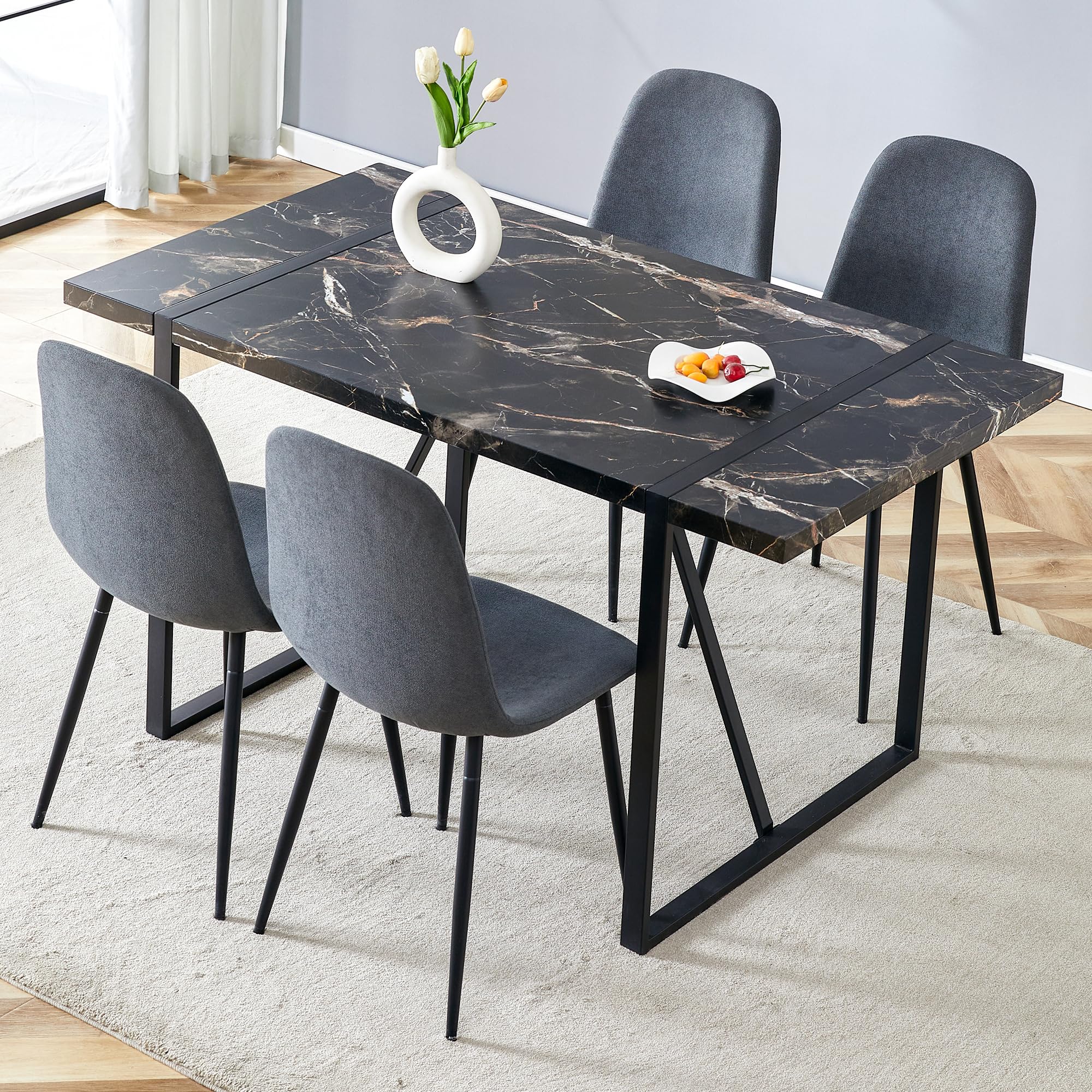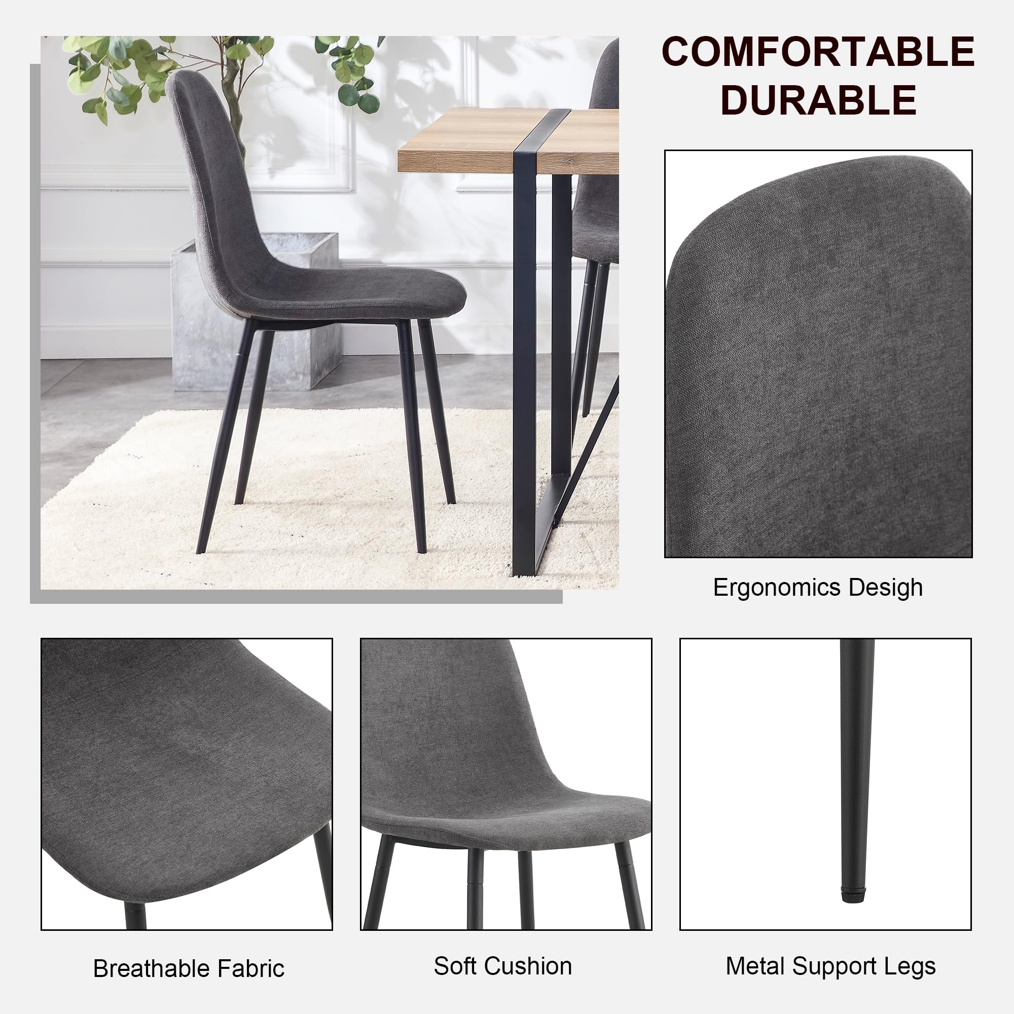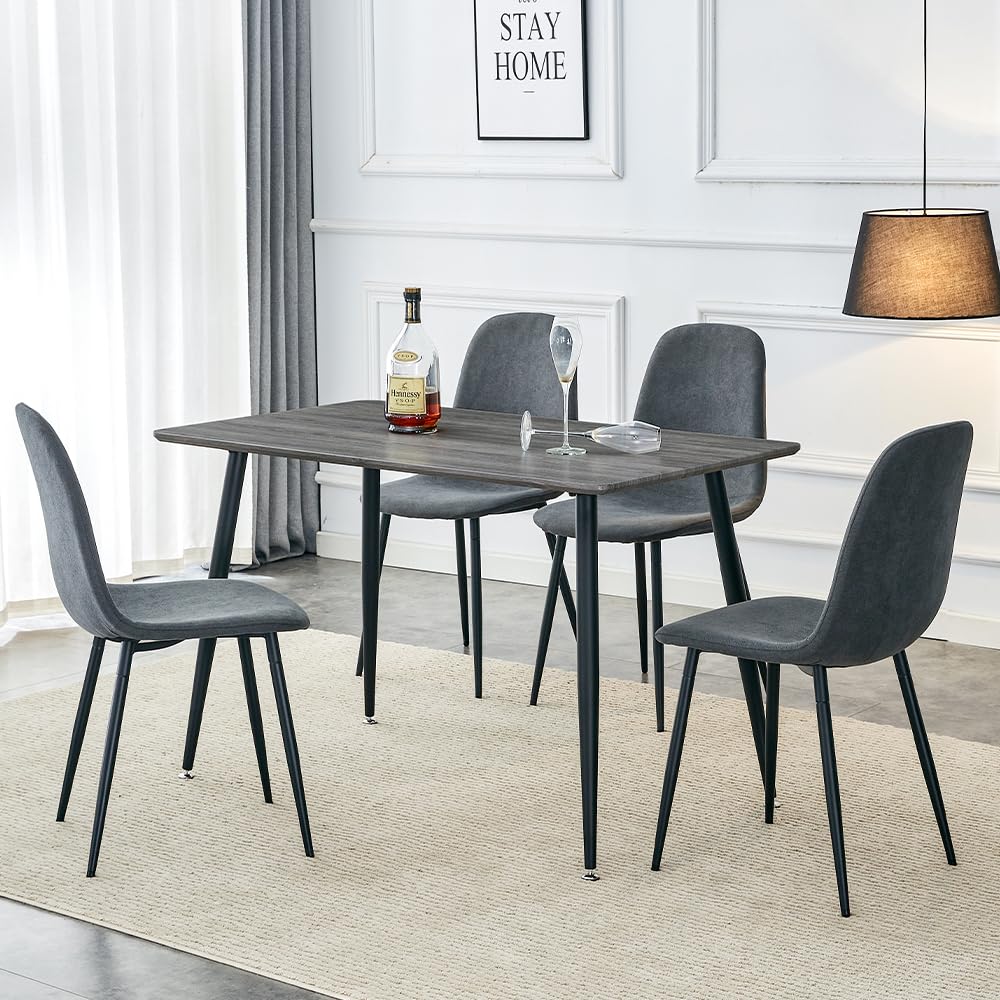Durable & Sturdy Dining Table Set for 4: Our dining table set is designed for durability. The table boasts a 1.5-inch thick high-density board top supported by sleek black-painted metal table legs, ensuring a sturdy and long-lasting lifespan. The chairs, crafted from linen fabric, offer perfect ergonomic support, making your dining experiences comfortable and enjoyable