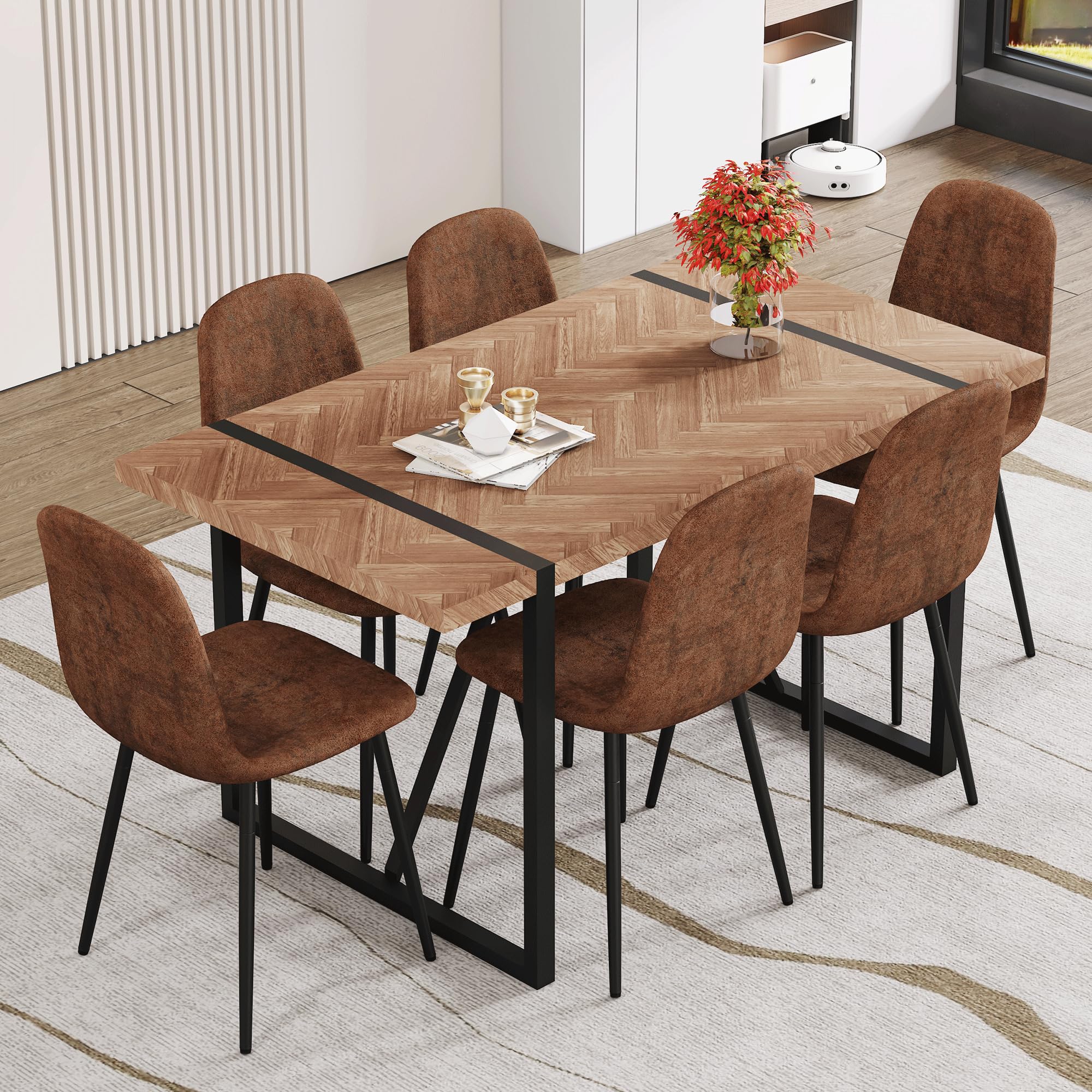 MUUOKY Dining Table Set for 4, Modern 55'' Wood Dinette Table Set for 4 with Fabric Dining Chairs,Table and Chairs Set of 4,Ideal for Kitchen Dining Room