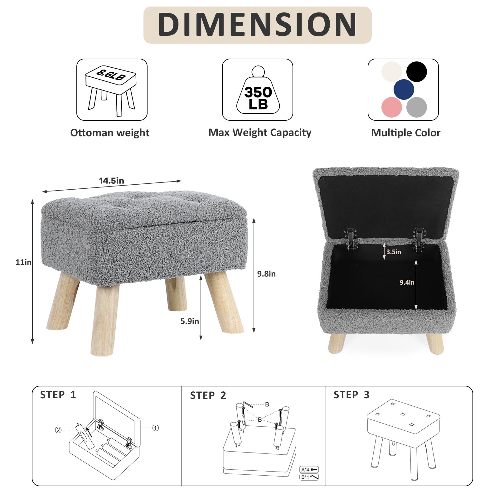 OGEMXU Storage Ottoman, Small Foot Stool Ottoman with Storage, Boucle Teddy Velvet Foot Rest with Padded Seat, Sturdy Wood Legs Stool for Living Room, Bedroom, Couch, Enterway (Cream)