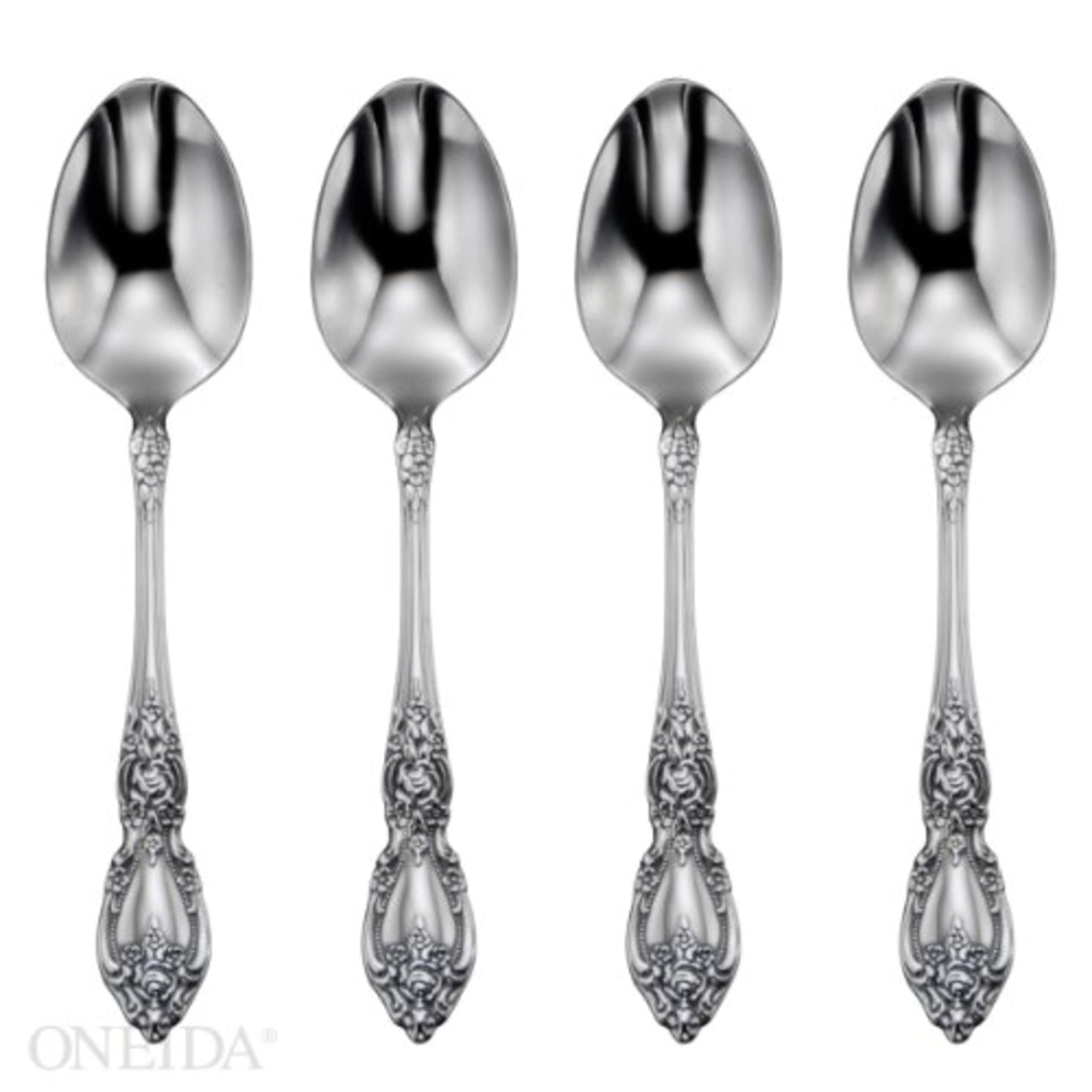WHY IT’S SPECIAL: Oneida's Wordsworth flatware celebrates intricate detail with its flower-adorned handles and high-end finish that beautifully catches the light. This design embodies elegance and opulence, inviting you to indulge in the richness of a bygone era.