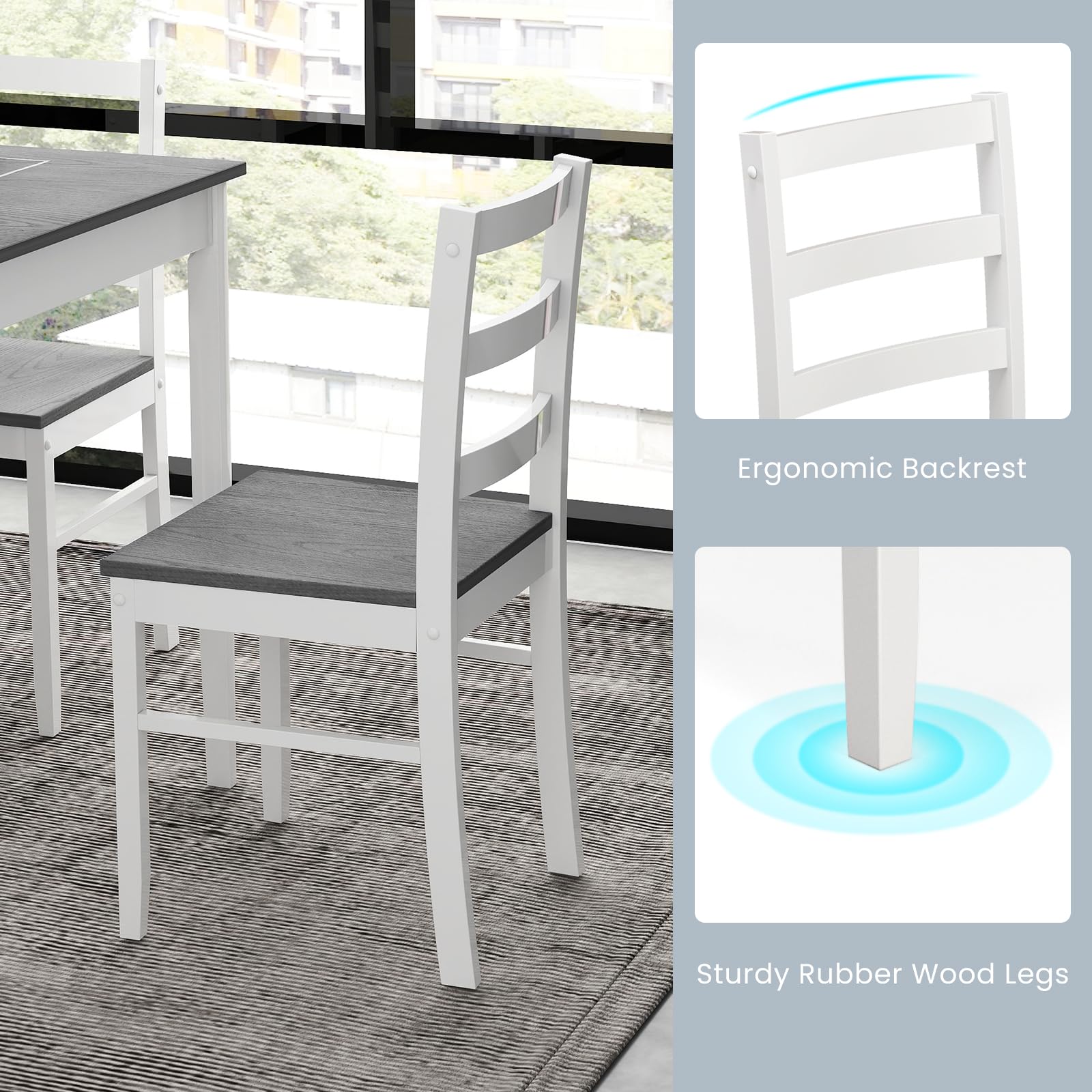 [Sturdy and Durable] -- Crafted from high-quality solid wood and supported by sturdy rubber wood legs, our farmhouse kitchen table chairs set of 4 ensures long-lasting durability, making it perfect for daily use in your home or restaurant.