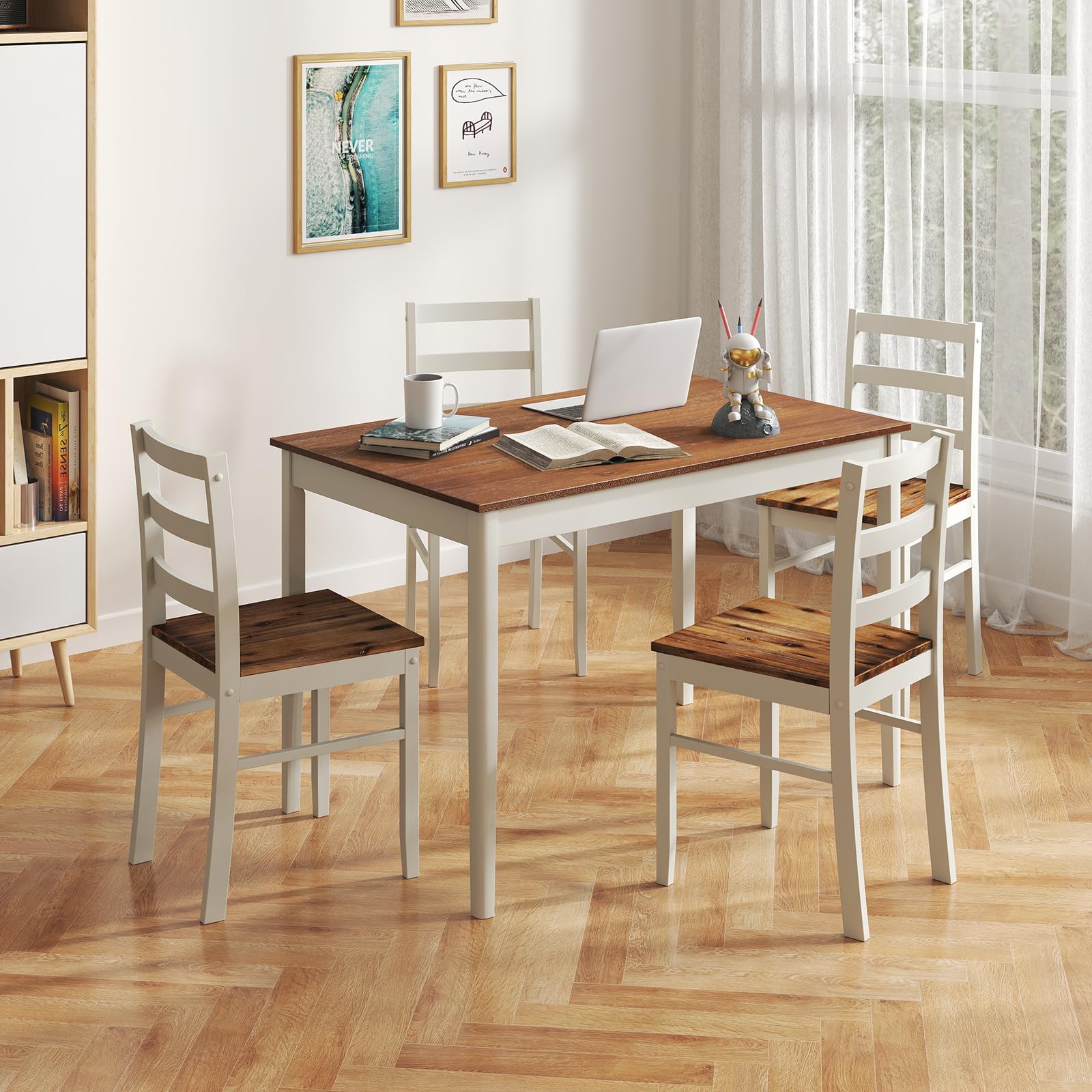[Space-Saving]: With a compact design, this kitchen table chairs set of 4 is ideal for small spaces, allowing you to maximize your kitchen or dining room area.