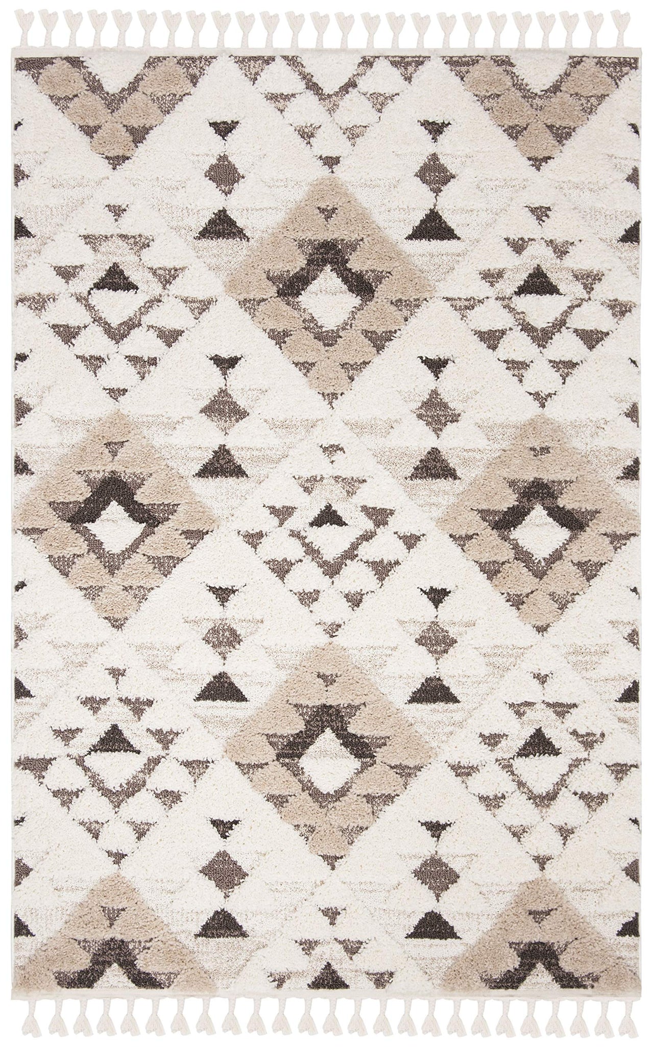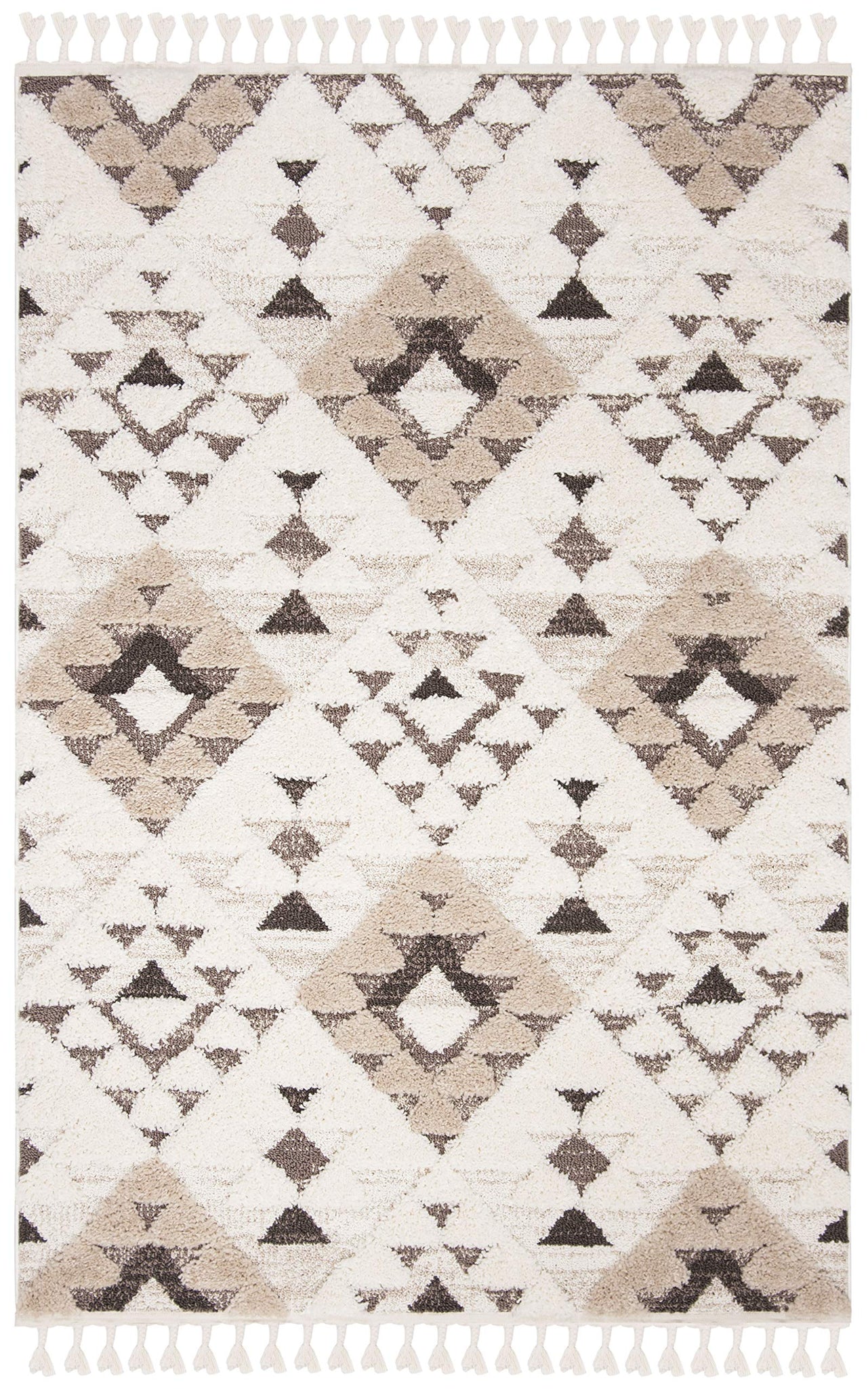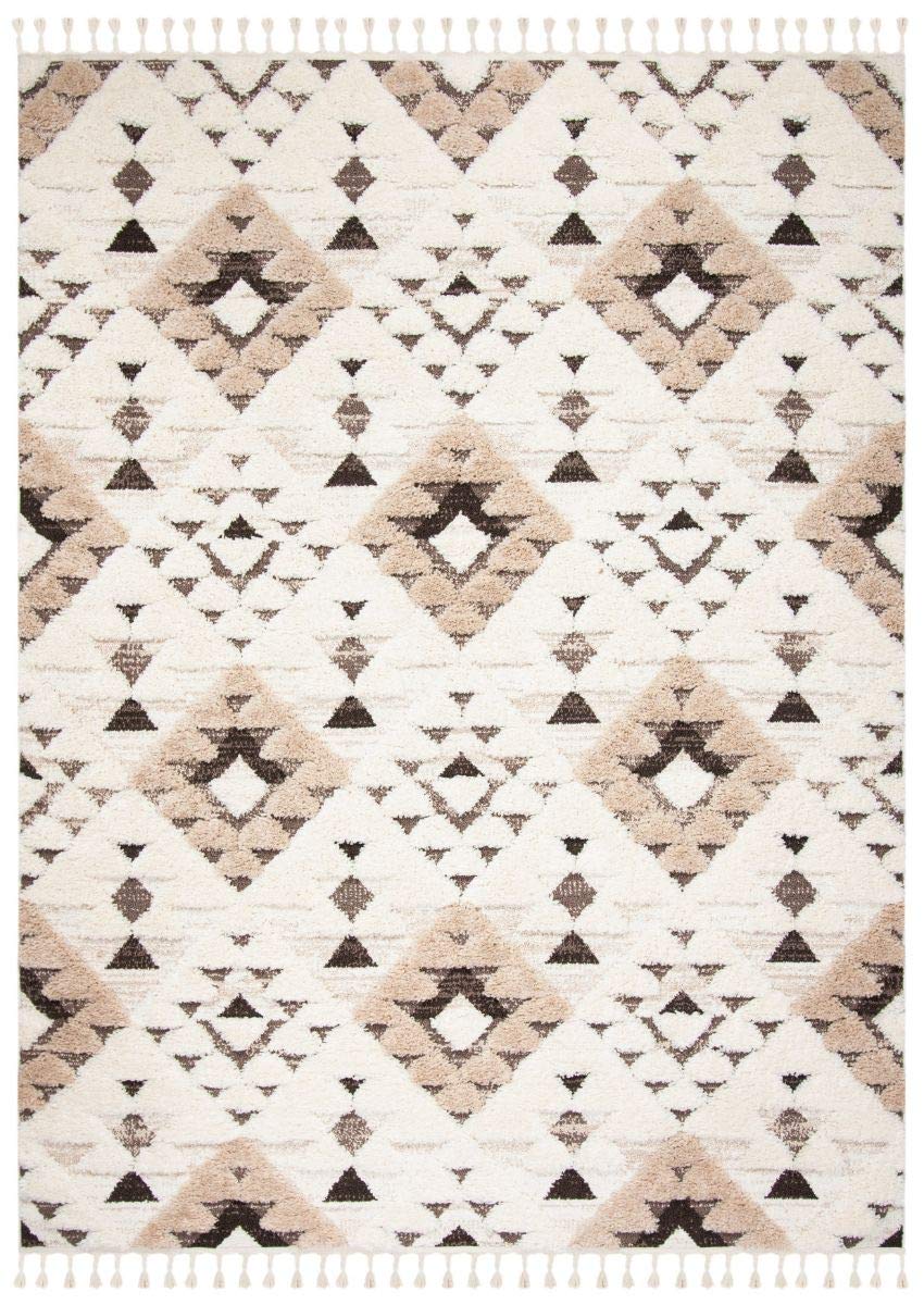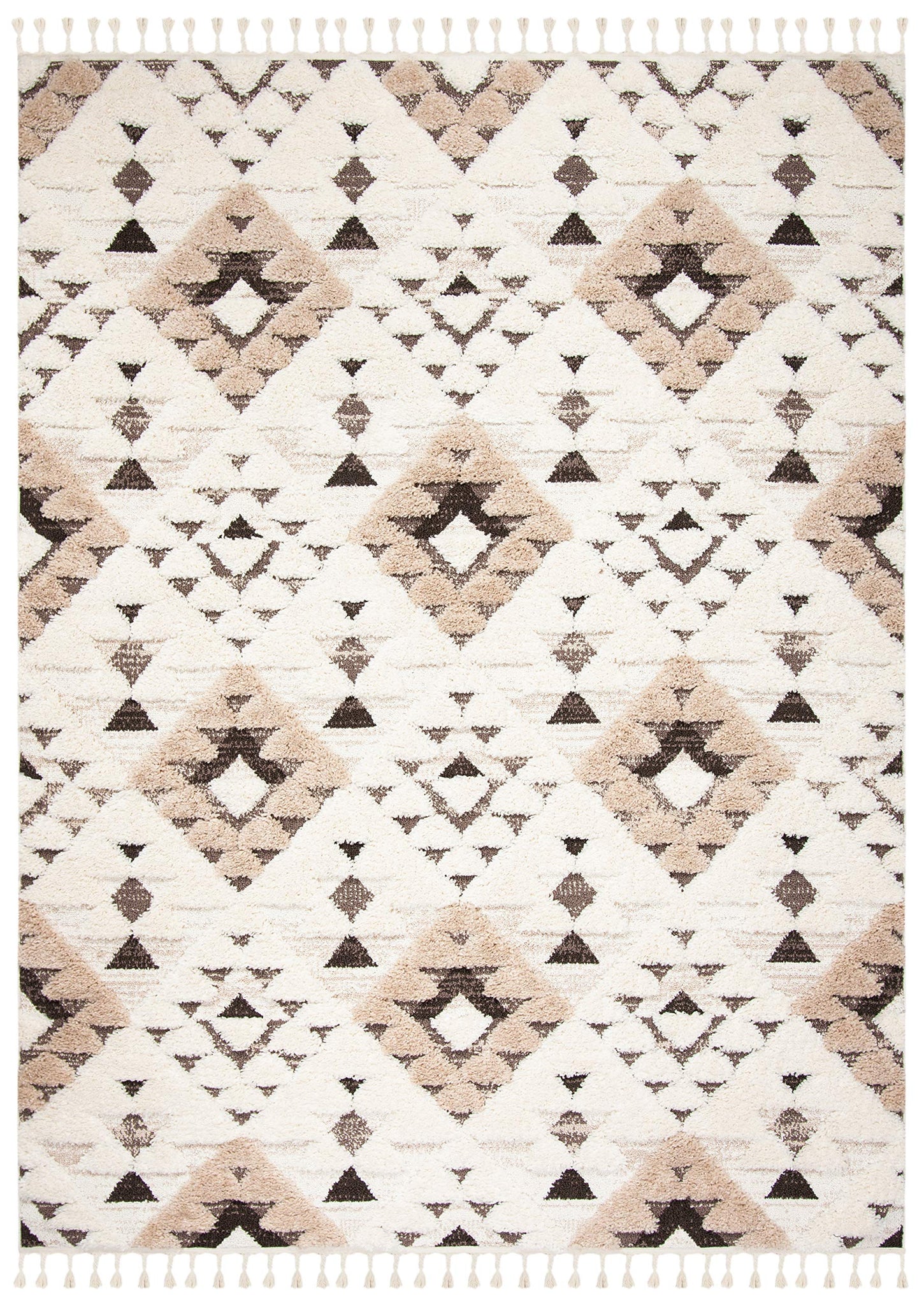 SAFAVIEH Area Rug 8x10 - Moroccan Tassel Shag Collection - Large - Ivory & Brown, Boho Design, Non-Shedding & Easy Cleaning, Plush Pile, Ideal for Living Room, Bedroom, Dining Space (MTS688A)