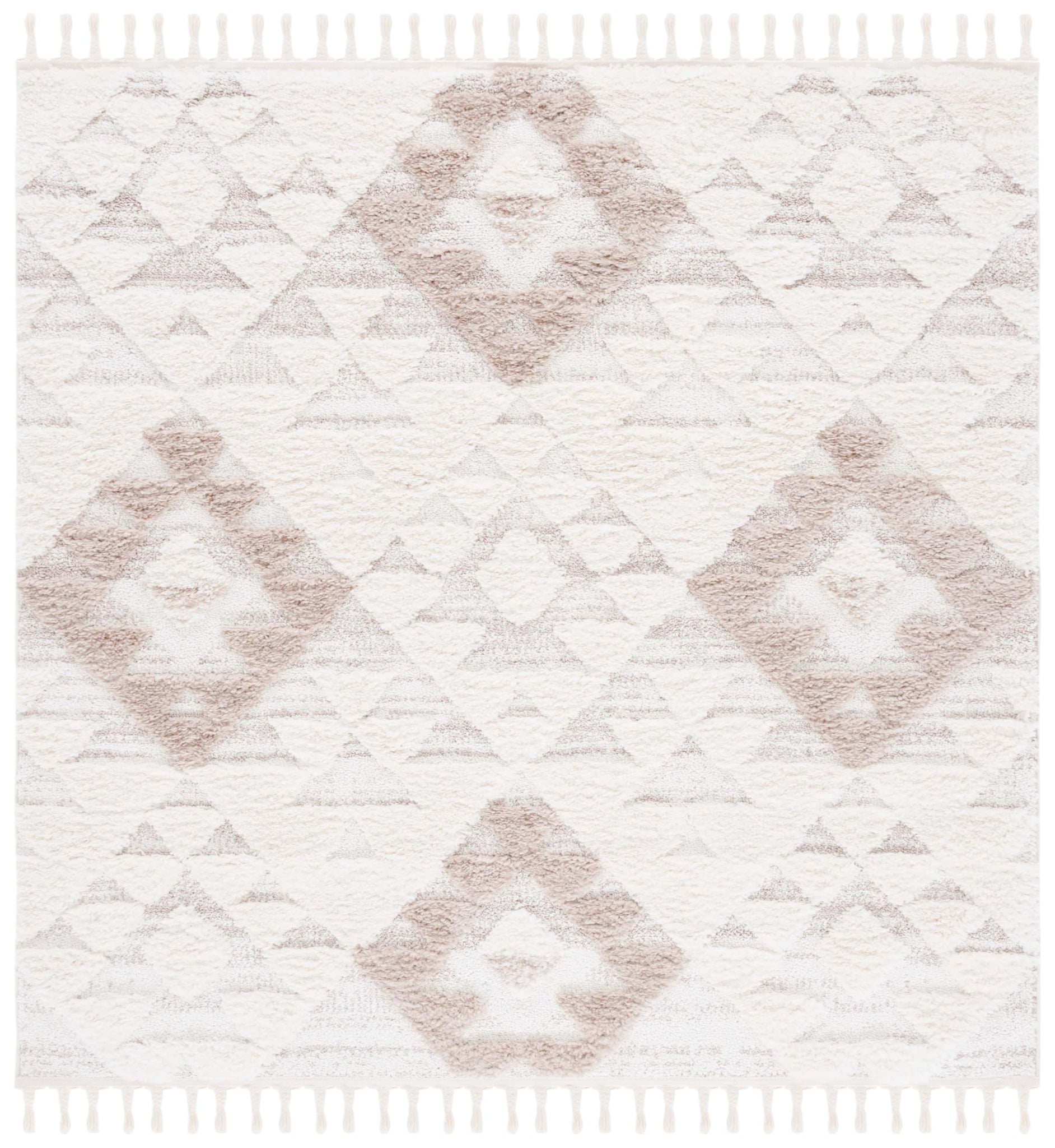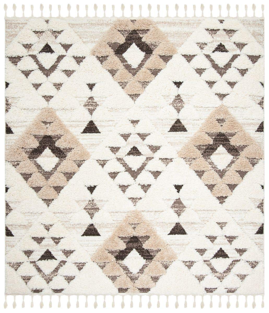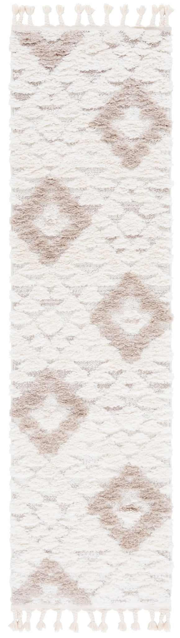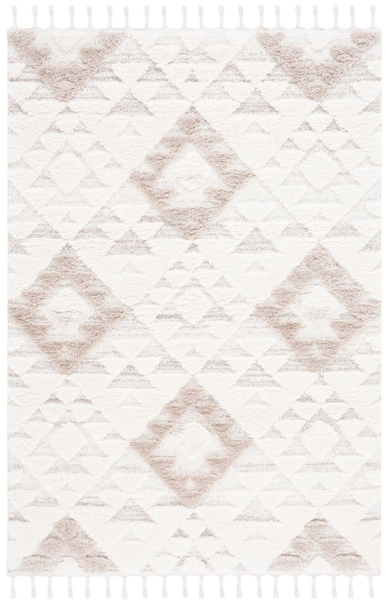 SAFAVIEH Area Rug 8x10 - Moroccan Tassel Shag Collection - Large - Ivory & Brown, Boho Design, Non-Shedding & Easy Cleaning, Plush Pile, Ideal for Living Room, Bedroom, Dining Space (MTS688A)
