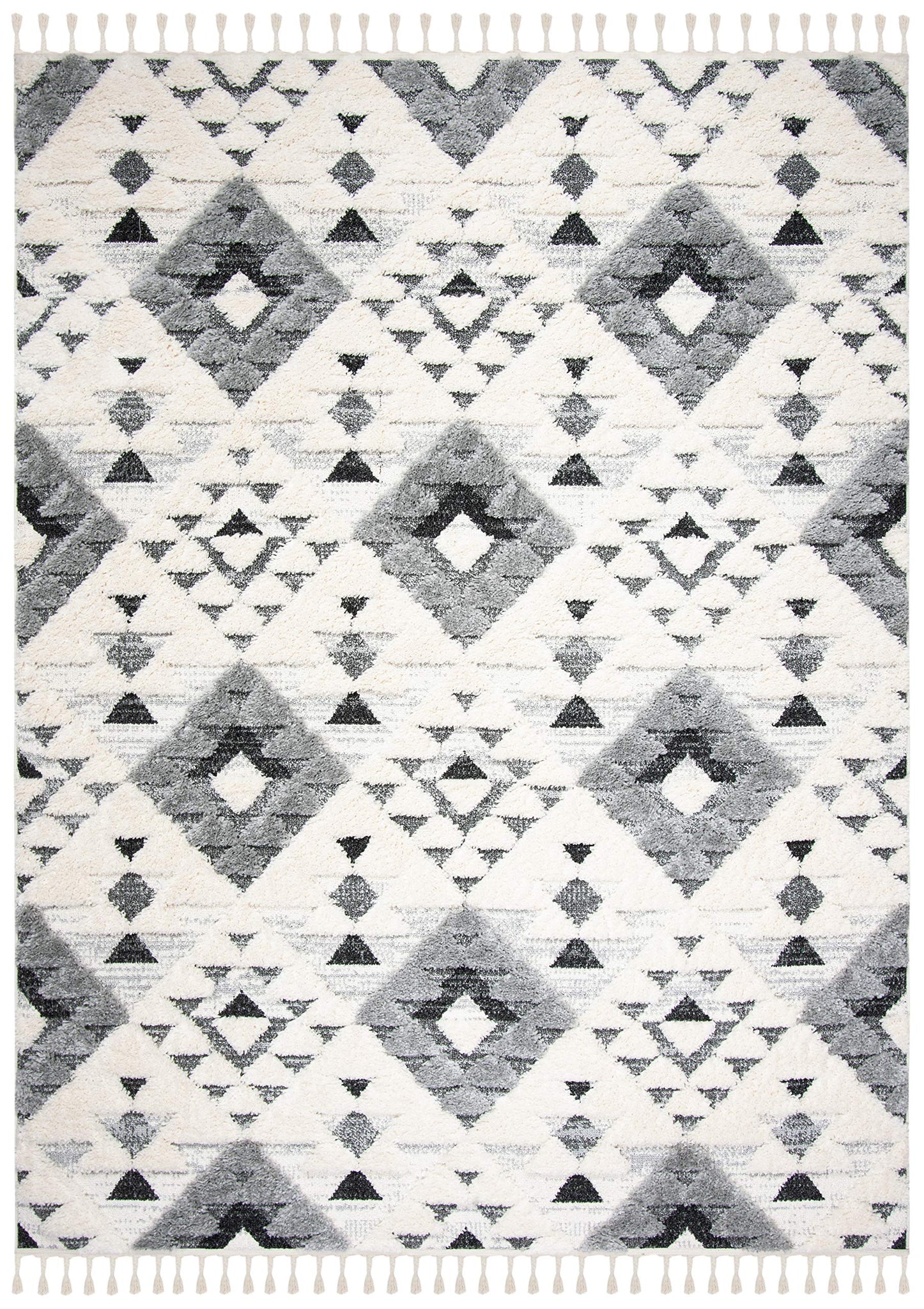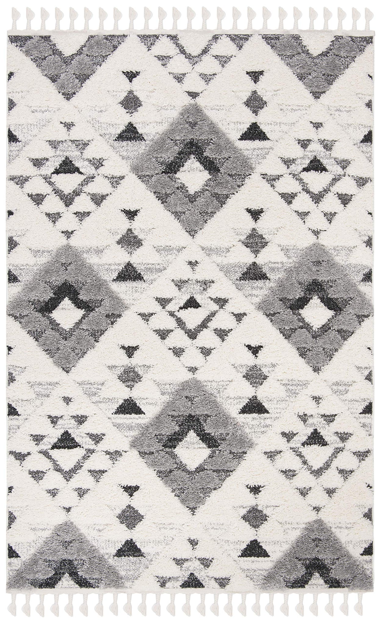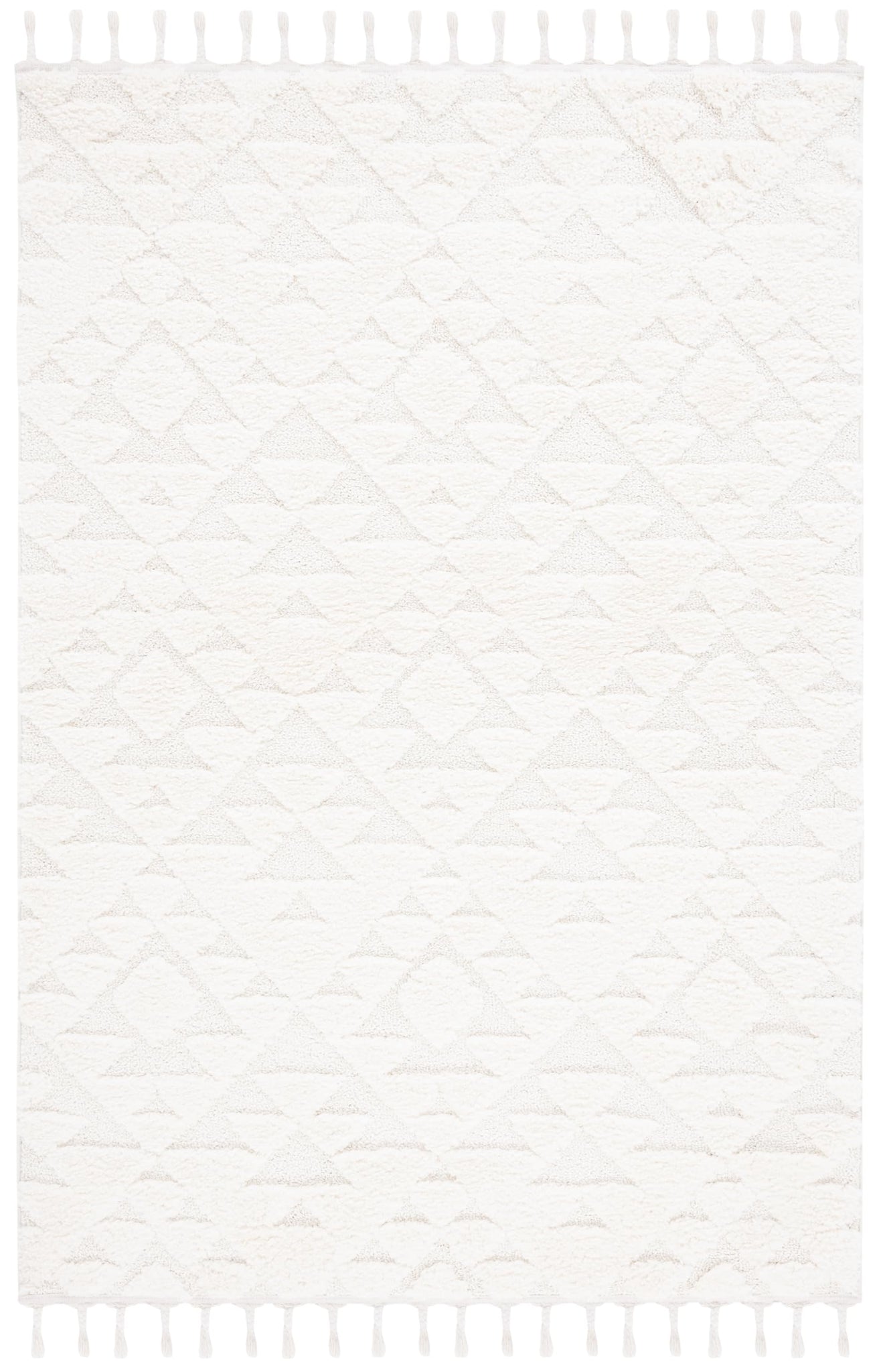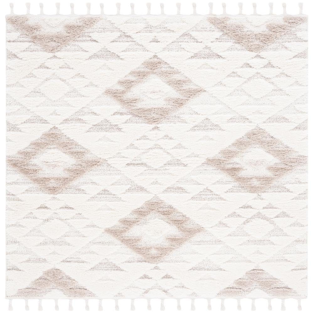 SAFAVIEH Area Rug 8x10 - Moroccan Tassel Shag Collection - Large - Ivory & Brown, Boho Design, Non-Shedding & Easy Cleaning, Plush Pile, Ideal for Living Room, Bedroom, Dining Space (MTS688A)