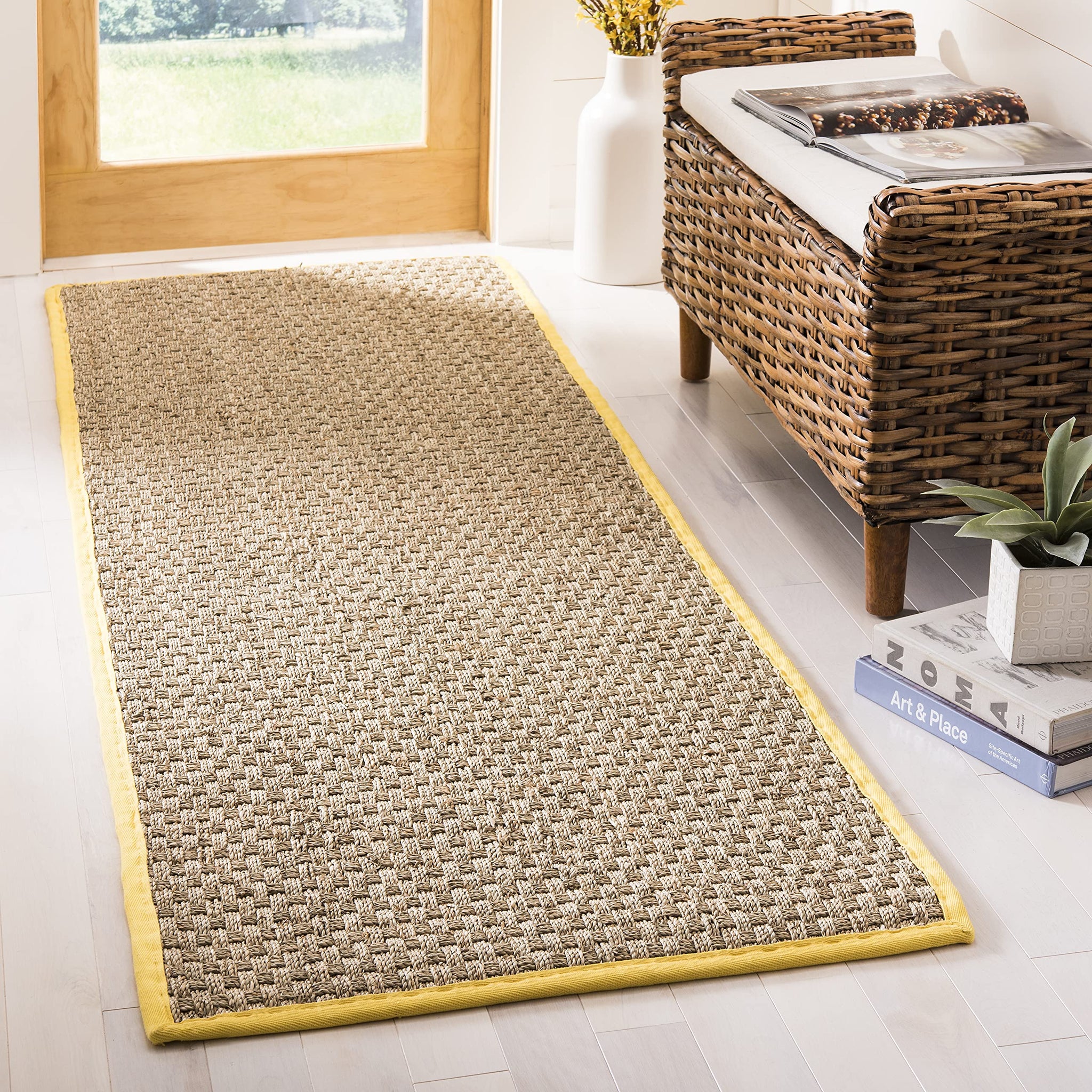 • [EXPERTLY CRAFTED]: Machine-woven by skilled artisans from plant-based seagrass fibers for a rich, textured look and natural feel; slight color variations highlight its natural beauty; fabric border provides a clean, finished edge