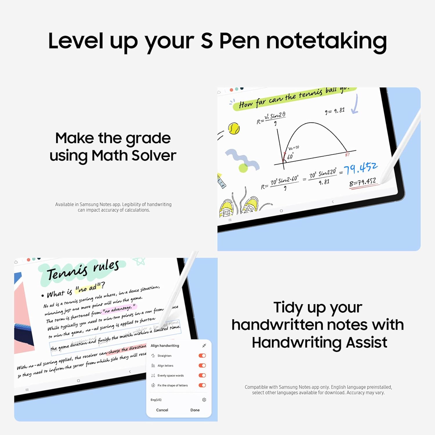 - DOES THE MATH FOR YOU: Make the grades using Math Solver.⁴ Simply use your S Pen to write out an equation on your screen. Math Solver can clean up your equations by turning them into text, just like that.
