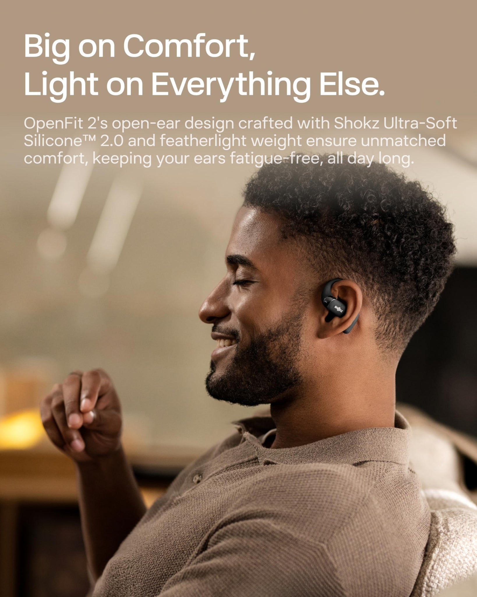 All-Day Comfortable Fit Experience ultimate comfort for extended sessions thanks to our 9.4g lightweight design and Shokz Ultra-Soft Silicone 2.0, which provides cushioning at contact point. The redesigned nickel-titanium ear hooks also ensure an even more secure fit, whether you tackle everyday tasks or are sweating at the gym.