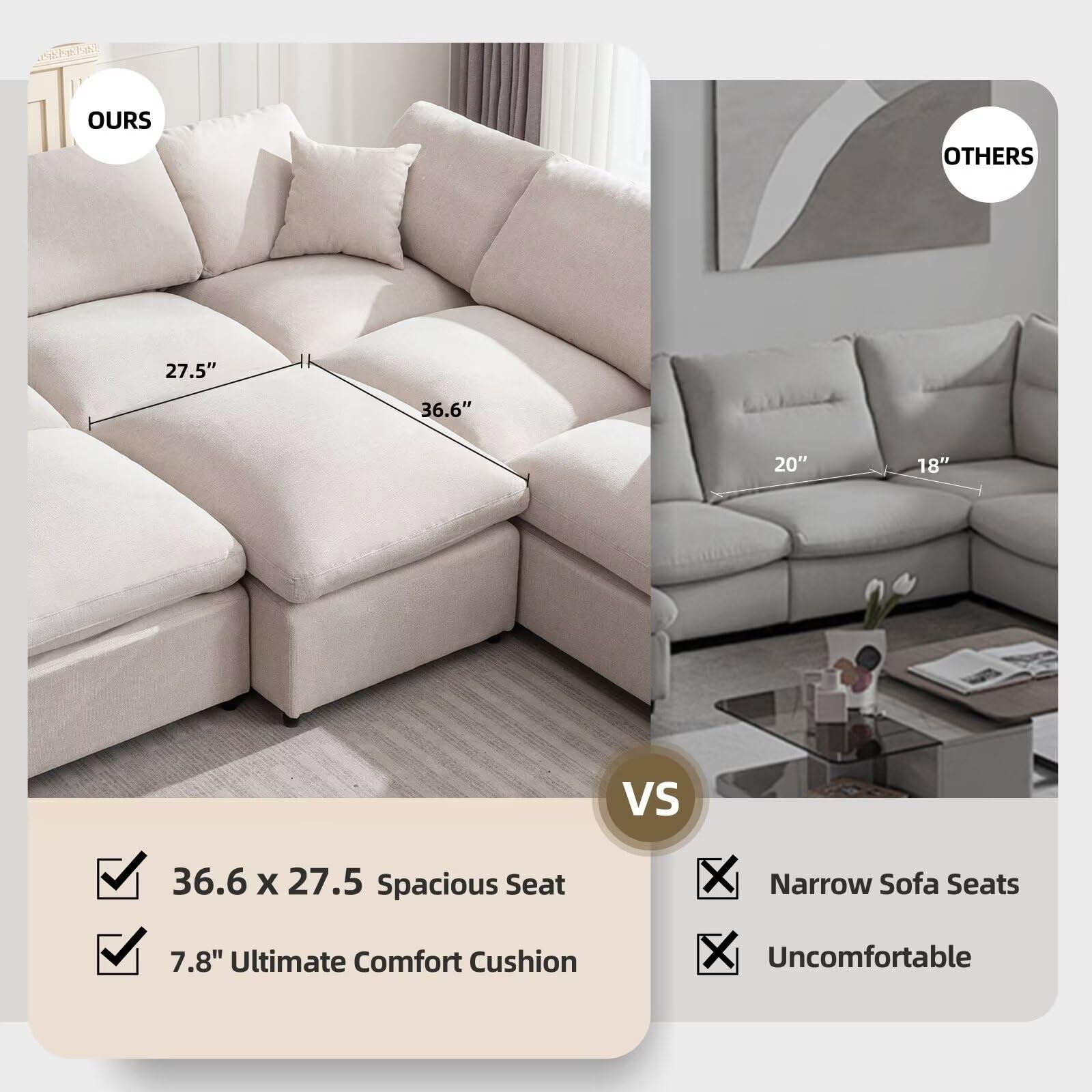 SERVICE EXCELLENCE: Siiejia oversized sofa is delivered in 5 separate packages, which may arrive at different times. Tips: The cushions are vacuum-packed. After opening the package, please wait 48 hours to let it come back to its original shape for the better experience.