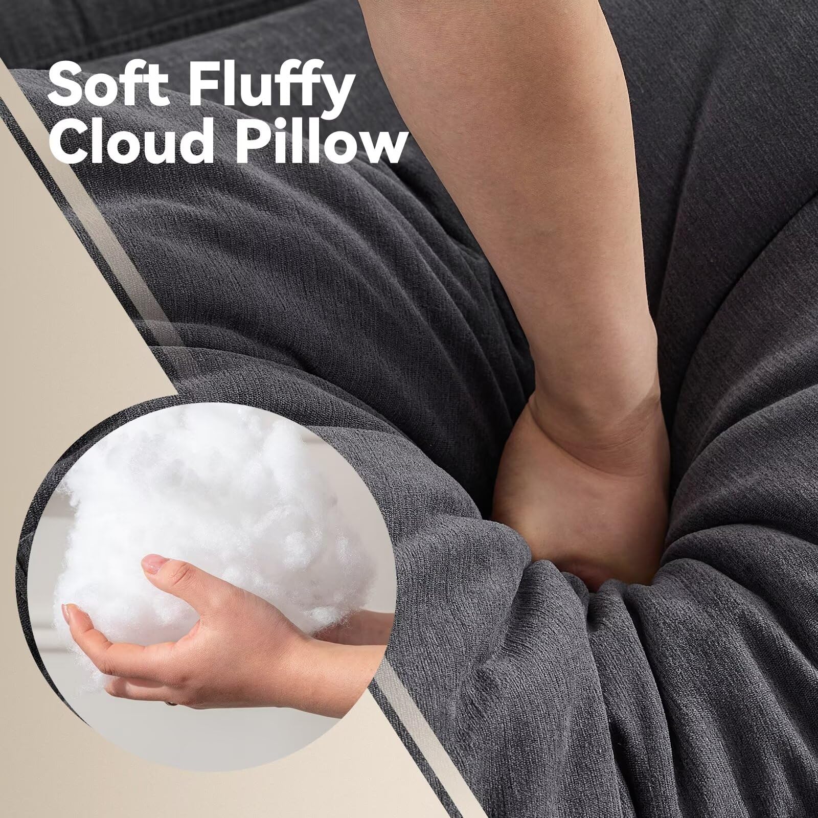 LUXURIOUS COMFORT: Designed for ultimate comfort and crafted with exceptional craftsmanship, Siiejia oversized couch features luxurious cushions that provide unparalleled comfort. The carefully designed back pillows offer optimal support. With sponge and premium cotton filling, Siiejia cloud couch offers superior resilience and softness. Whether relaxing or enjoying a good book, this sofa provides the best full-body support and comfortable experience.