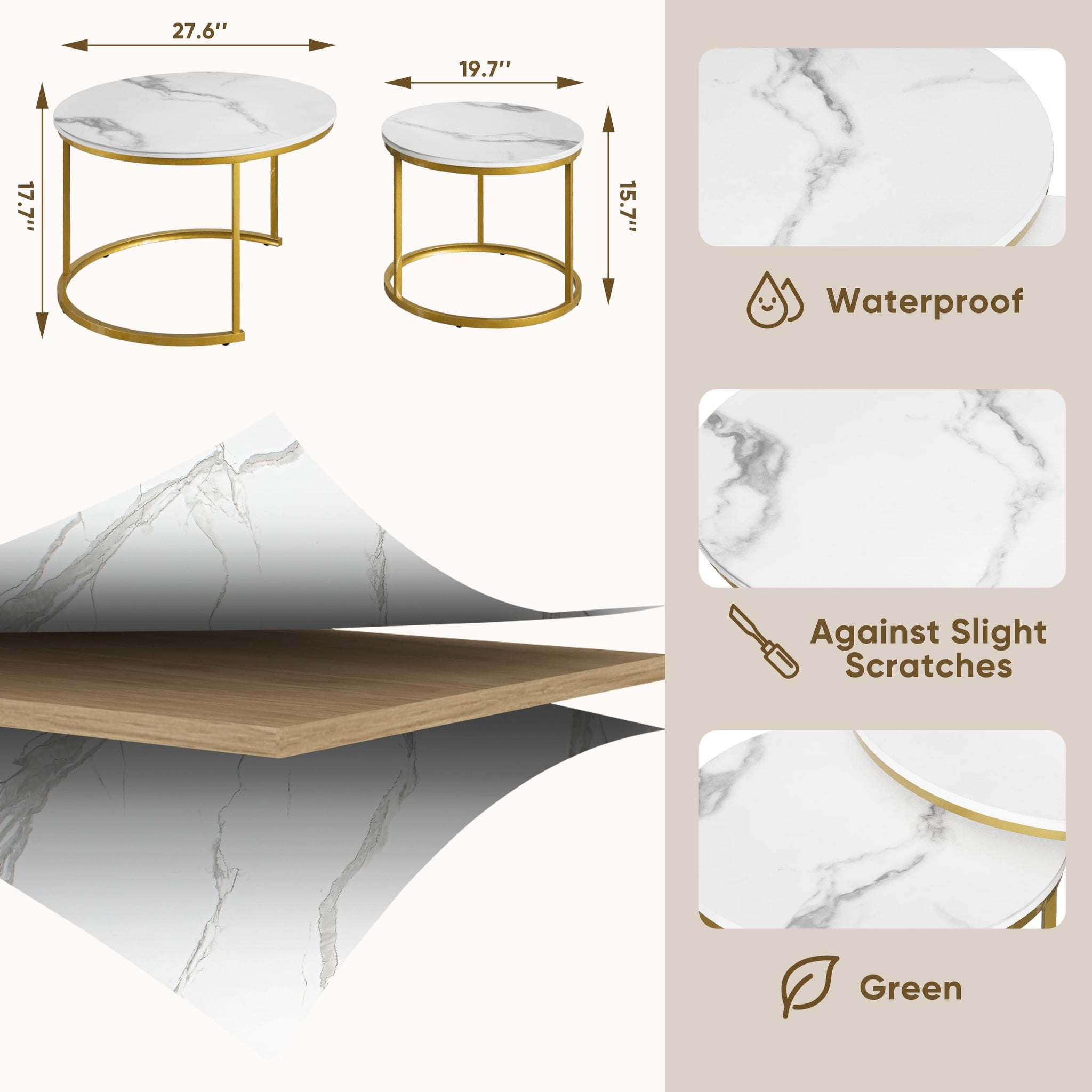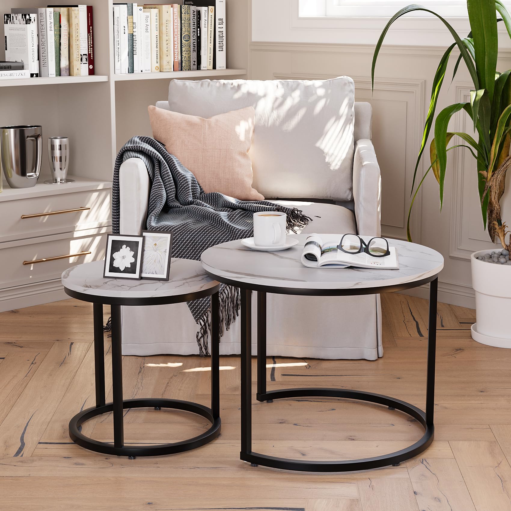 • 【Flexibility】Small Nesting Tables: 15.7"(D) x 15.7"(H), Large Nesting Tables: 23.6"(D) x 17.7". The nesting design of these coffee tables makes them highly flexible, allowing for quick retrieval when guests arrive and easy storage when not needed.