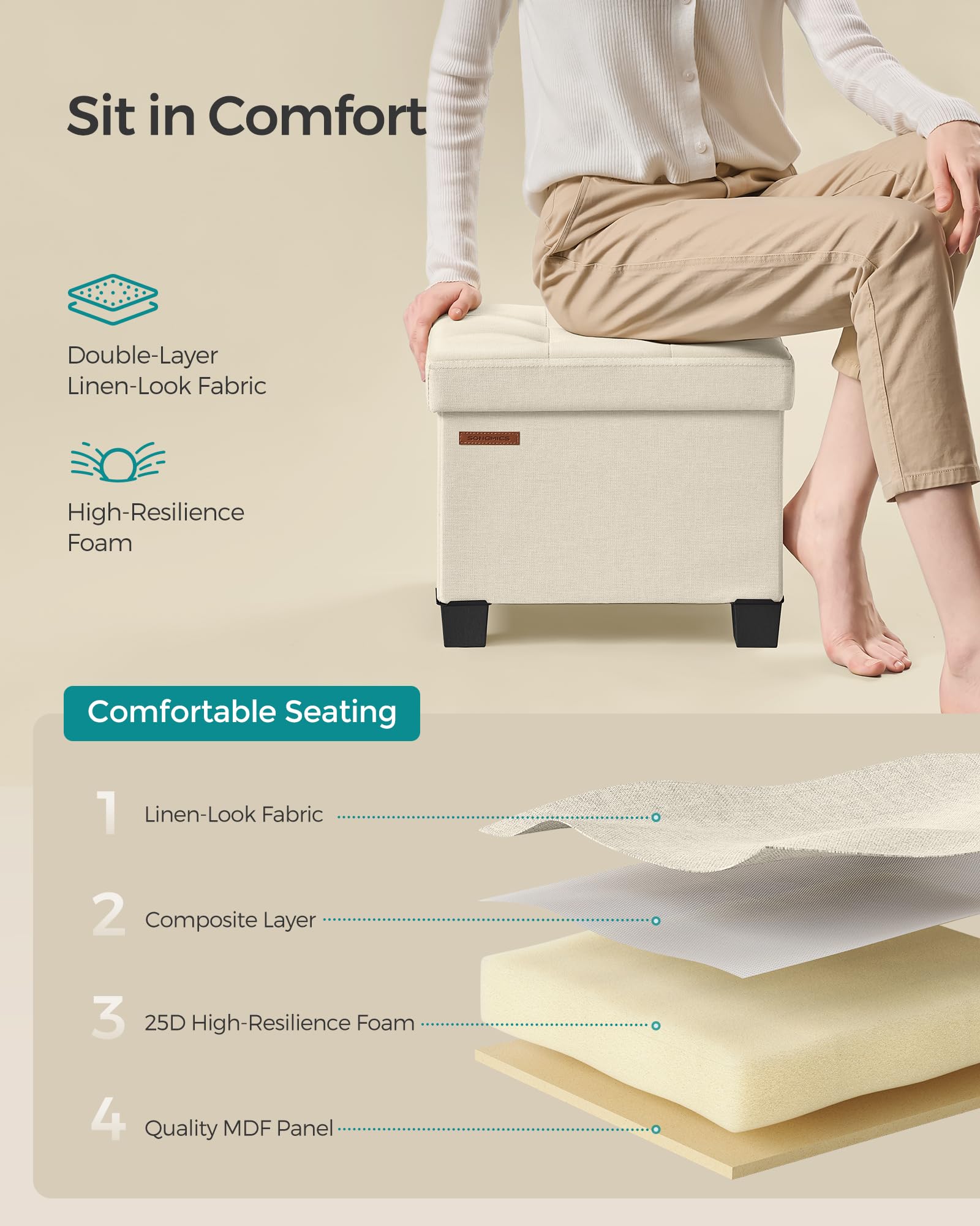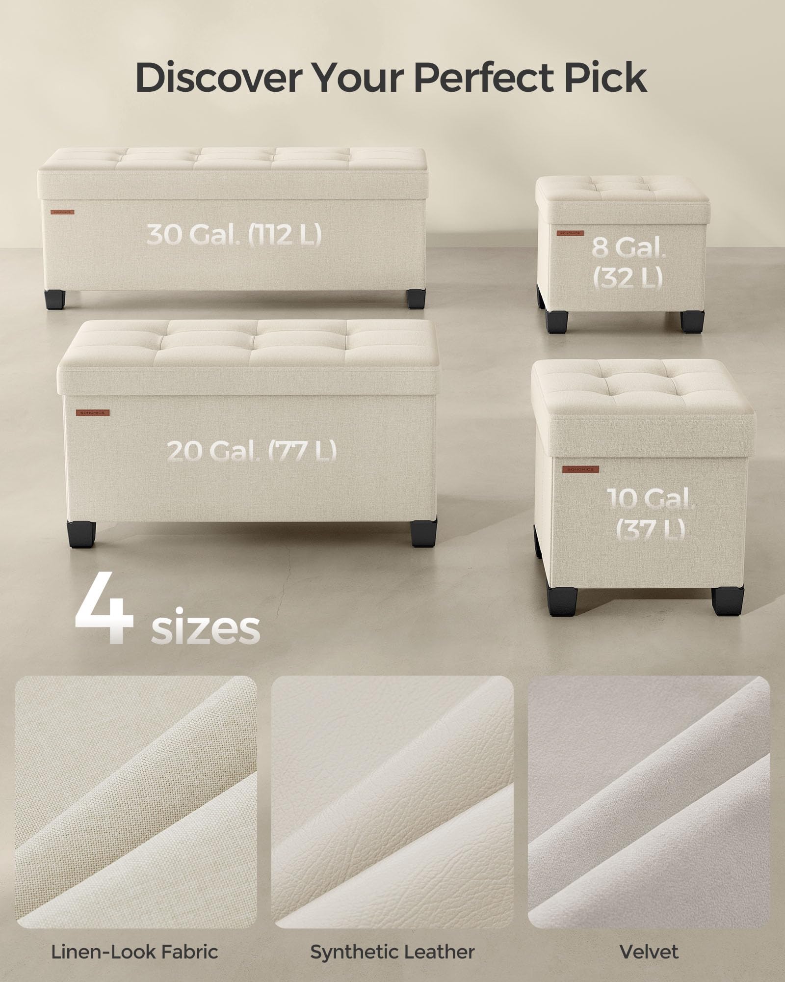 • [Refined & Robust] Crafted from linen-look fabric, this storage ottoman features neat stitching and a refined aesthetic. Built with thick MDF panels and reinforced with metal corner guards on the lid, it has a max. static load capacity of 660 lb (300 kg)