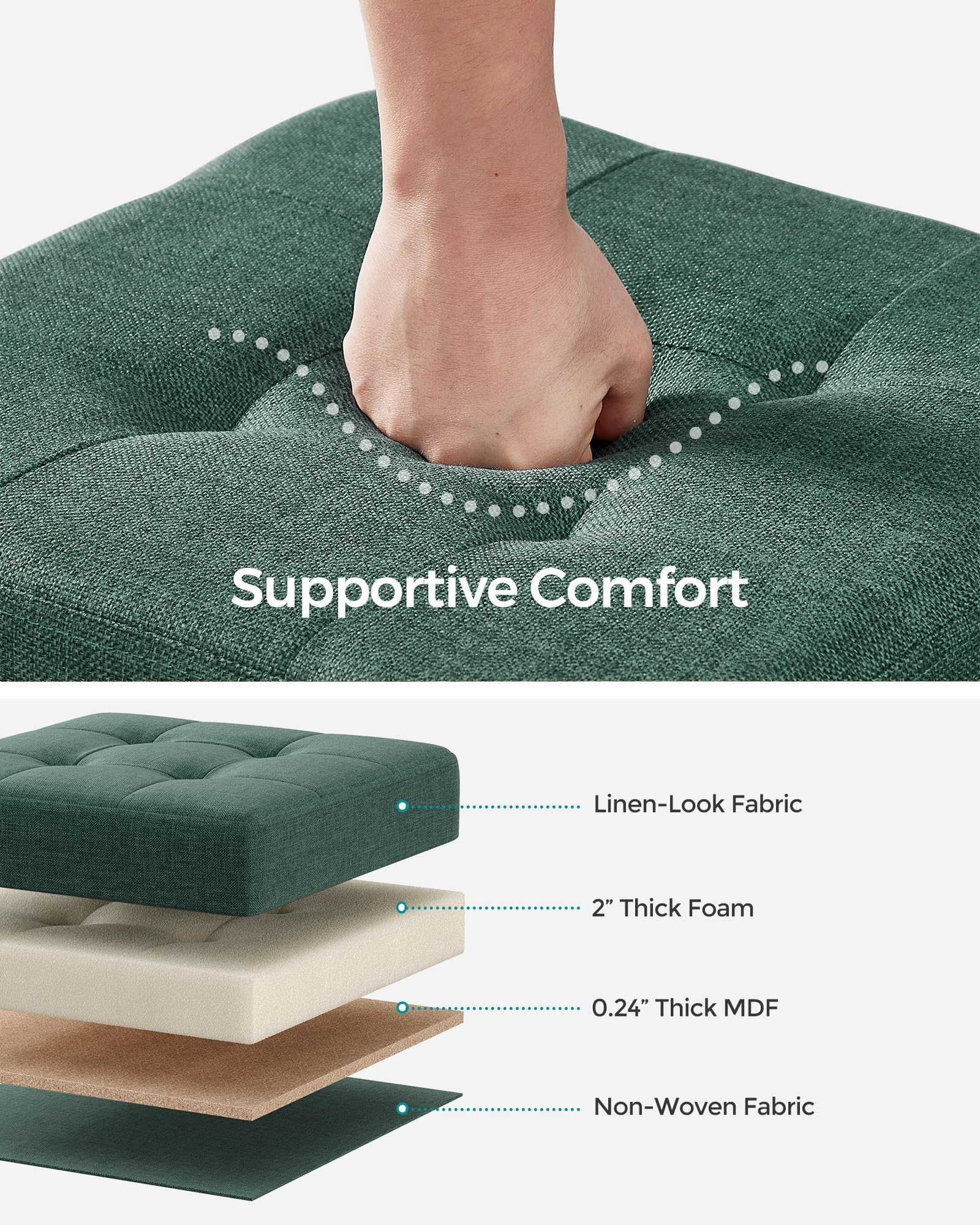 • [Comfortable Seating] Padded with high-density foam on top and covered in a linen-look fabric that is both soft and breathable, this ottoman bench offers great comfort while maintaining its shape over time