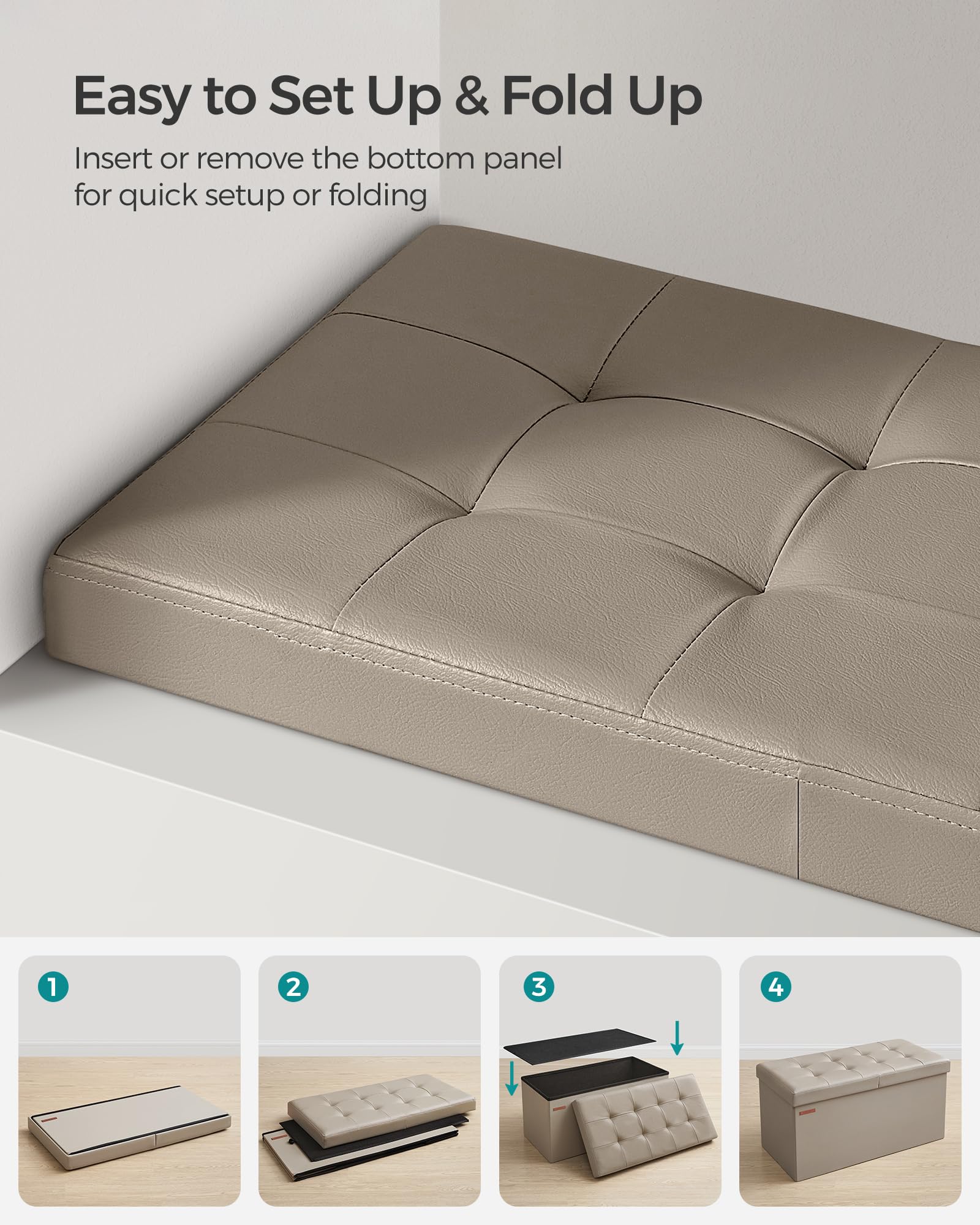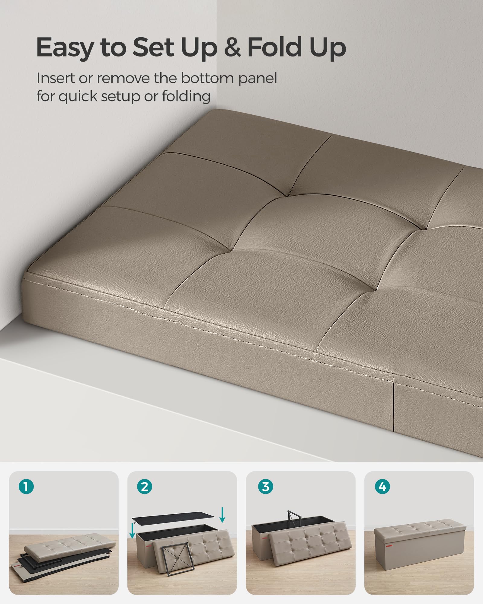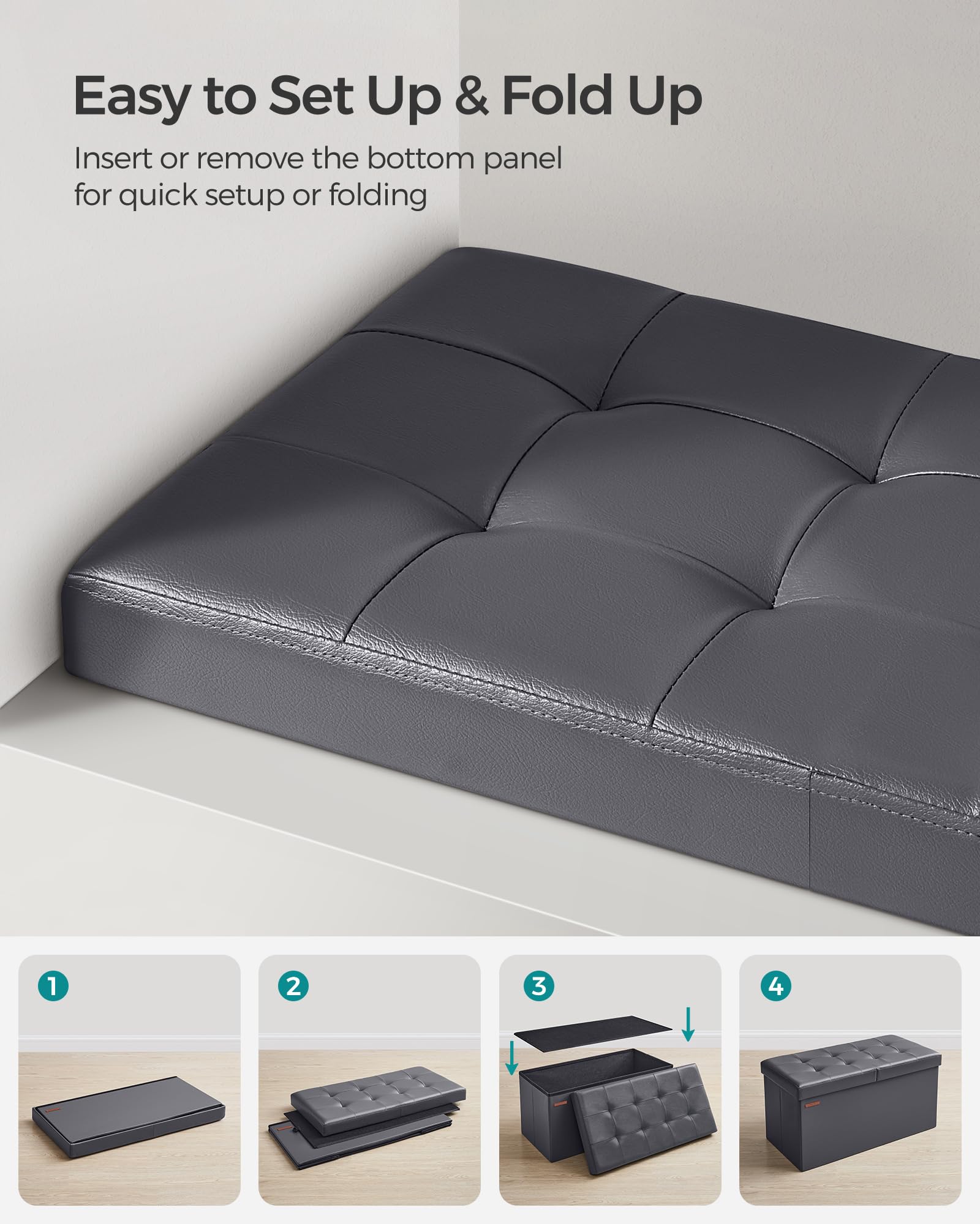 • 【QUICK ASSEMBLY, EASY FOLDAWAY】This storage ottoman from the SONGMICS MAZIE Collection has a foldable design that allows quick setup in seconds by simply inserting the bottom panel. Easily fold and store it under the bed or in a closet when not in use