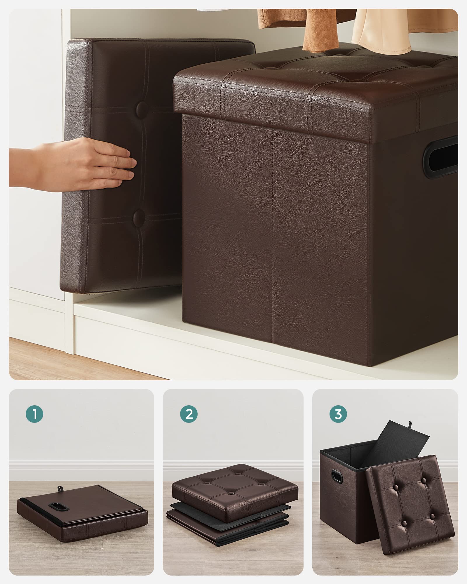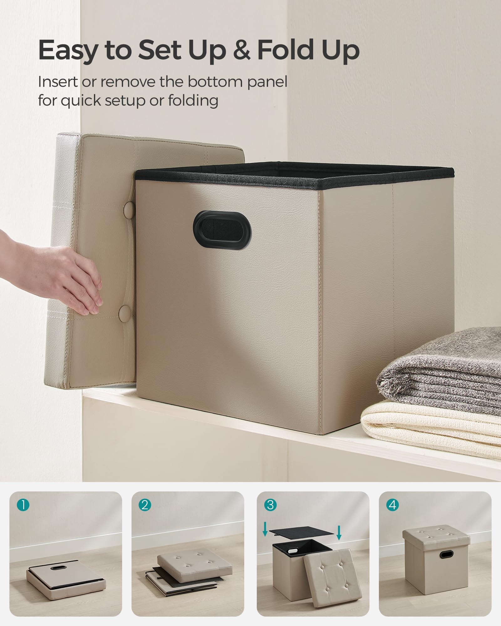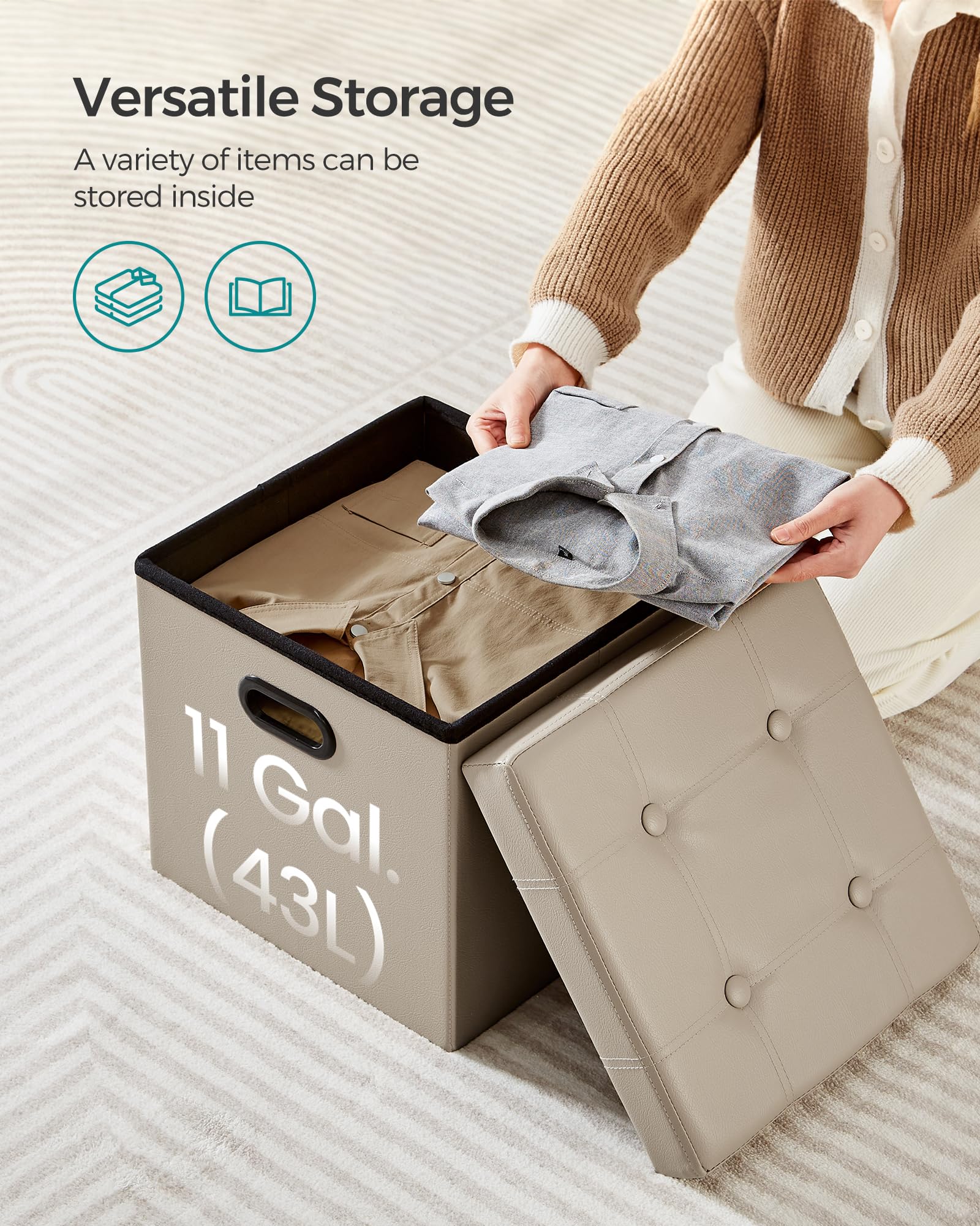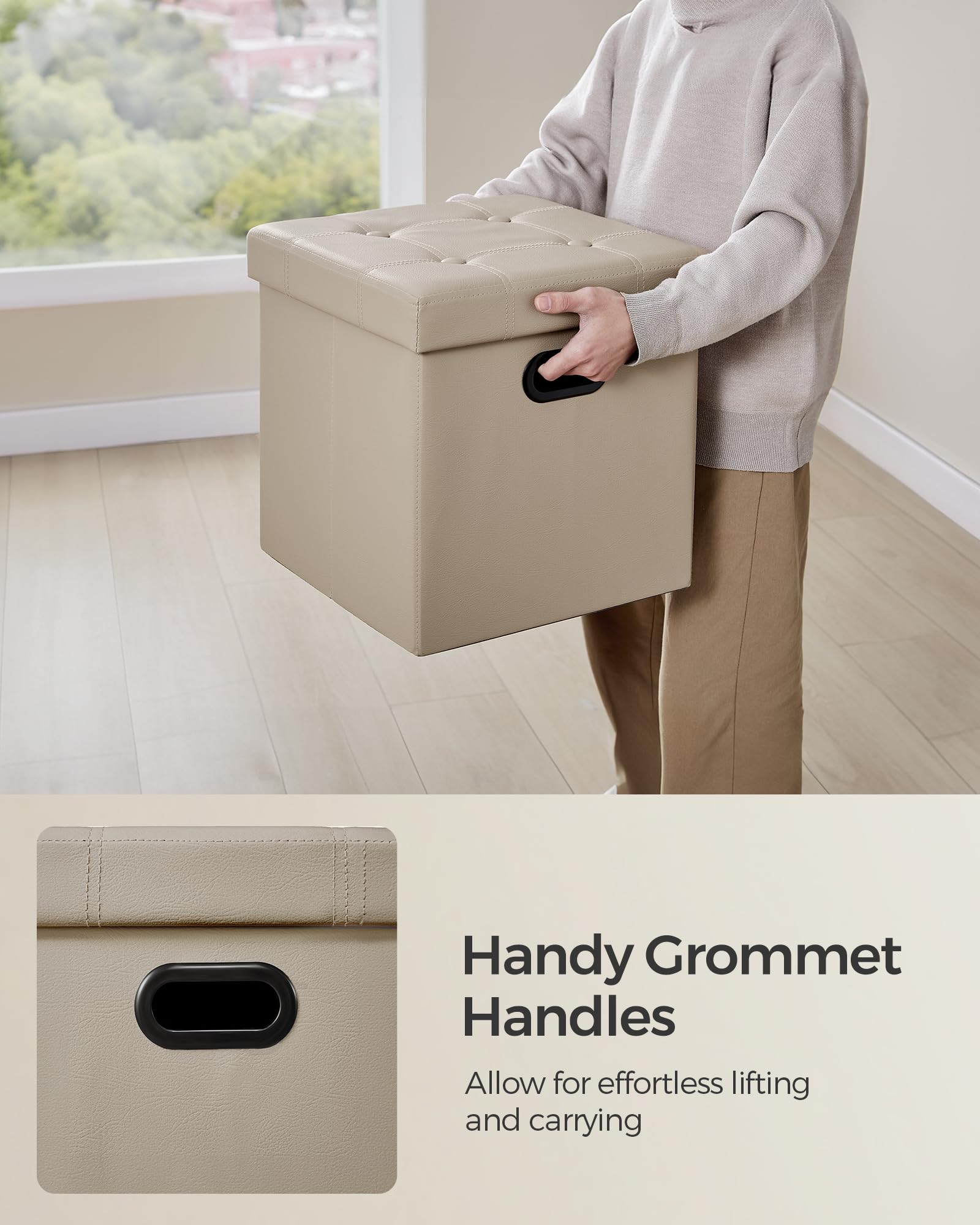 • 【QUICK ASSEMBLY, EASY FOLDAWAY】This storage ottoman from the SONGMICS MAZIE Collection has a foldable design that allows quick setup in seconds by simply inserting the bottom panel. Easily fold and store it under the bed or in a closet when not in use