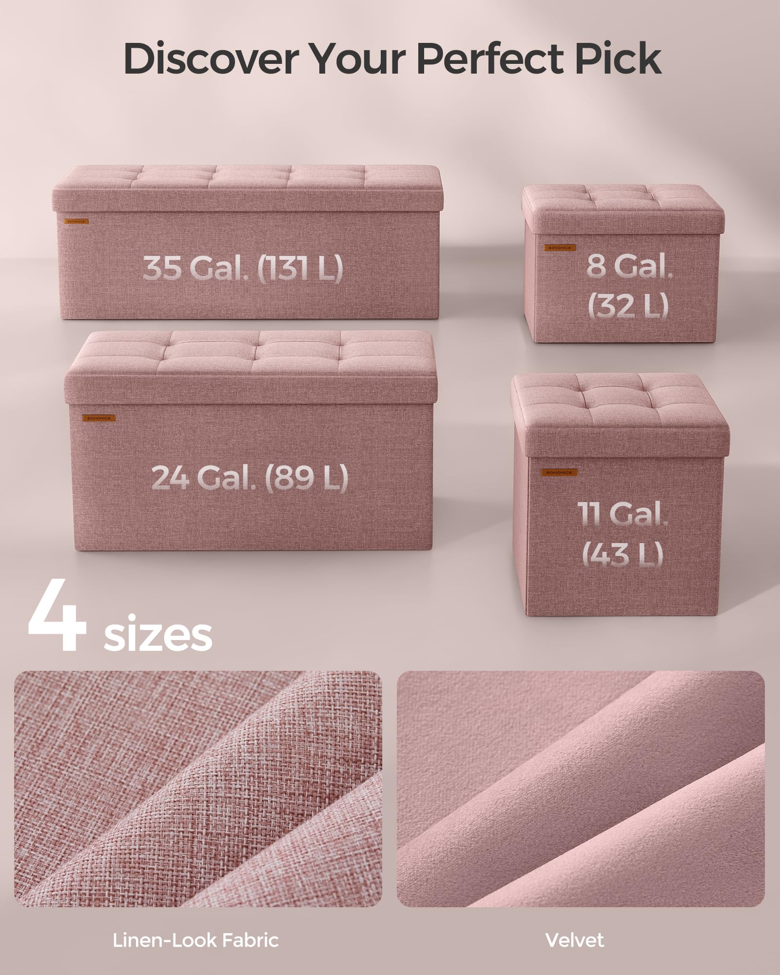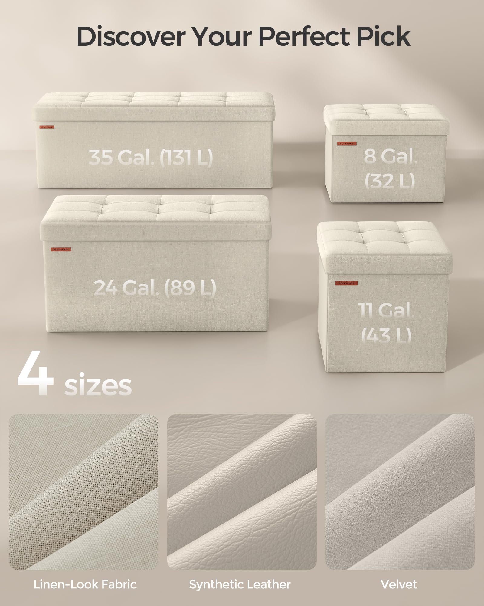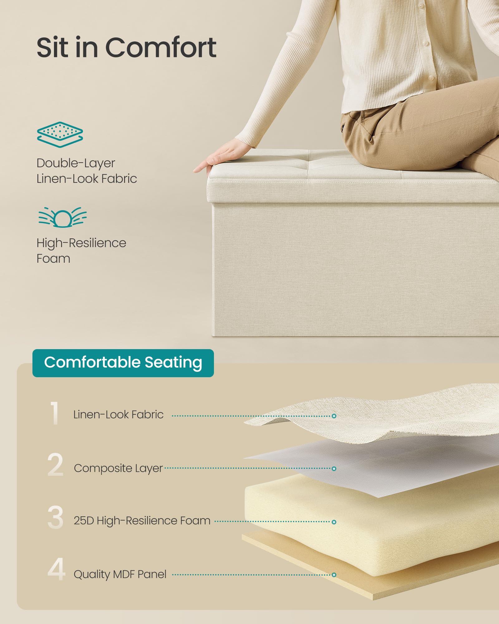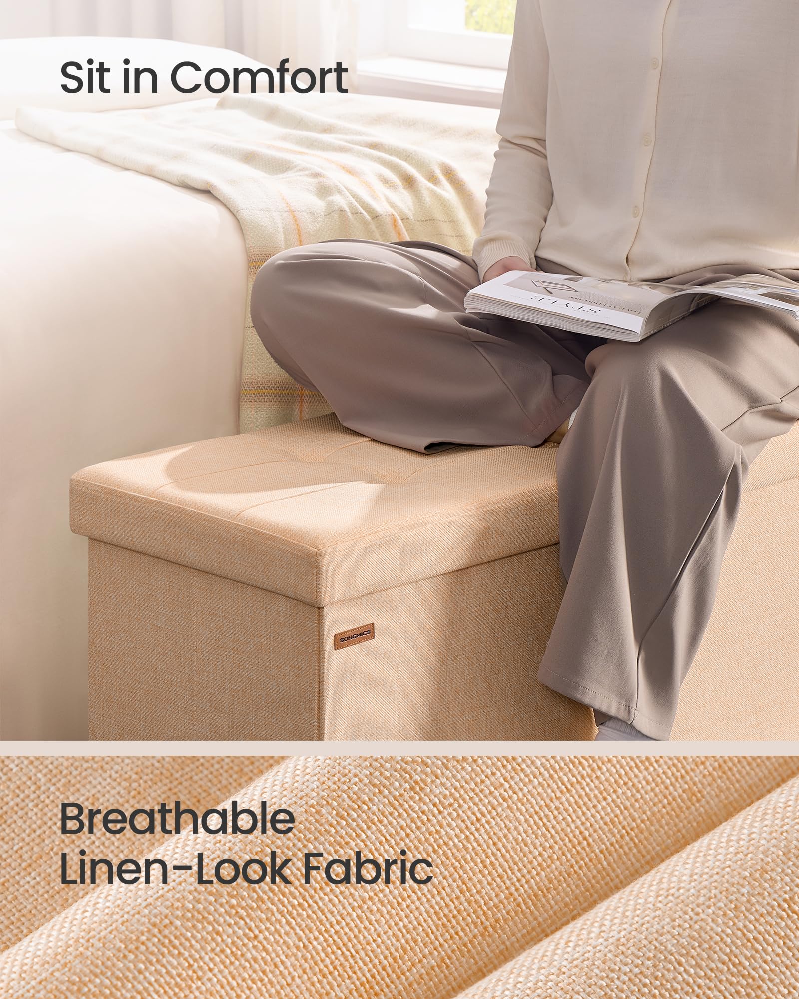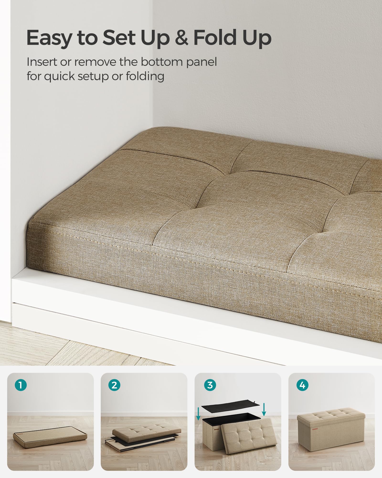 • 【QUICK ASSEMBLY, EASY FOLDAWAY】This storage ottoman from the SONGMICS MAZIE Collection has a foldable design that allows quick setup in seconds by simply inserting the bottom panel. Easily fold and store it under the bed or in a closet when not in use