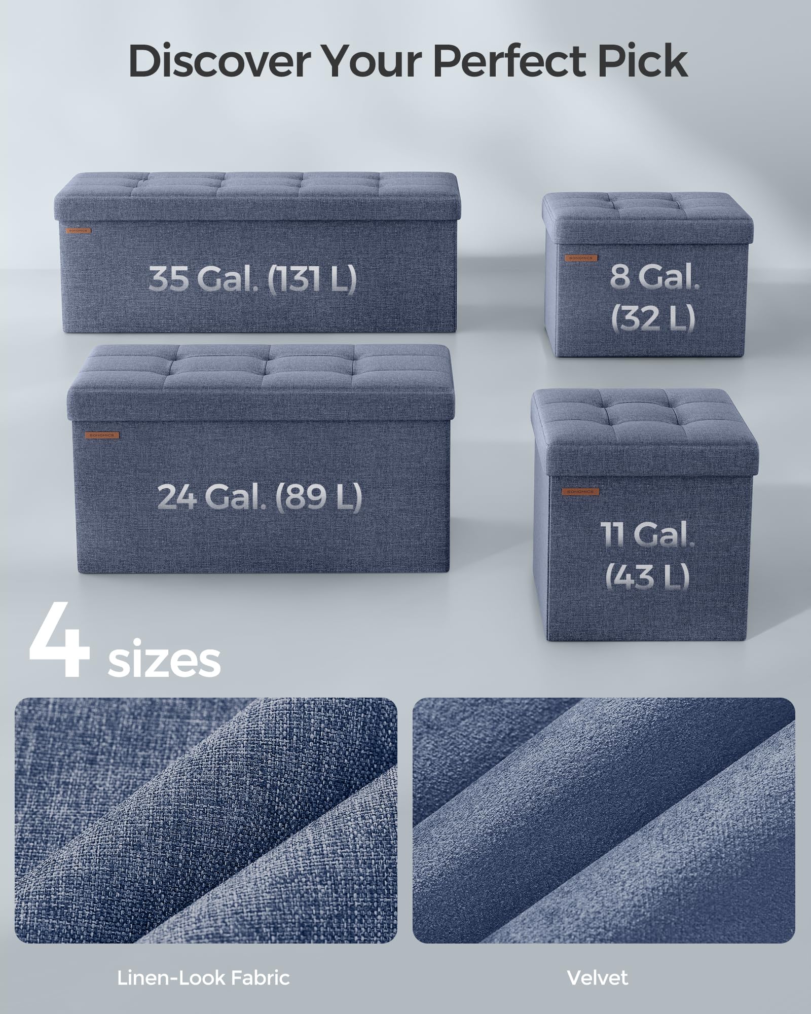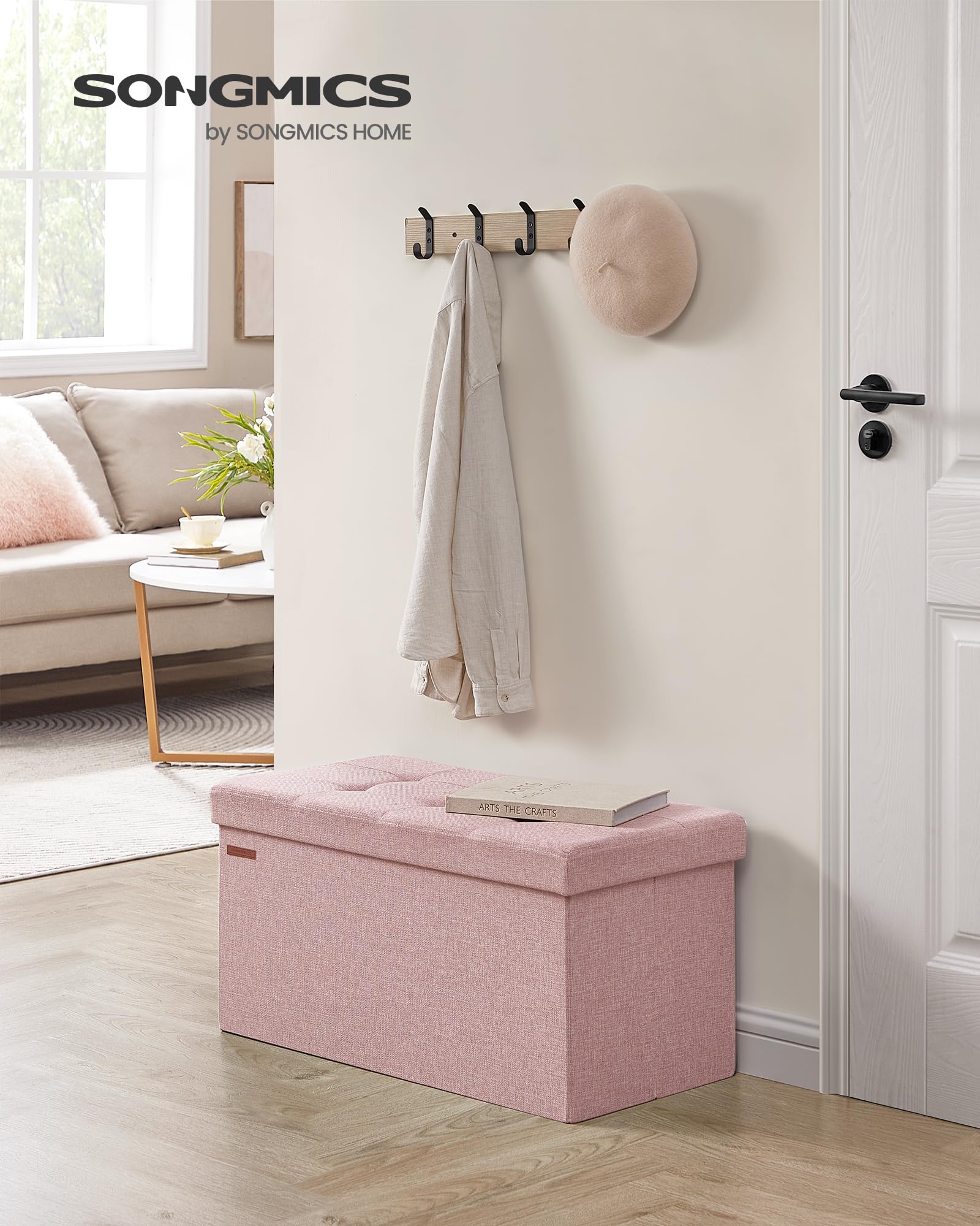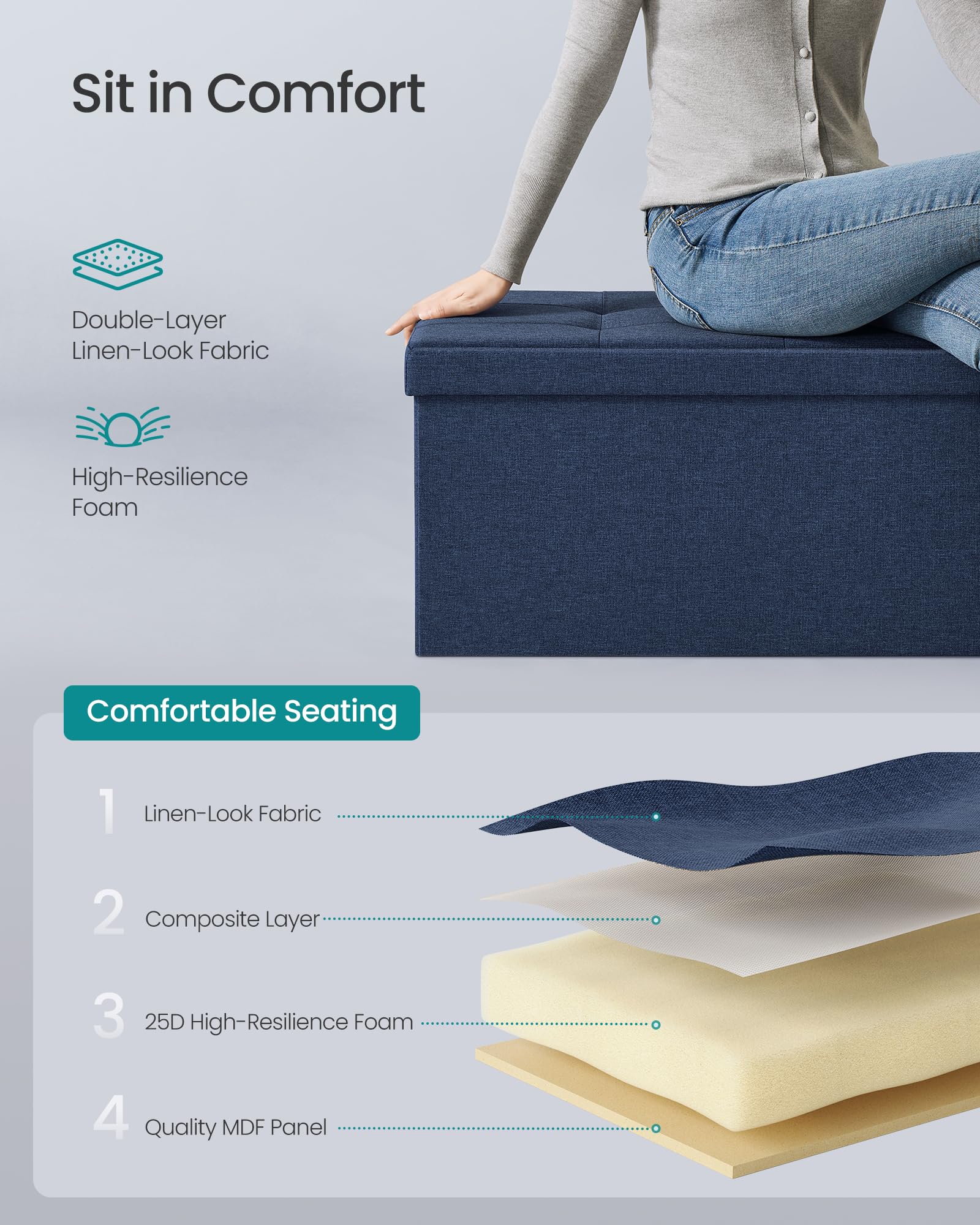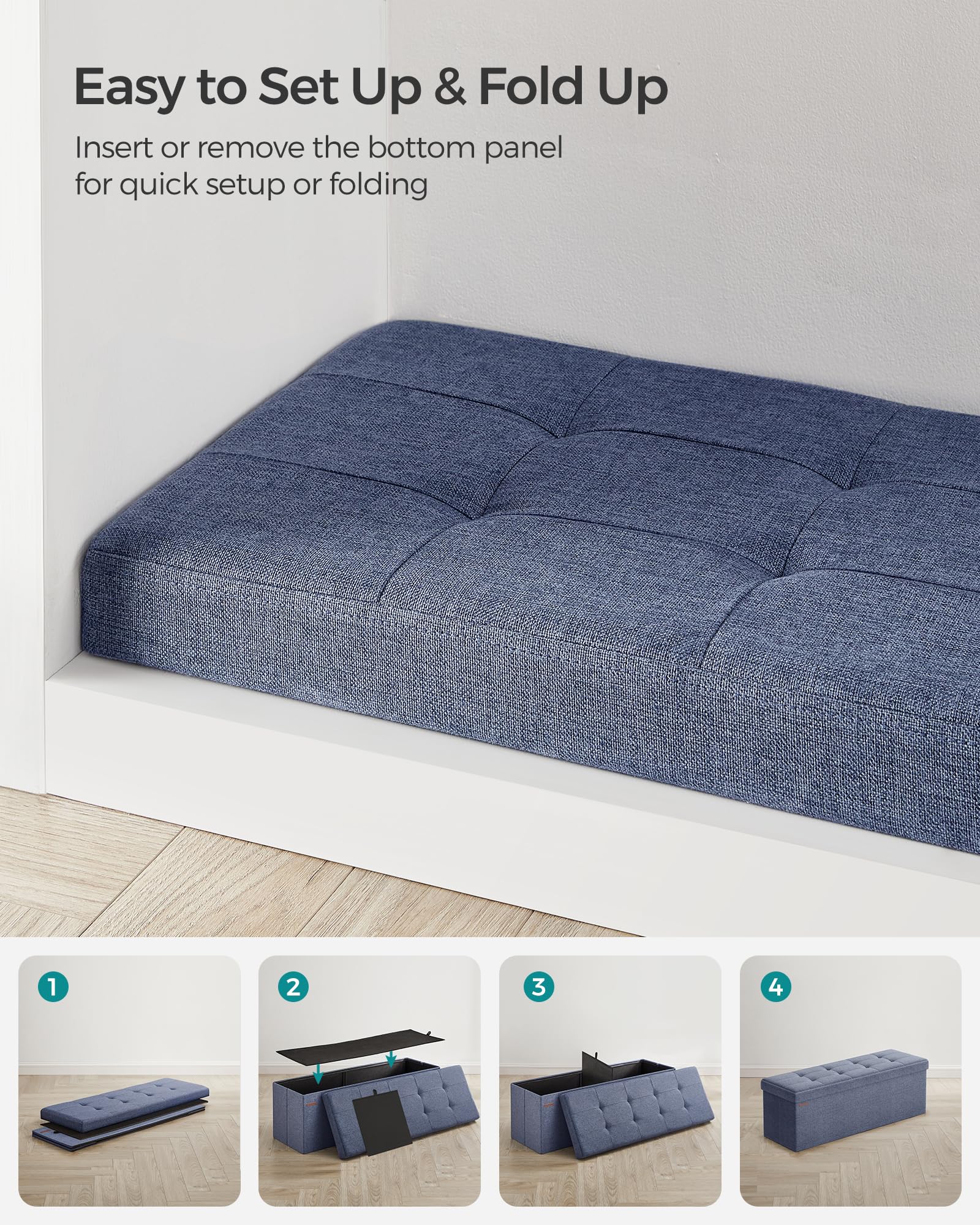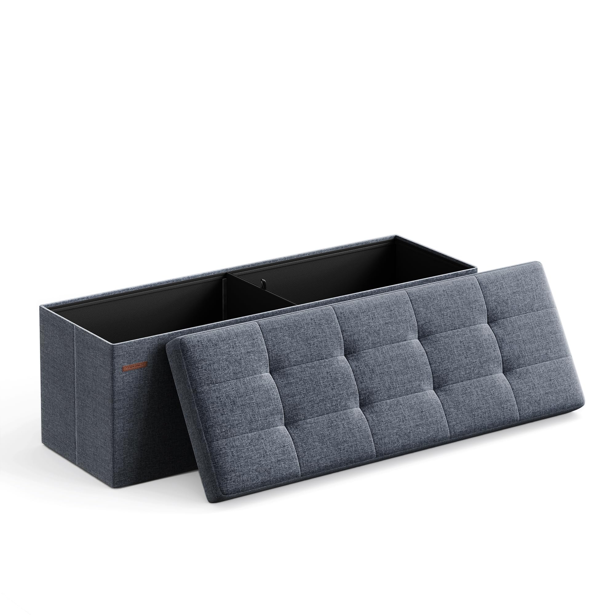 SONGMICS MAZIE Collection - 43 Inches Folding Storage Ottoman Bench, Ottoman Foot Rest, End of Bed Bench, Storage Chest, Load 660 lb, for Living Room, Bedroom, Entryway, Dark Gray ULSF77K