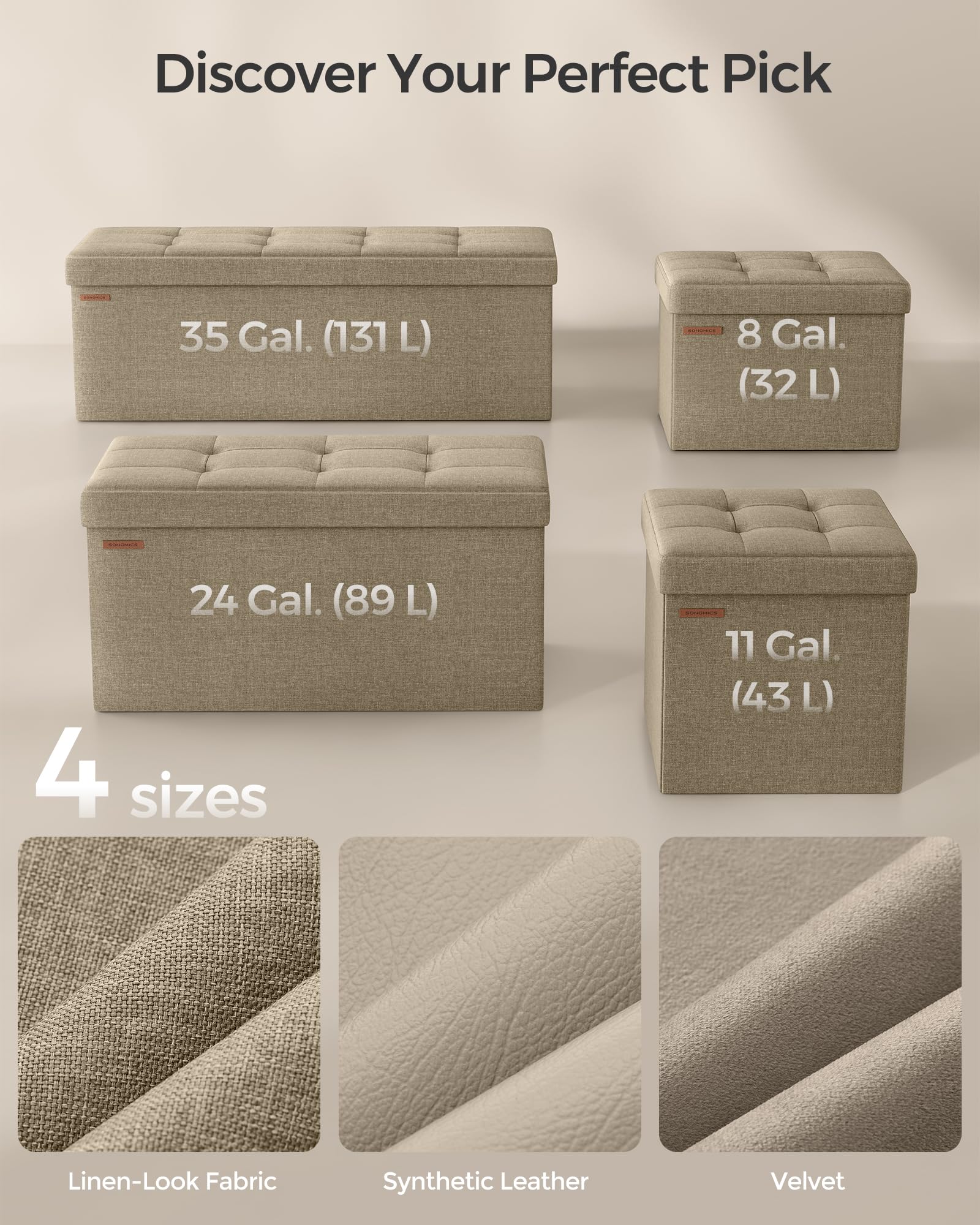 • 【AMPLE STORAGE】Measuring 15"D x 43"W x 15"H (38 x 110 x 38 cm), this storage bench offers a 35-gallon (131 L) volume. Its removable divider keeps your books, clothes, and blankets neatly sorted, or stores larger items like bed sheets