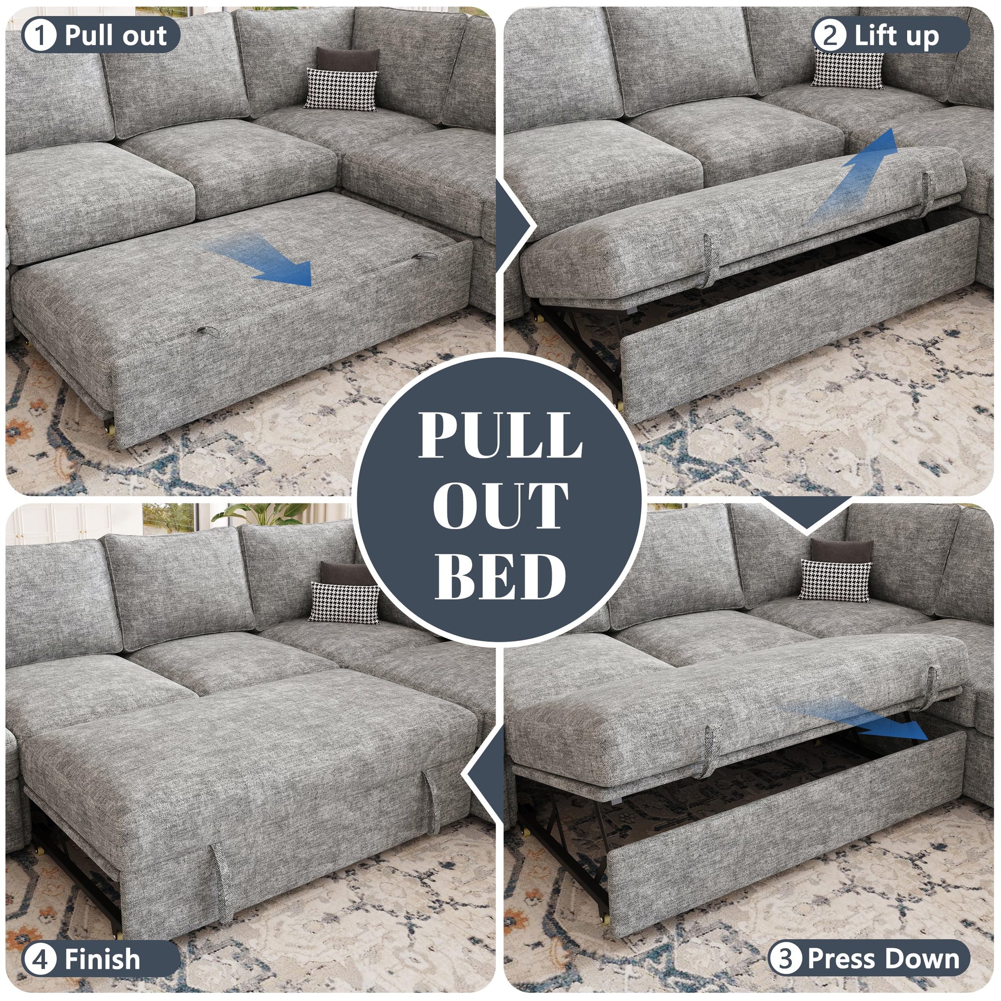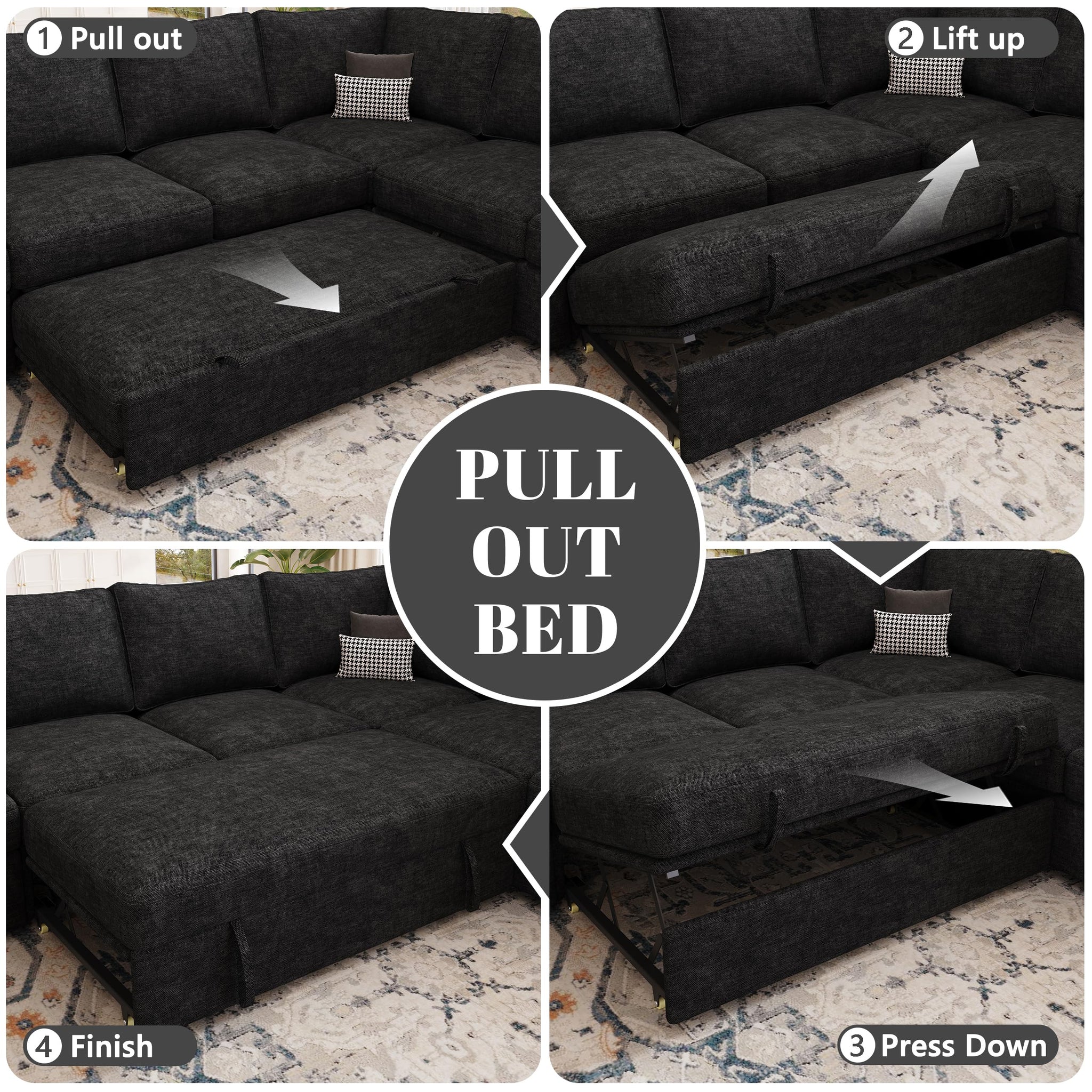 SUAWY 108 Inch Sectional Sleeper Sofa with Pull Out Bed,U Shaped 7 Seat Modular Sectional Sofa with Storage,Sectional Couches for Living Room,Cloud Modular Couch,Removable Sofa Cover,Dark Grey