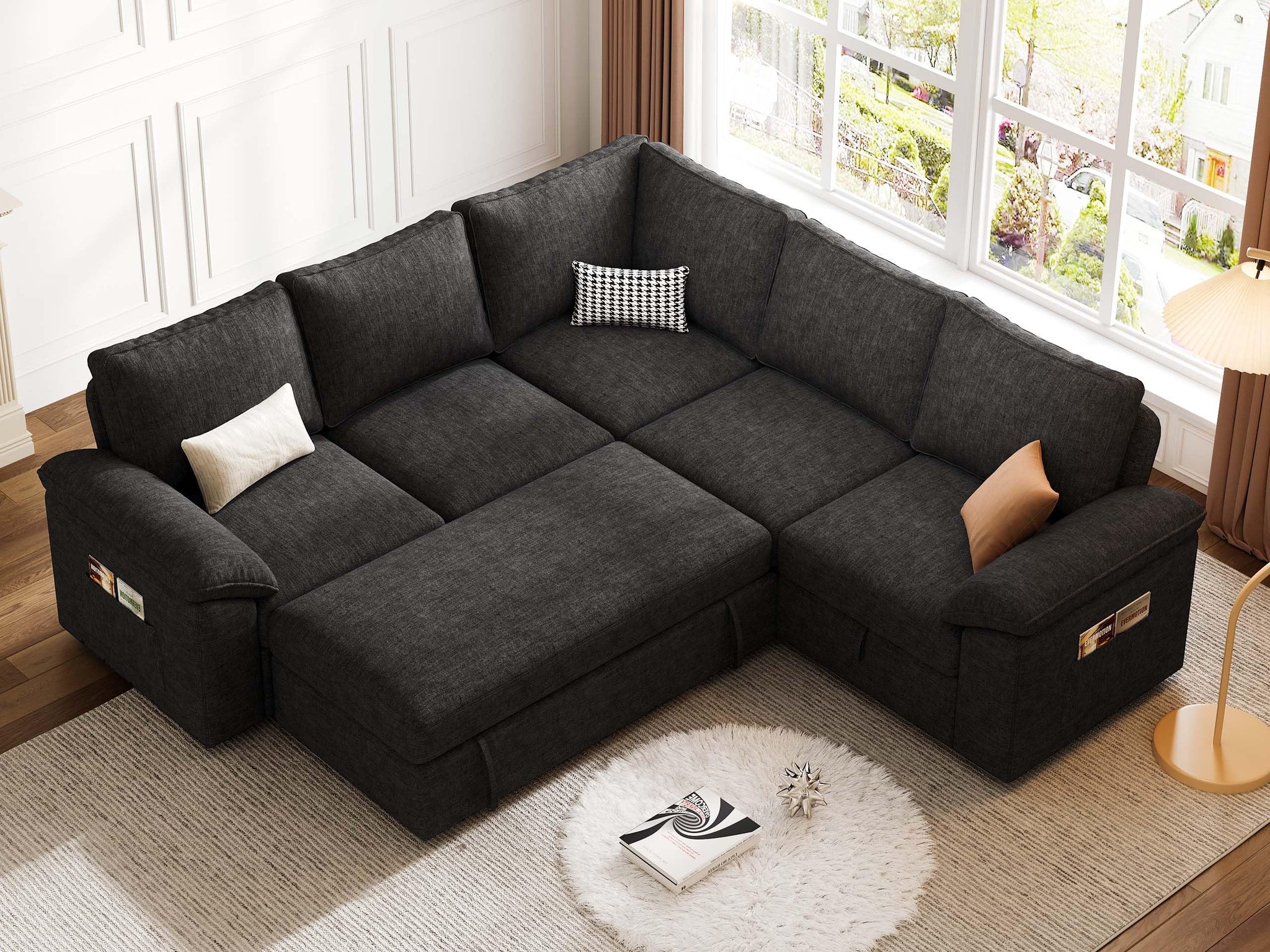 • Pull Out Sleeper Sofa: Easily convert the sofa into a bed by simply pulling it. The Howjoe modular sofa couch comes in dark gray, beige, light gray and black, making it perfect for transforming any room into a functional guest space